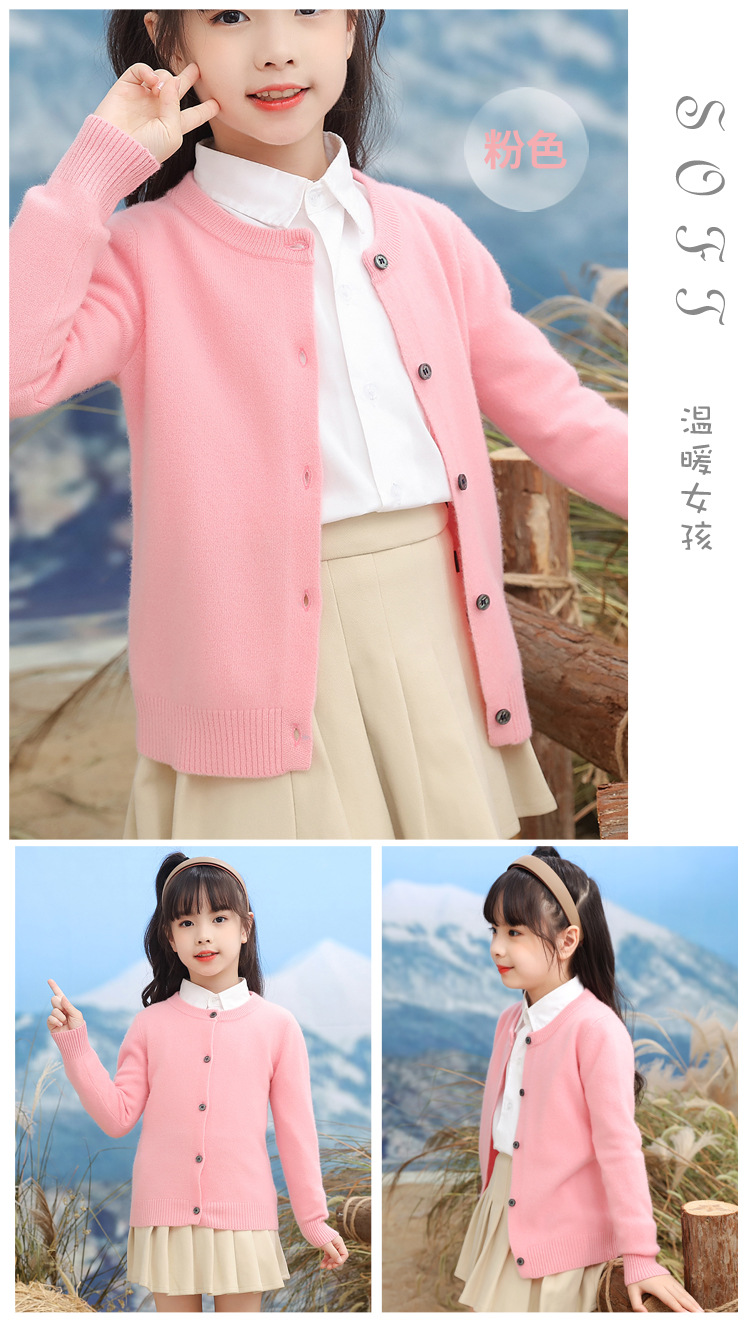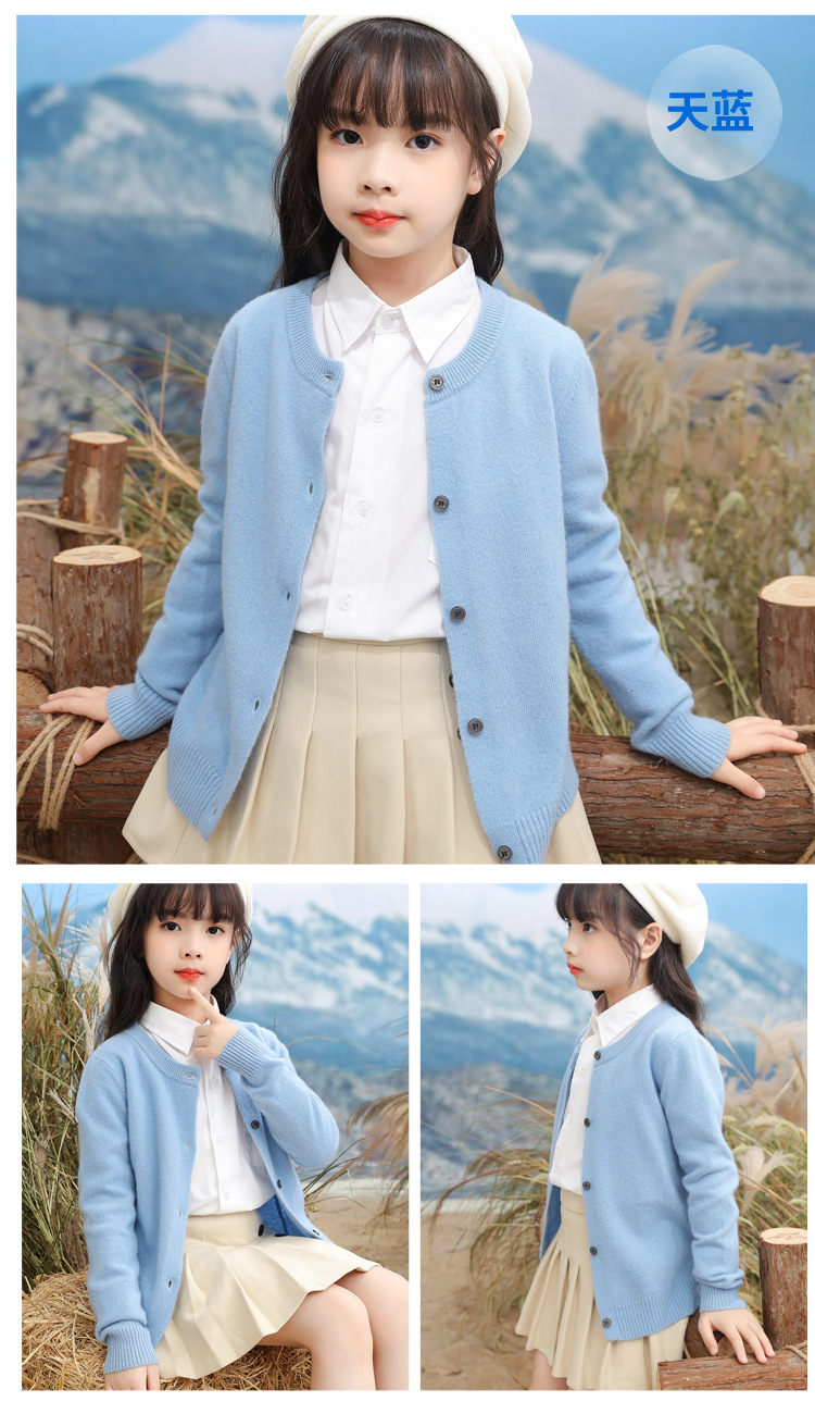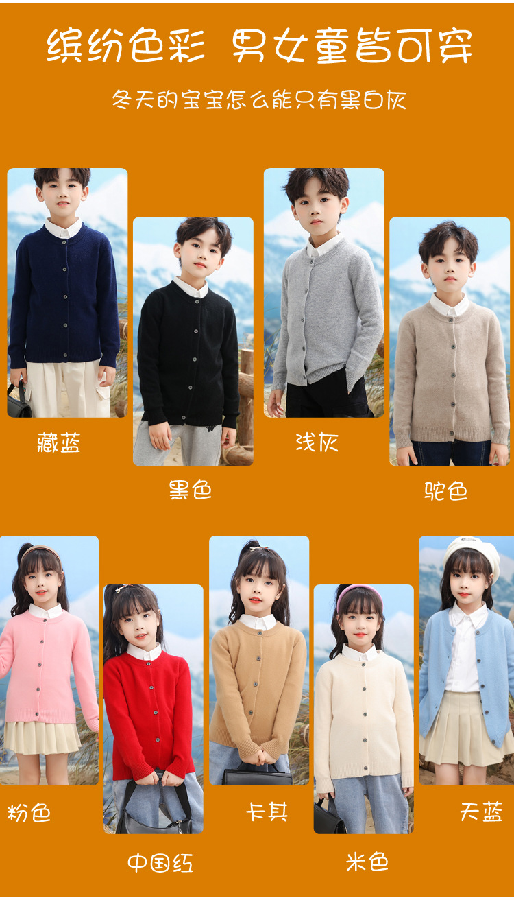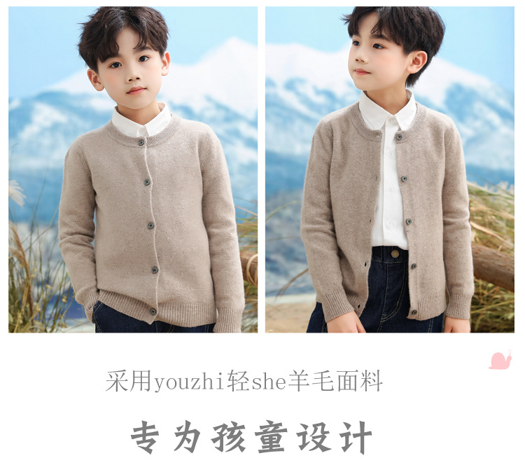 가을과 겨울 2024 새로운 순수 양모 단일 가닥 크루 넥 니트 카디건 단색 느슨한 코트 소년 소녀스토어 가기