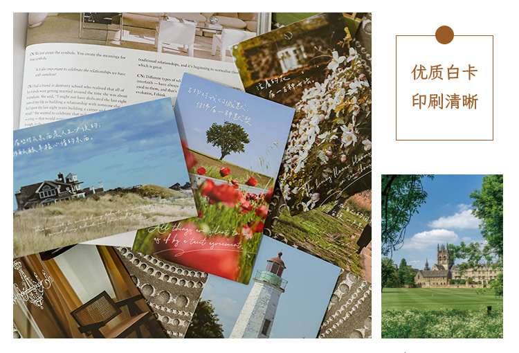 Mu Ran 엽서가 차분한 풍경 팩 카드로 돌아온다. 축복 메시지 카드 30 장식 선물 카드