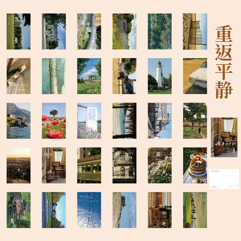 Mu Ran 엽서가 차분한 풍경 팩 카드로 돌아온다. 축복 메시지 카드 30 장식 선물 카드스토어 가기