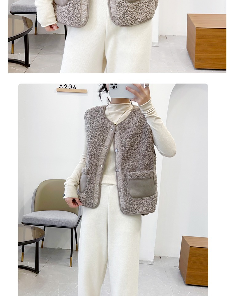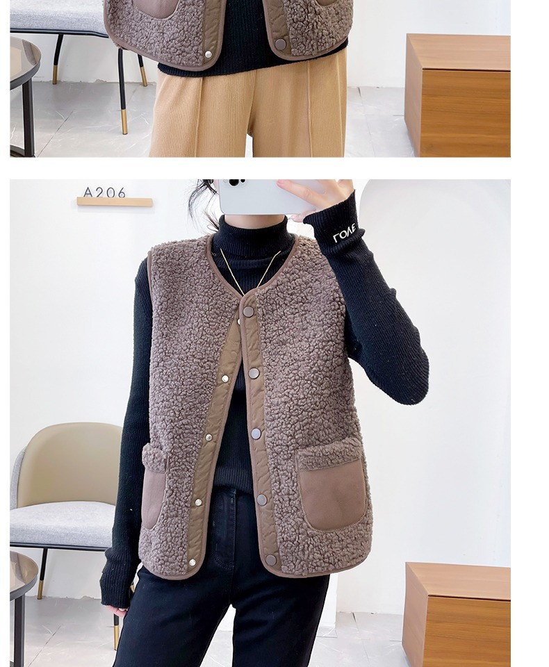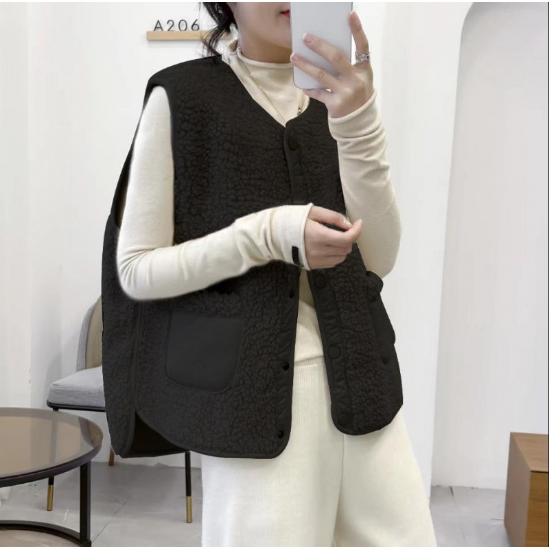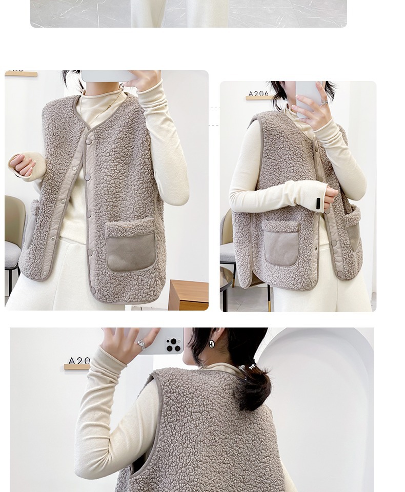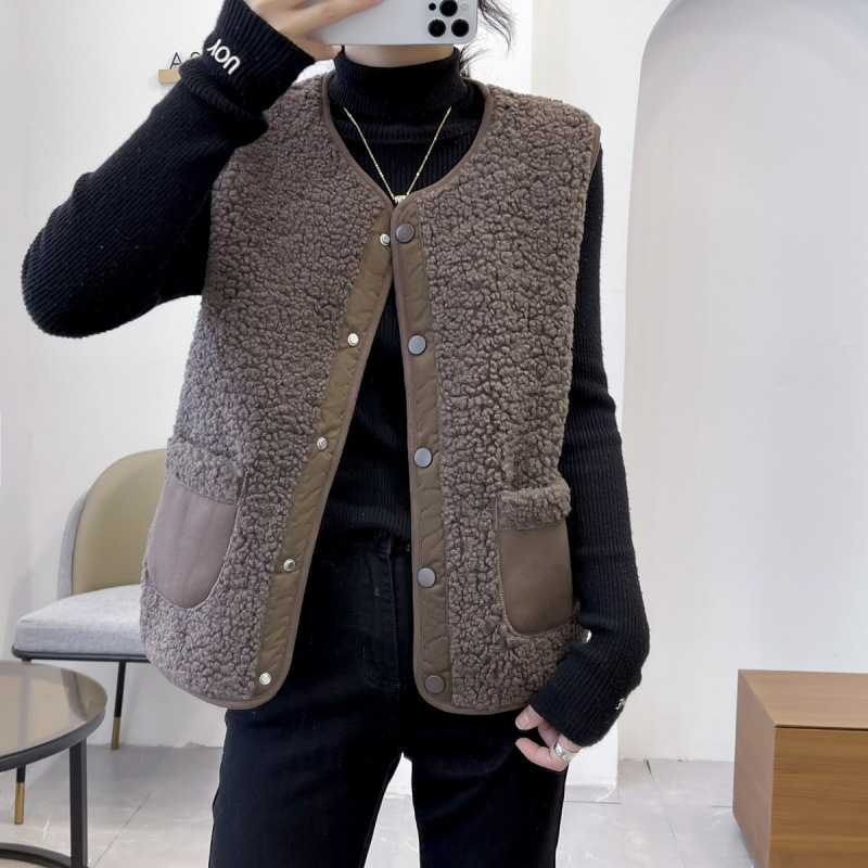 양고기 양모 2024 새로운 인터넷 빨간 조끼 코트 여성 가죽 봉제 원피스 외부 착용 민소매 조끼 조끼 가을 겨울스토어 가기
