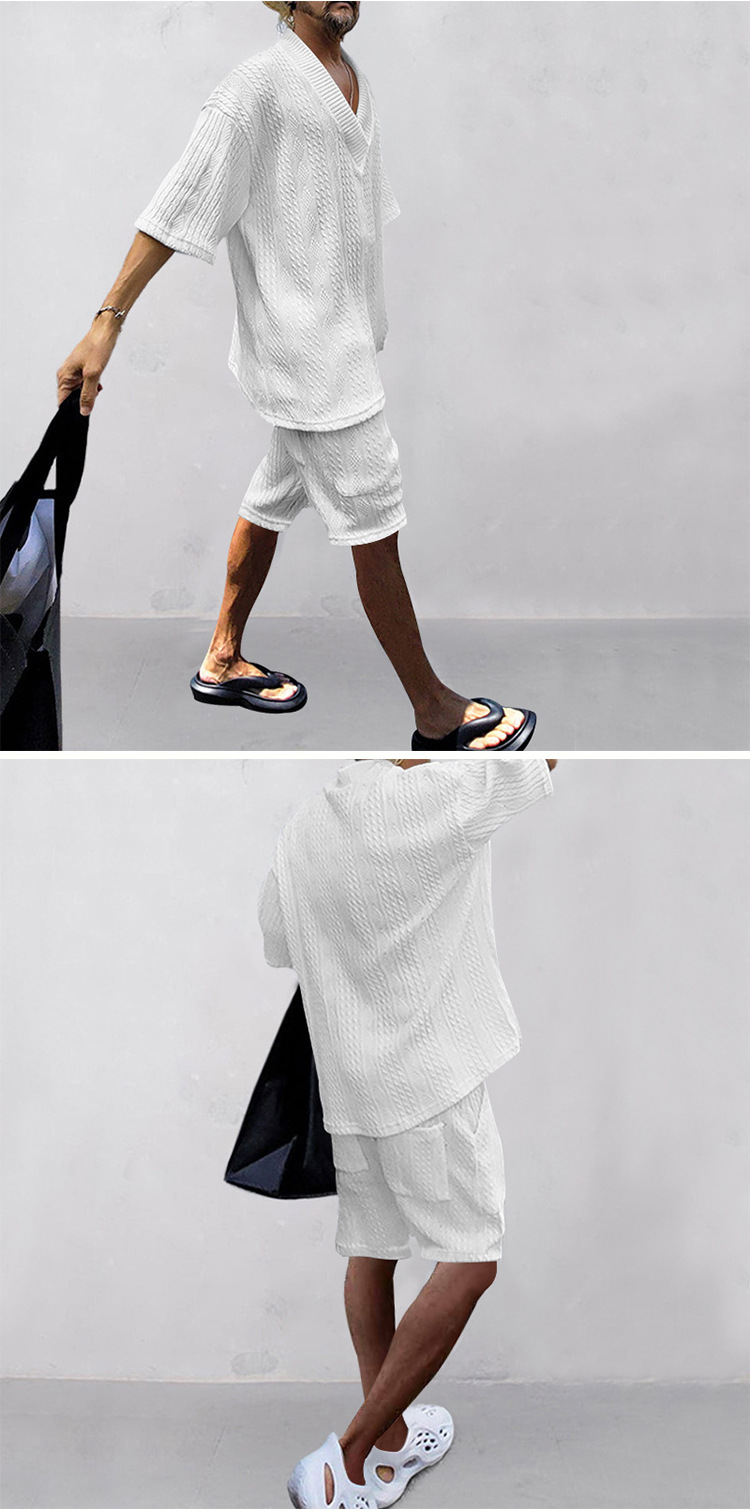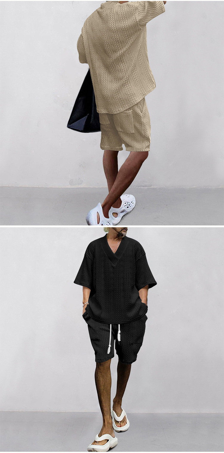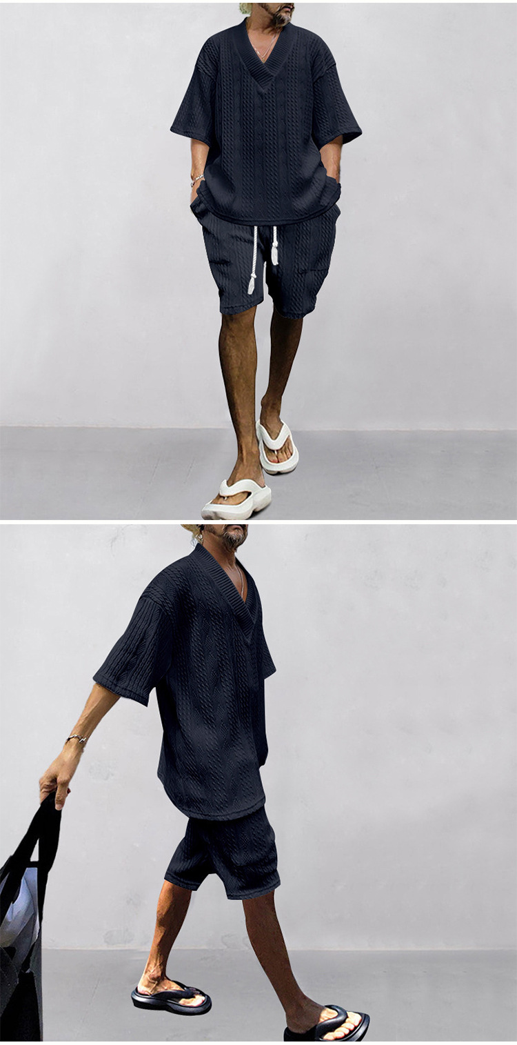 국경 간 남성 캐주얼 니트 티셔츠 남성용 여름 느슨한 반팔 아마존 느슨한 대형 V 넥 스포츠 솔리드 컬러 티셔츠 남성용스토어 가기