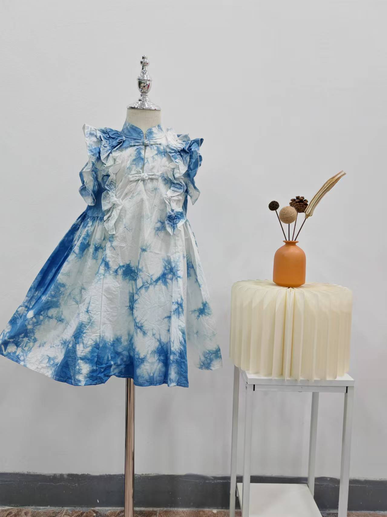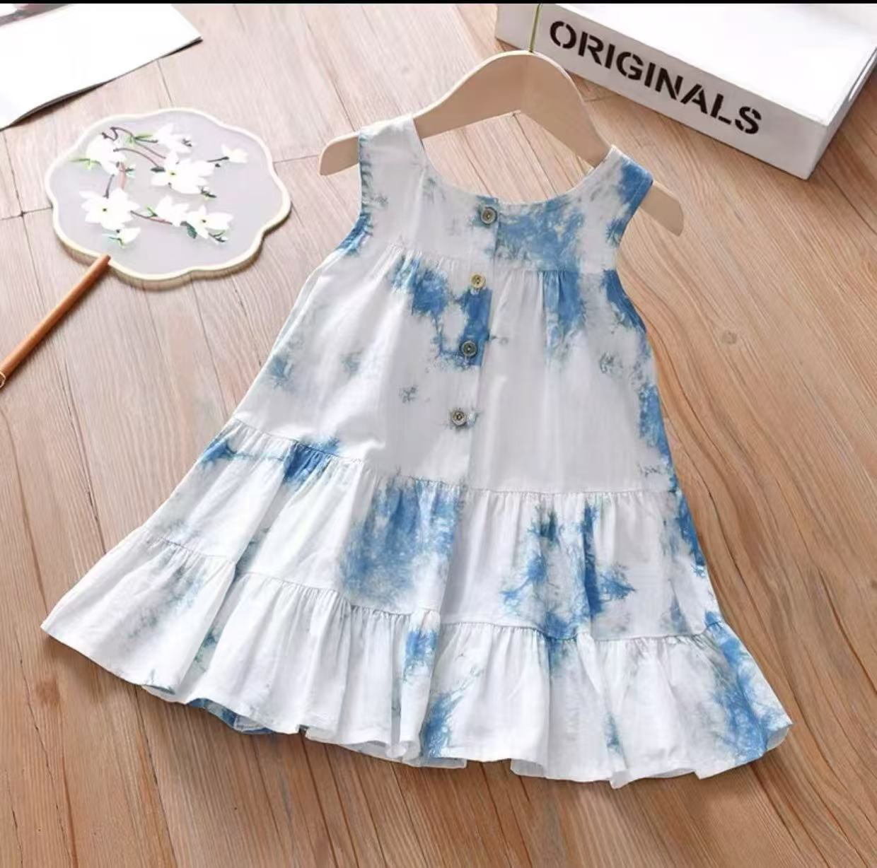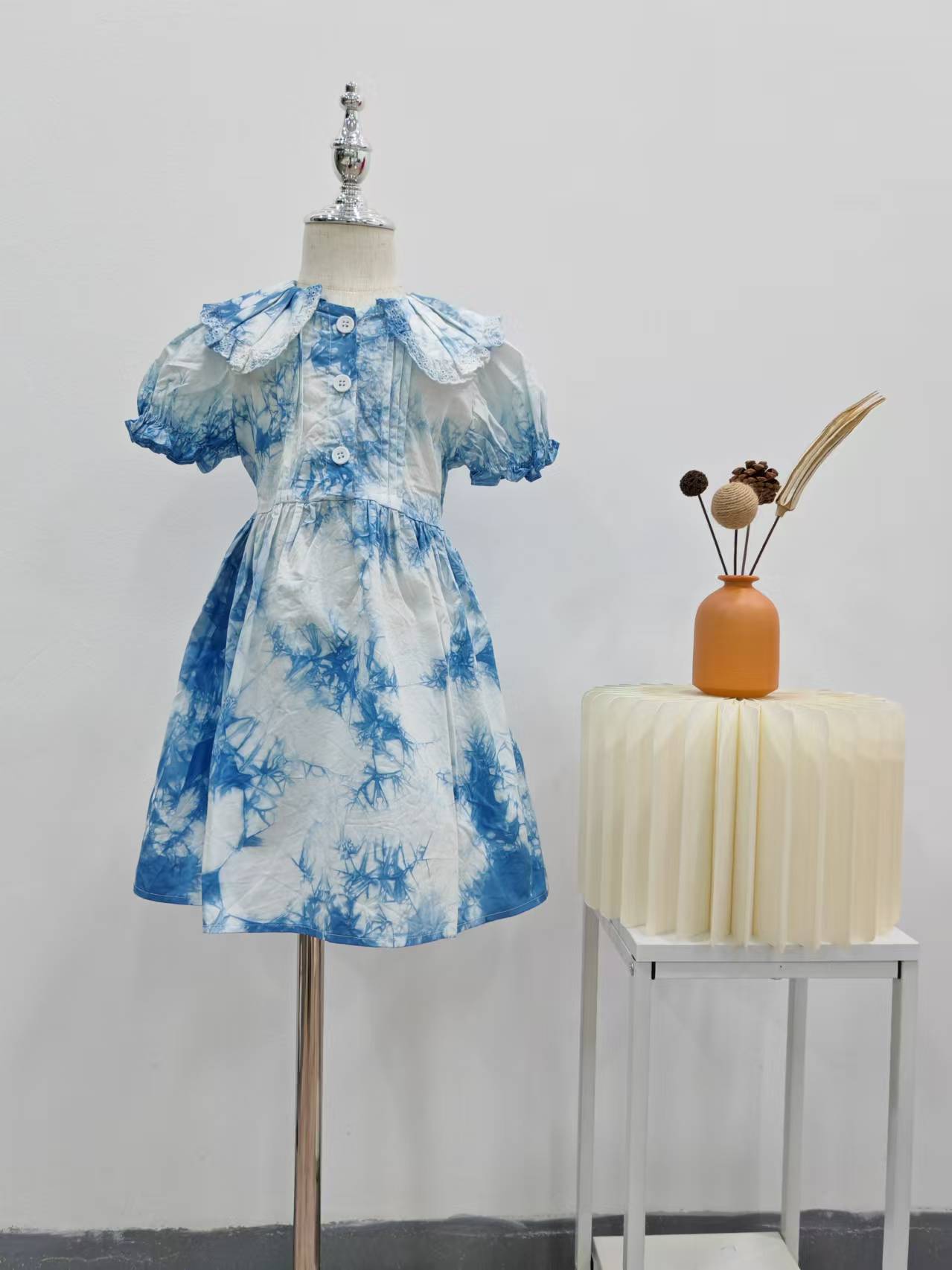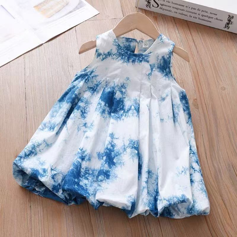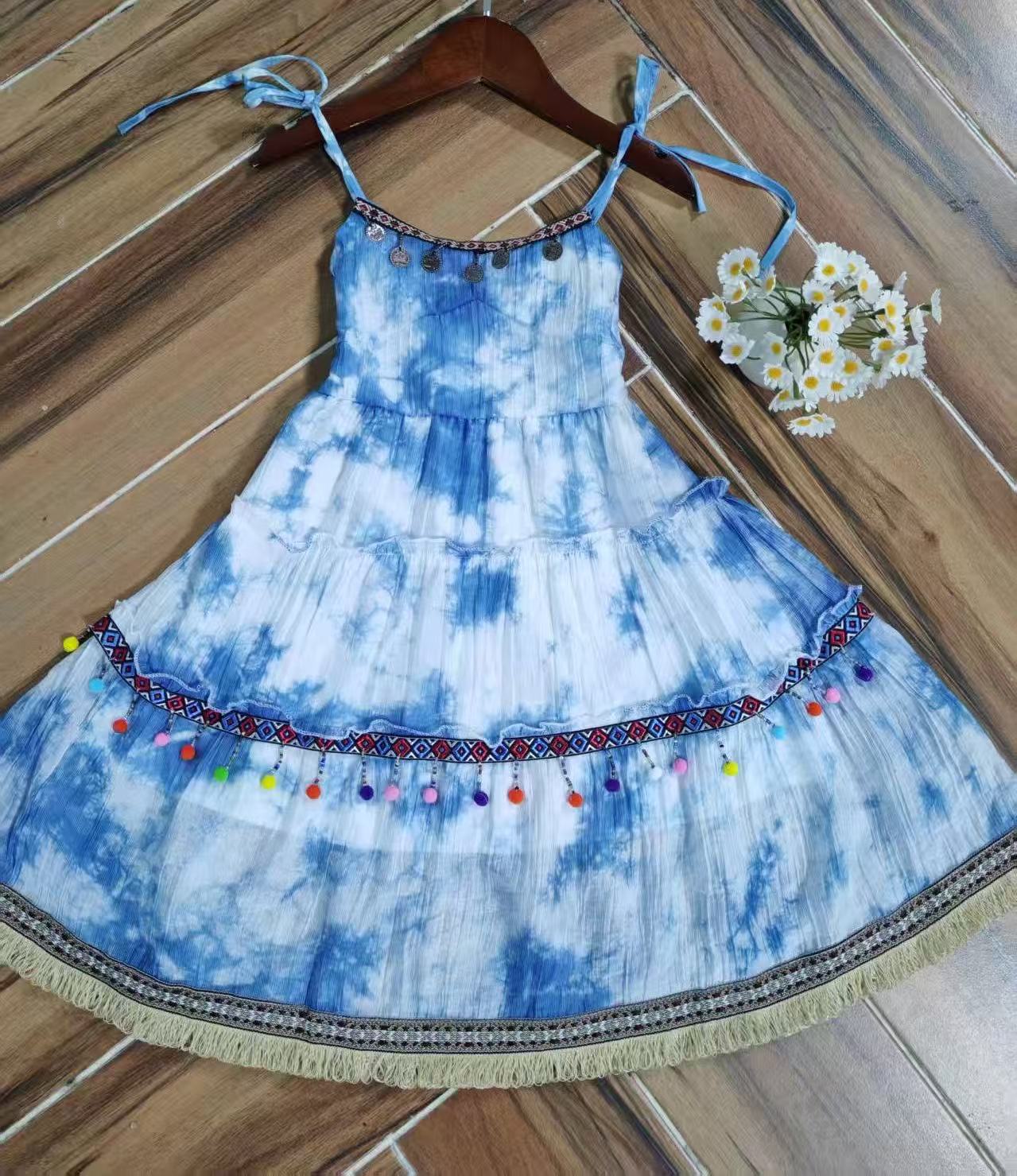 여자 드레스 여름 보드 뿌리 식물 수제 타이 염색 어린이 드레스 공주 드레스 스커트 어린이 소녀 의류스토어 가기