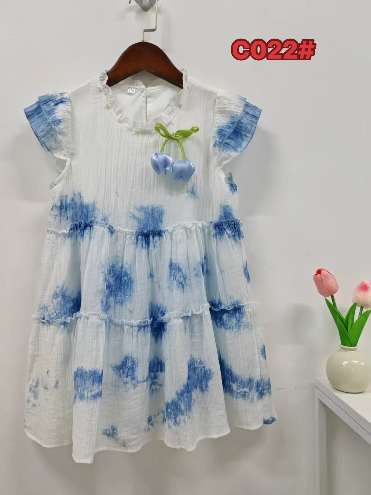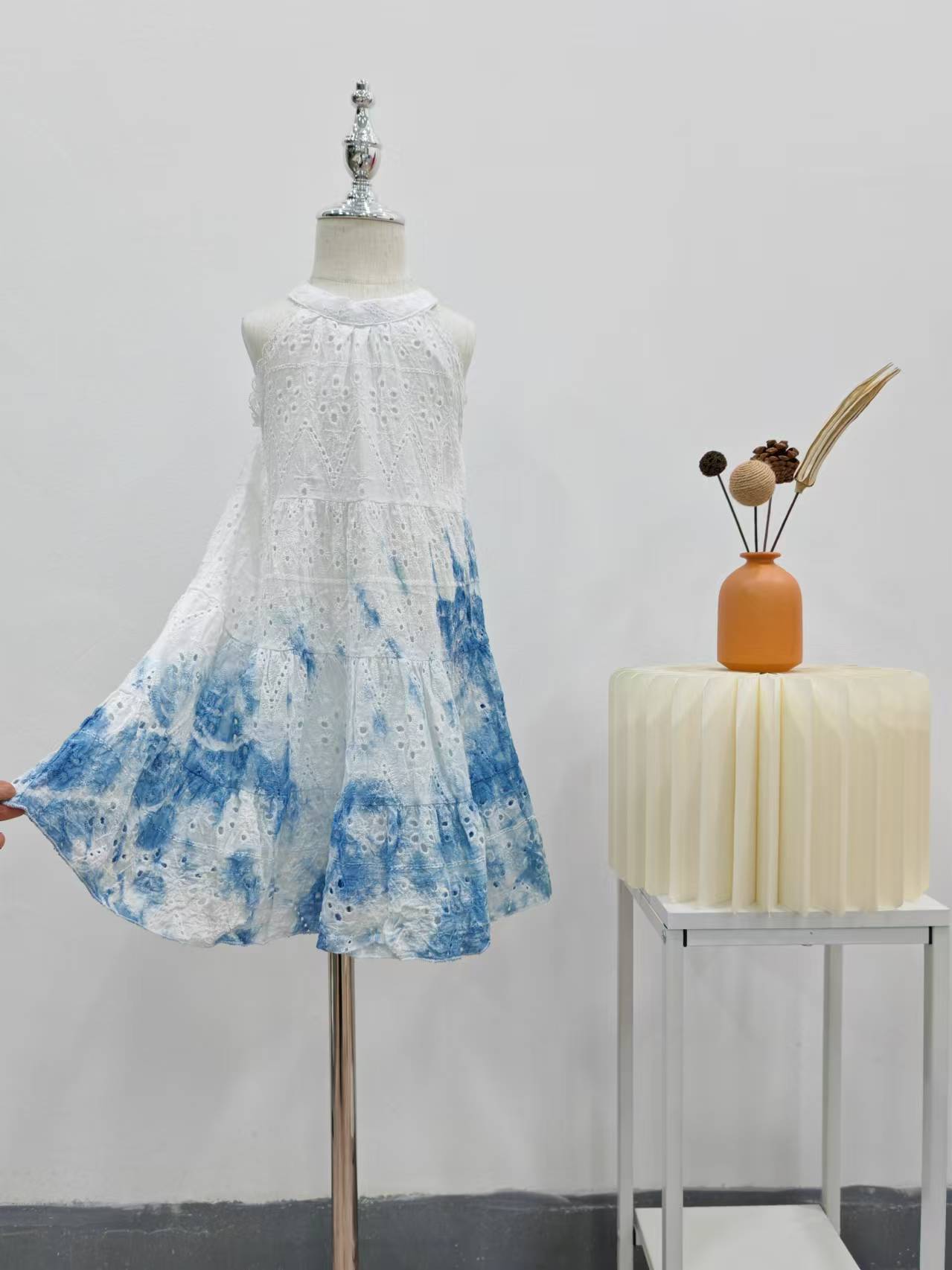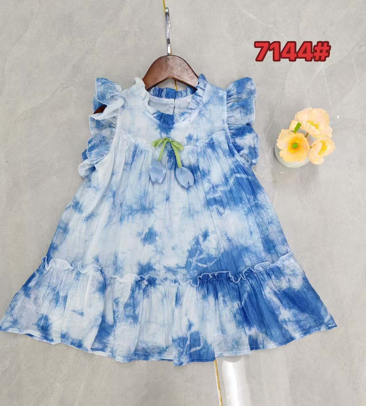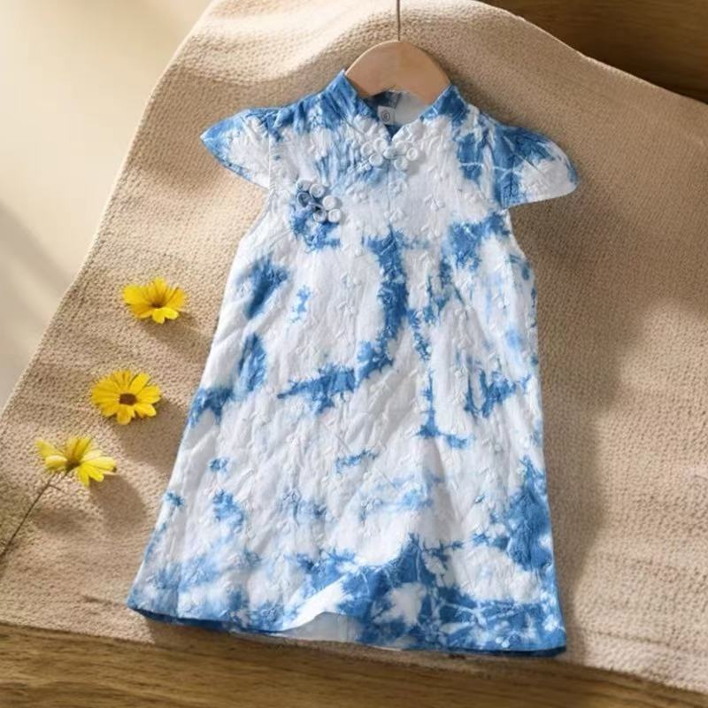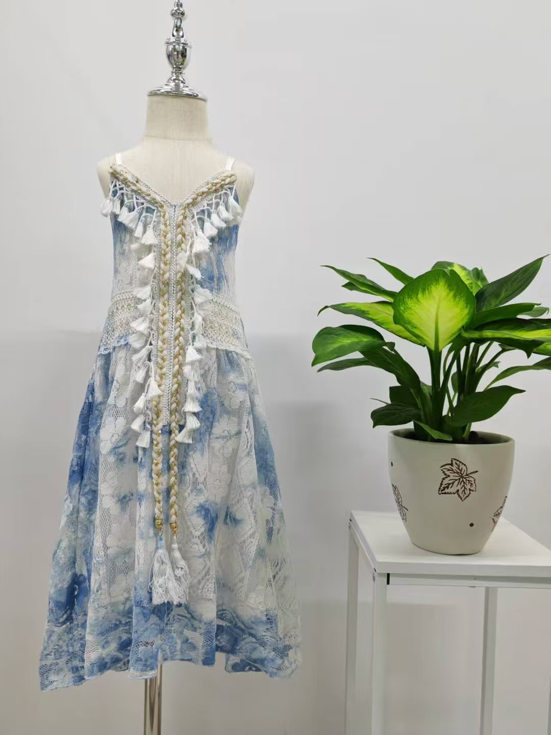 여자 드레스 여름 보드 뿌리 식물 수제 타이 염색 어린이 드레스 공주 드레스 스커트 어린이 소녀 의류스토어 가기