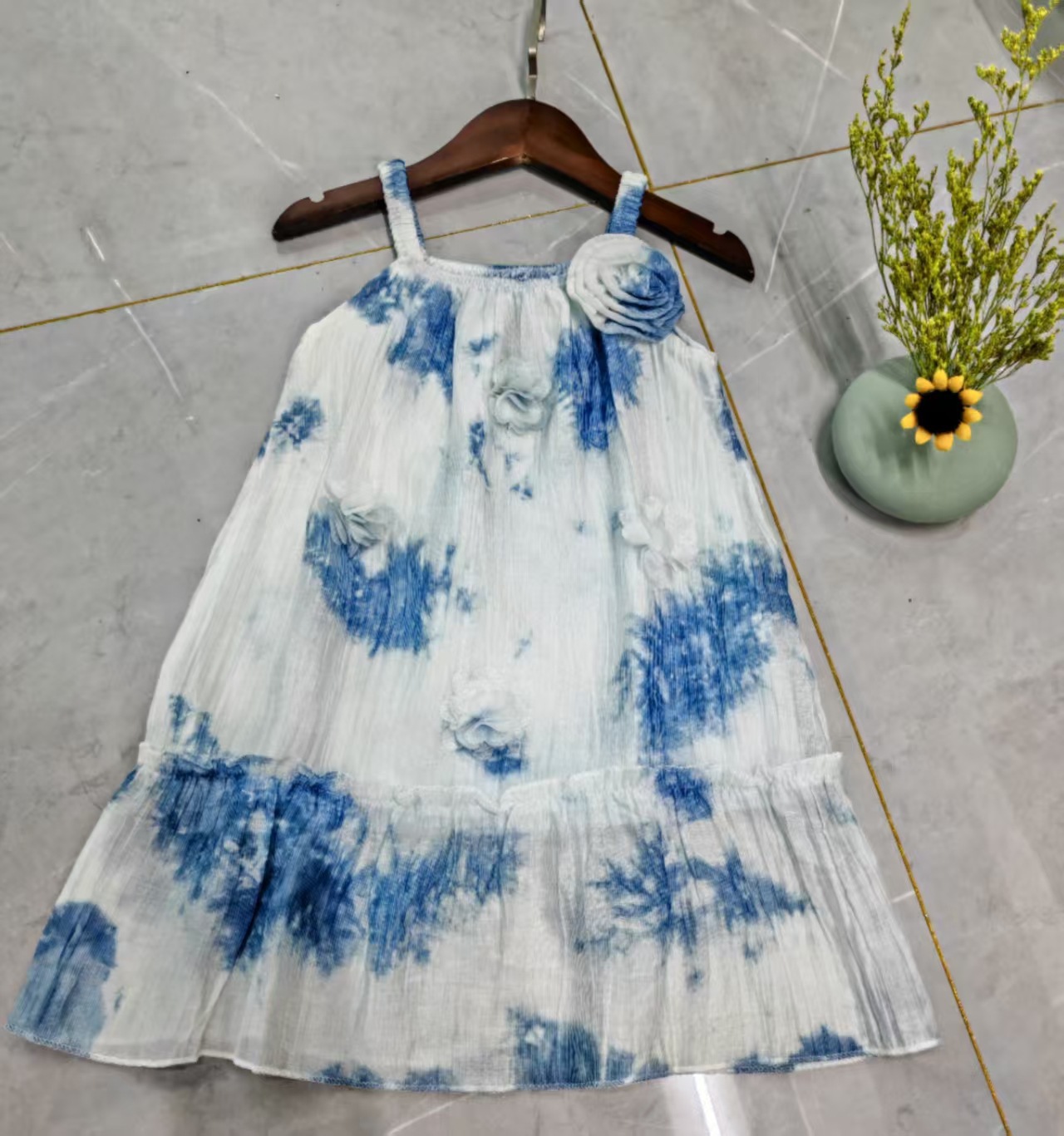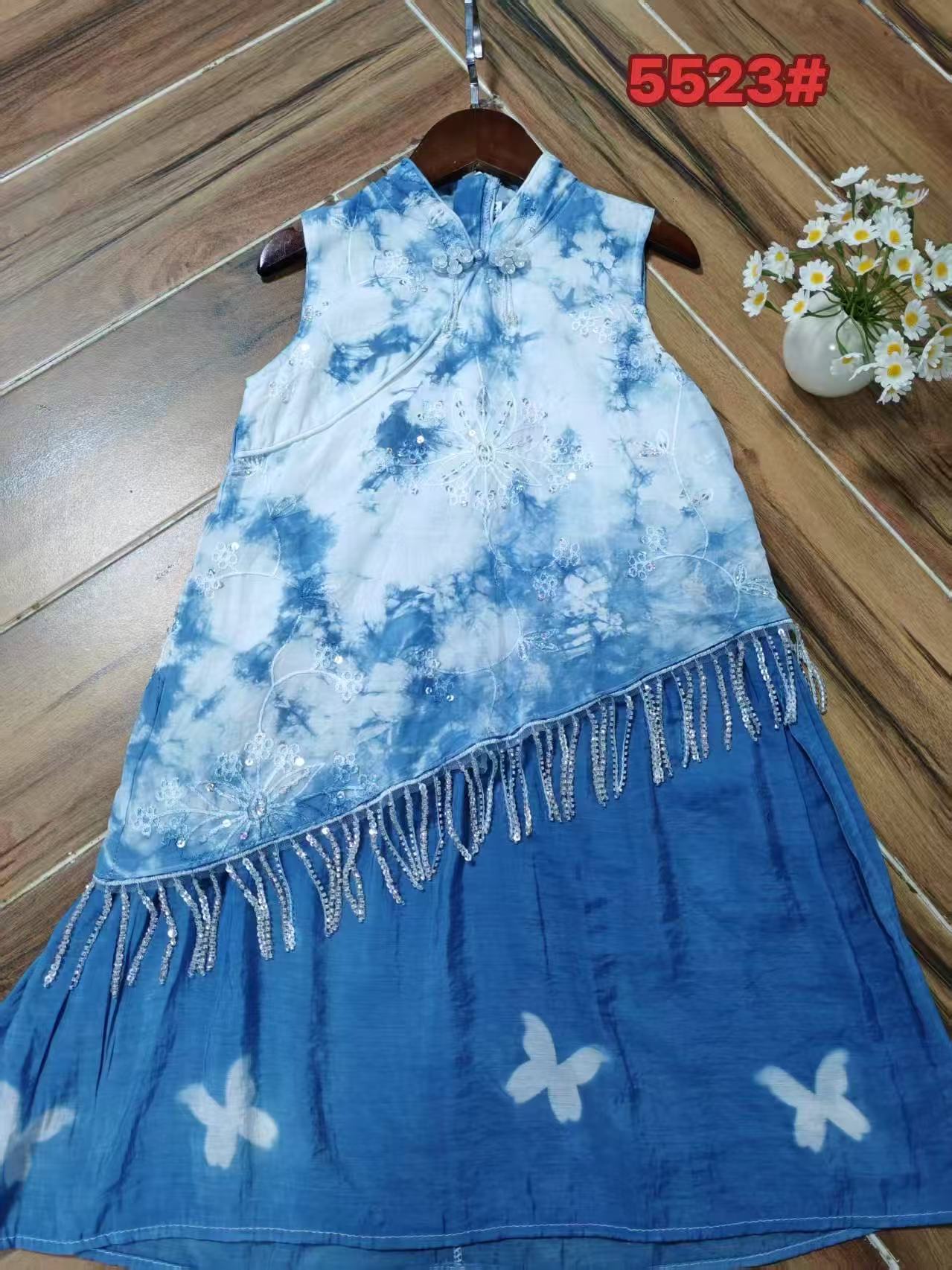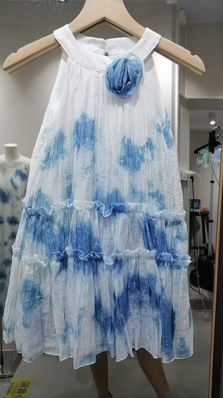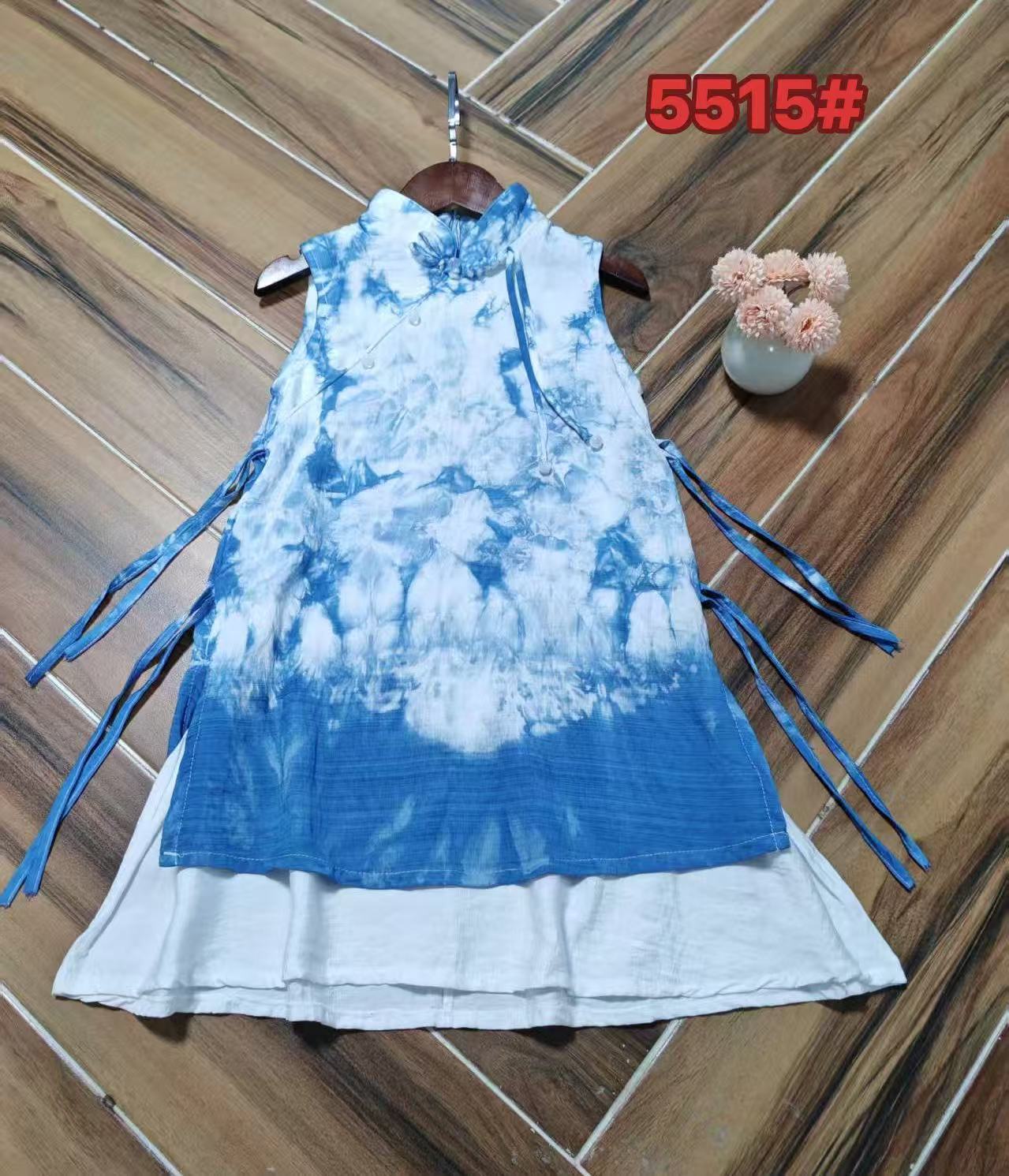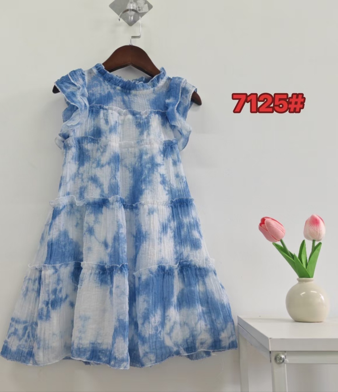 여자 드레스 여름 보드 뿌리 식물 수제 타이 염색 어린이 드레스 공주 드레스 스커트 어린이 소녀 의류스토어 가기
