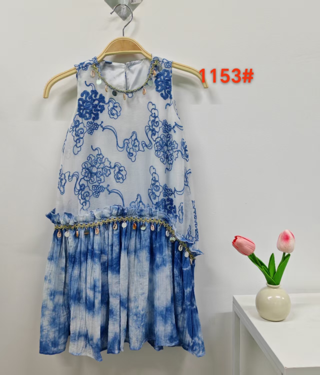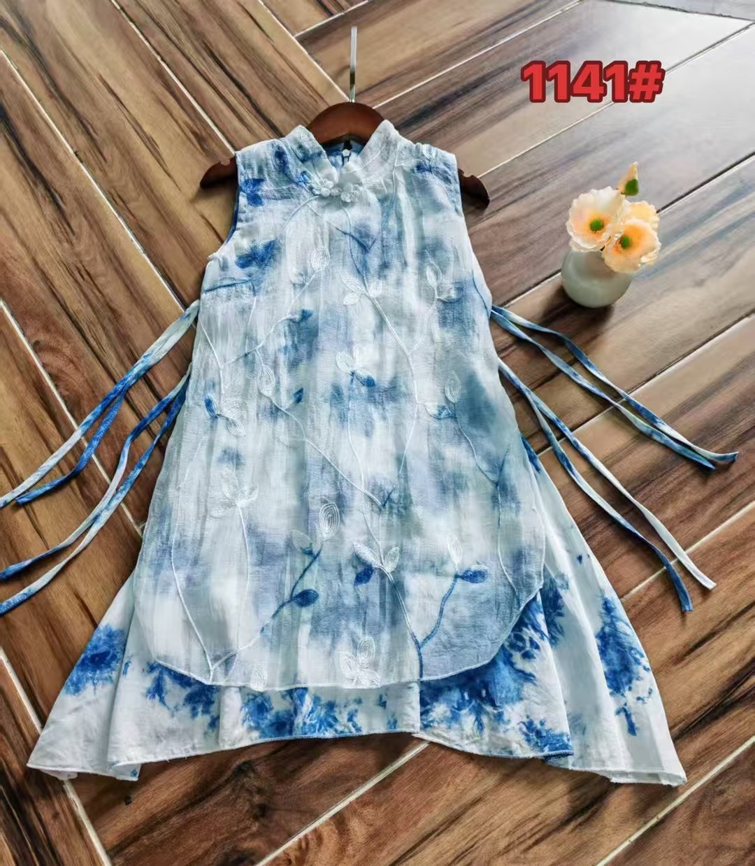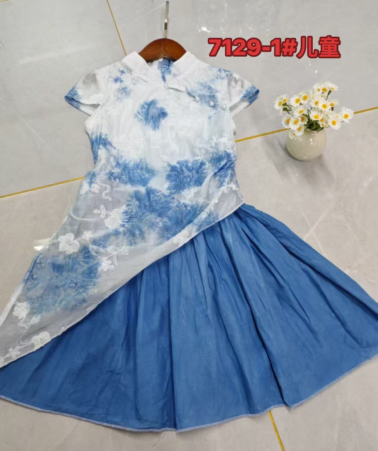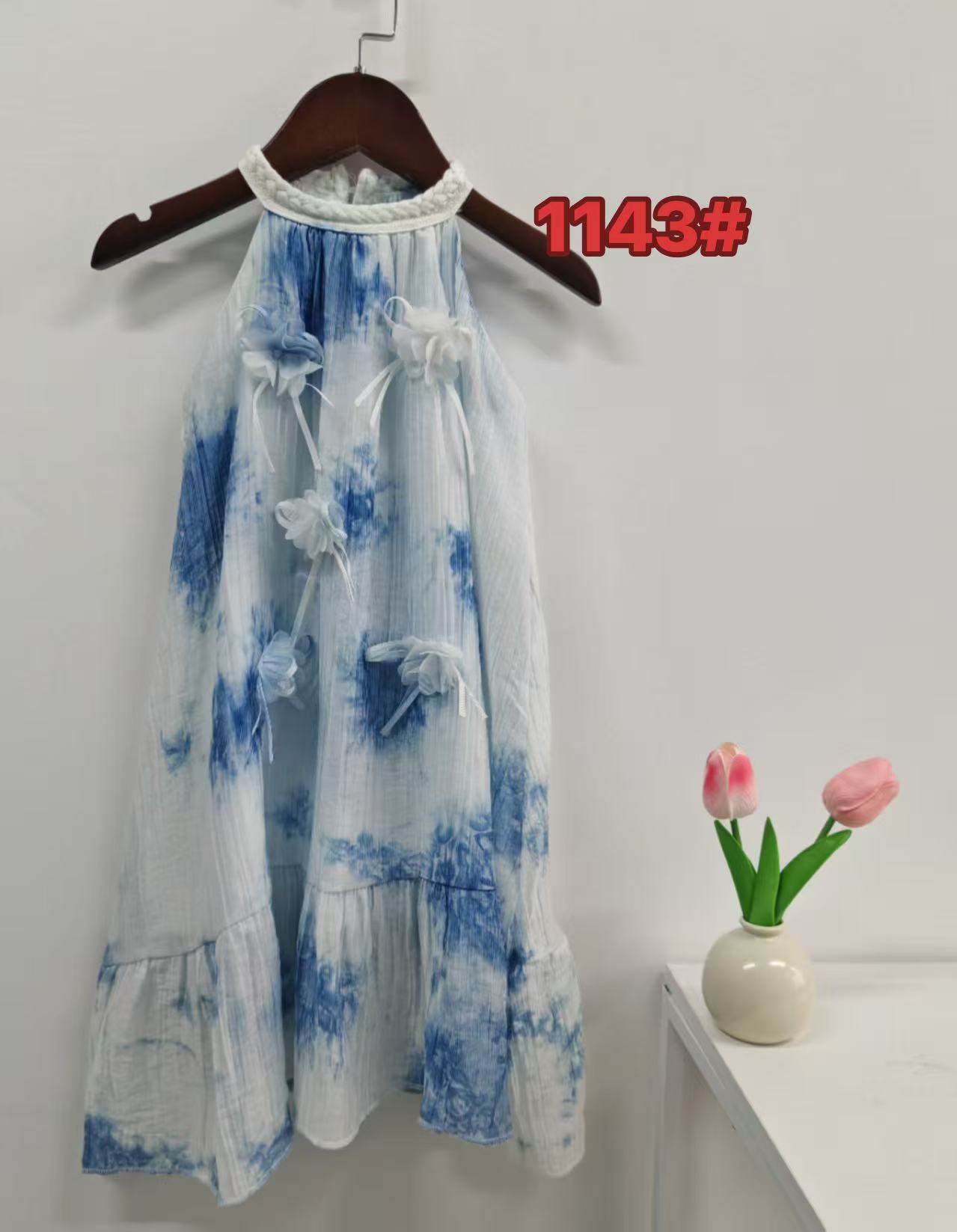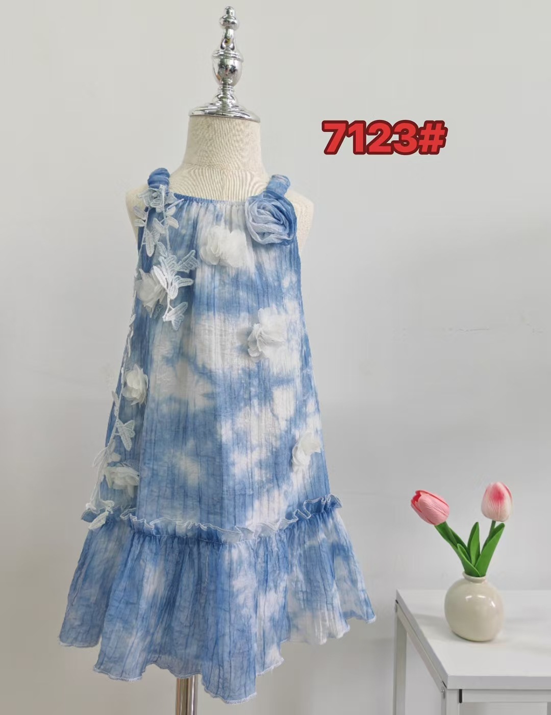 여자 드레스 여름 보드 뿌리 식물 수제 타이 염색 어린이 드레스 공주 드레스 스커트 어린이 소녀 의류스토어 가기
