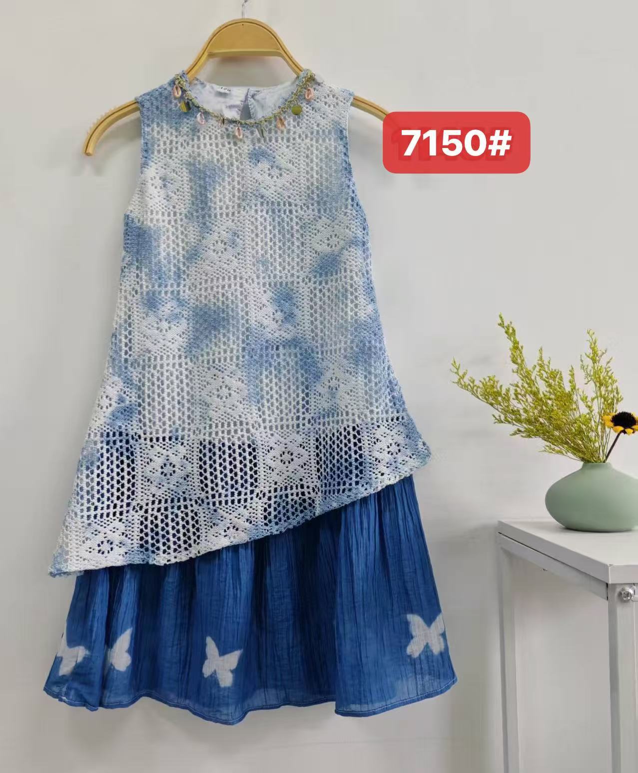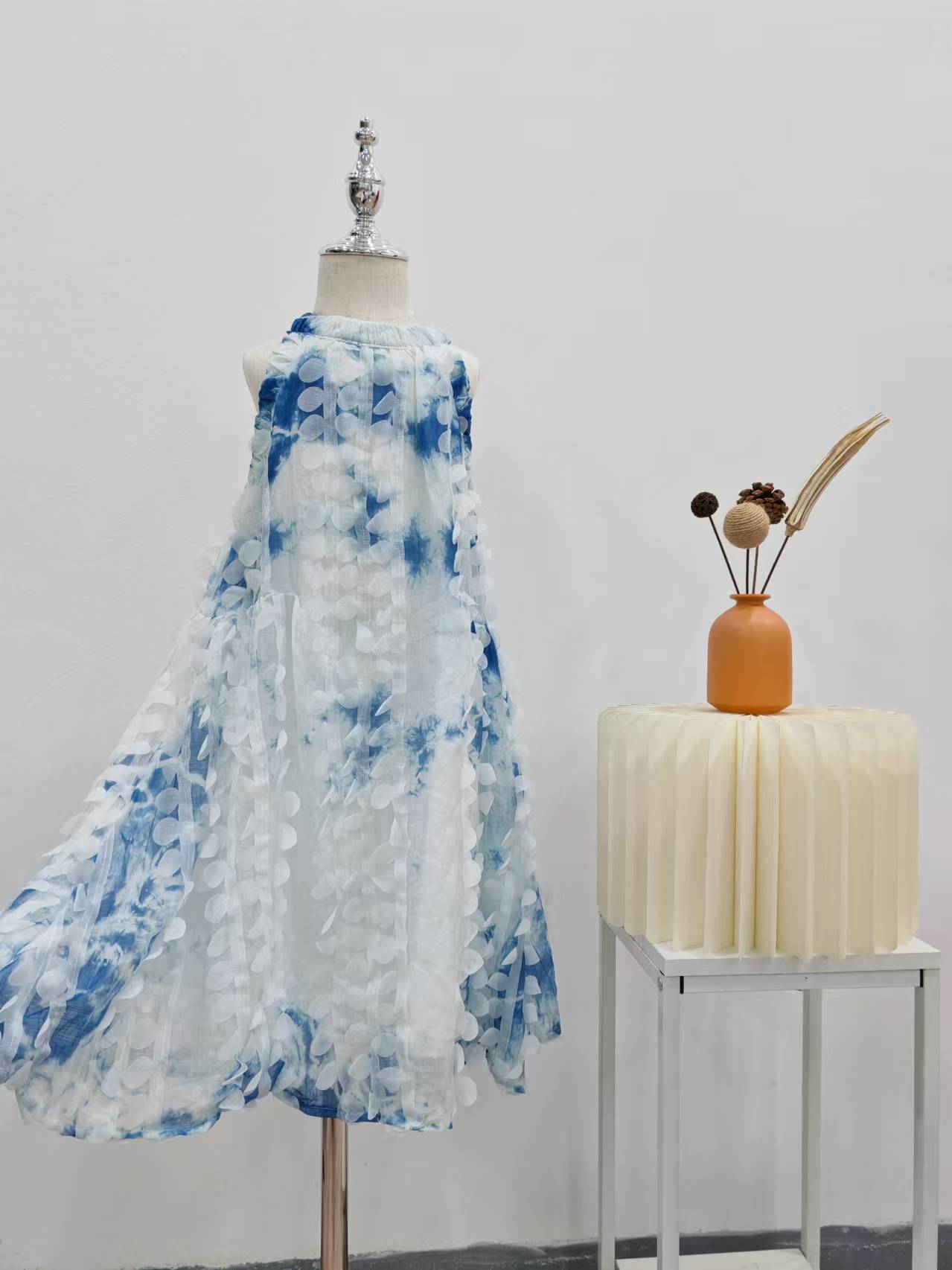 여자 드레스 여름 보드 뿌리 식물 수제 타이 염색 어린이 드레스 공주 드레스 스커트 어린이 소녀 의류