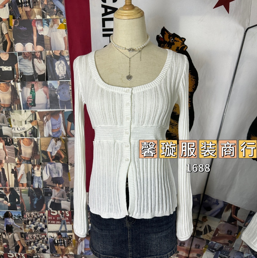 BM 스타일 그레이 대형 라운드 넥 싱글 브레스트 긴팔 니트 카디건 여성용 Bm 스파이스 걸스 타이트 허리 슬림베이스 셔츠 탑