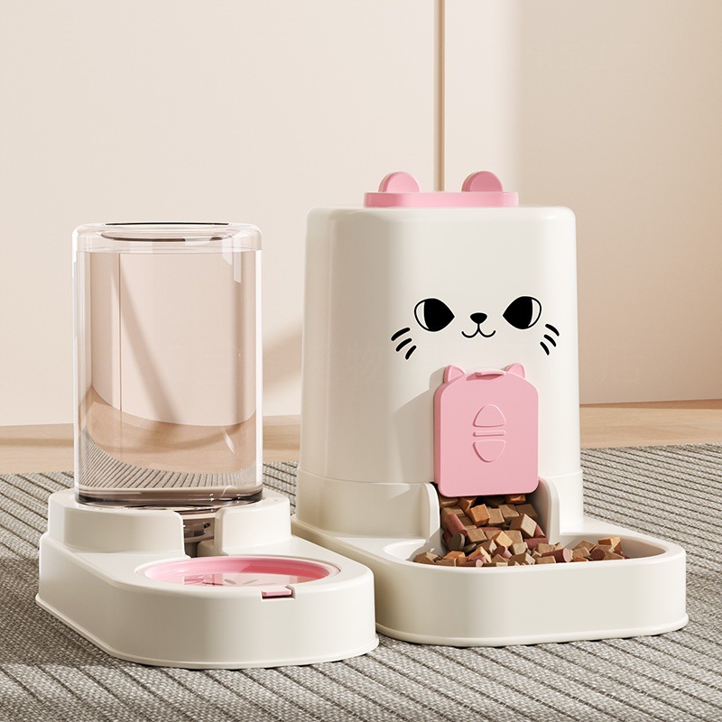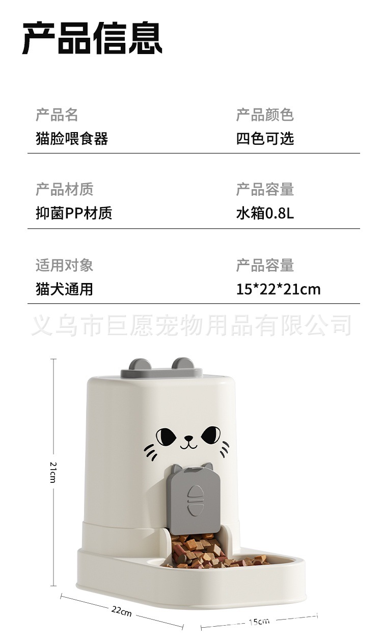 跨境爆款猫脸喂食器水粮一体式投喂器喂食碗干湿分离狗碗猫储粮碗