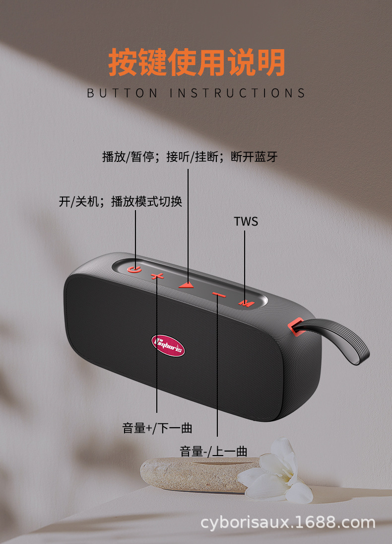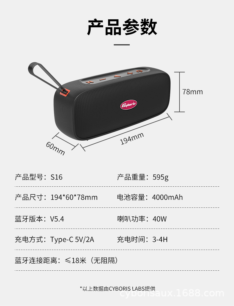 Cyboris 새로운 국경 블루투스 5.4 무선 휴대용 야외 방수 듀얼 혼 서브 우퍼 스테레오 스피커