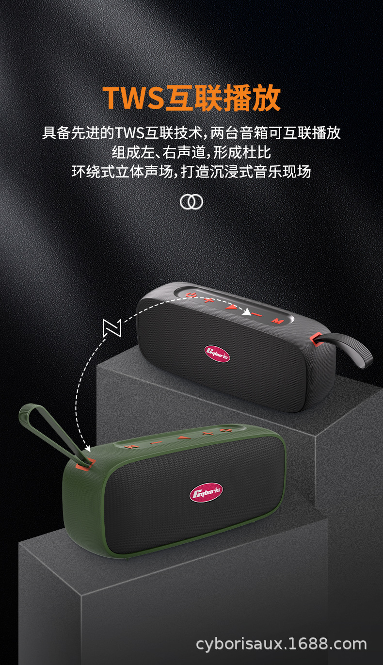 Cyboris 새로운 국경 블루투스 5.4 무선 휴대용 야외 방수 듀얼 혼 서브 우퍼 스테레오 스피커스토어 가기
