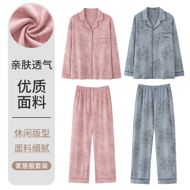 퓨어 코튼 커플 파자마 여성용 2025 봄 카디건 긴팔 세트 간단한 하이 엔드 남성용 홈웨어 아우터웨어스토어 가기
