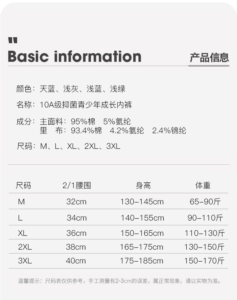 10 대 속옷 면 10A 세균성 성장 기간 복서 반바지 개발 기간 중 · 대형 어린이 중학생 복서 반바지스토어 가기