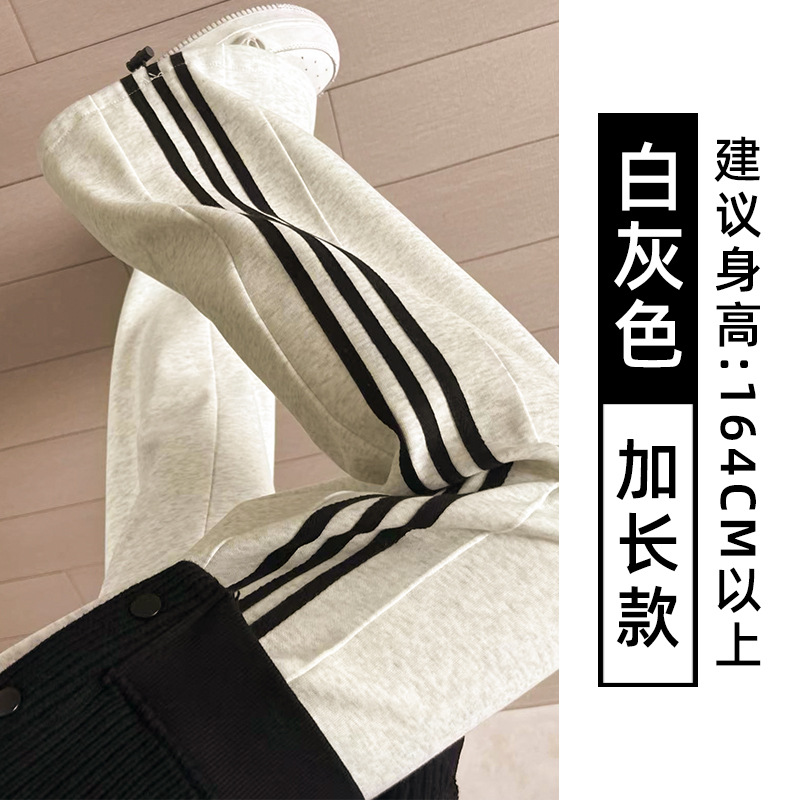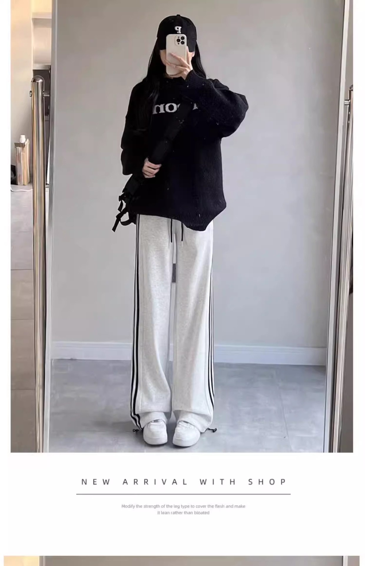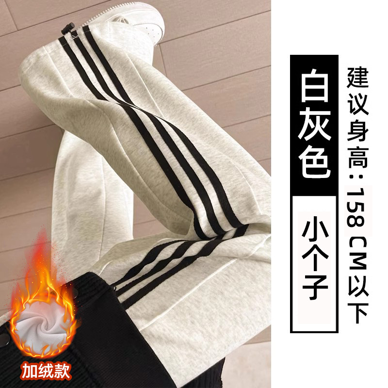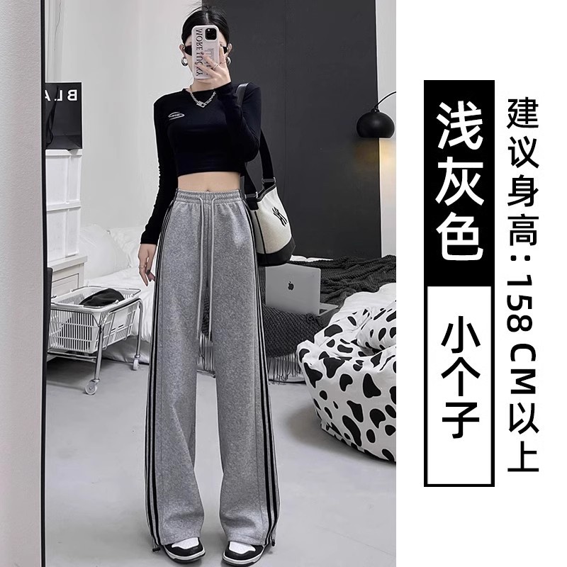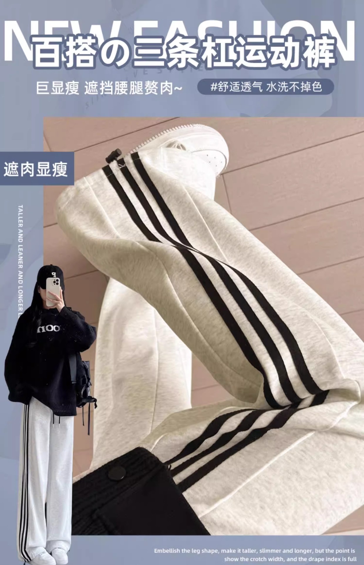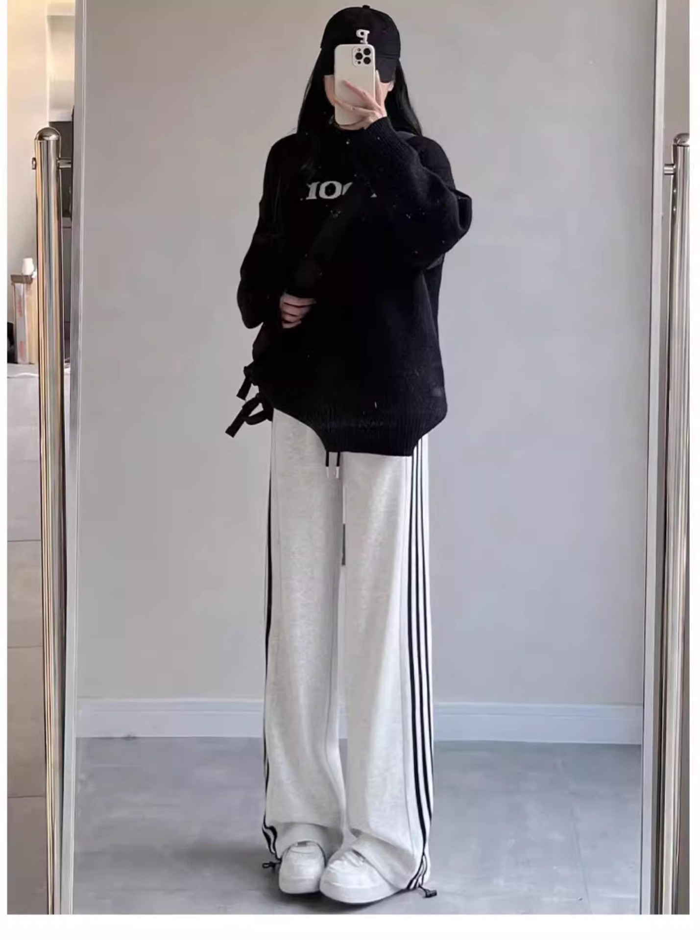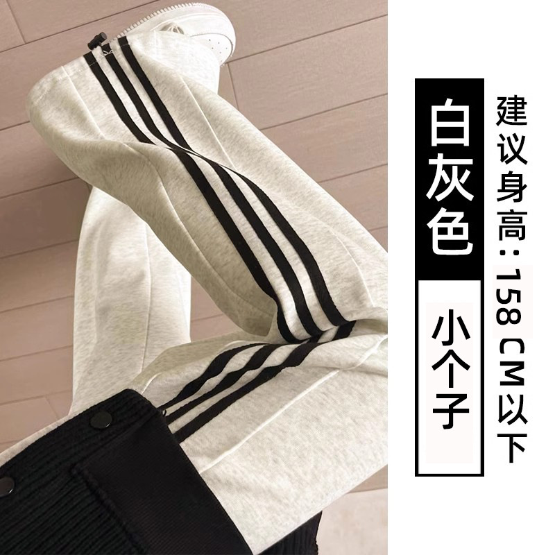 화이트 그레이 스트라이프 스포츠 팬츠 여성용 봄 가을 겨울 2024 신상 작은 사이즈 와이드 레그 스트레이트 팬츠 스웨트팬츠 와이드 레그 슬림핏스토어 가기