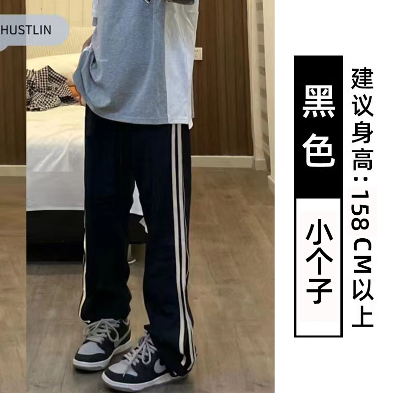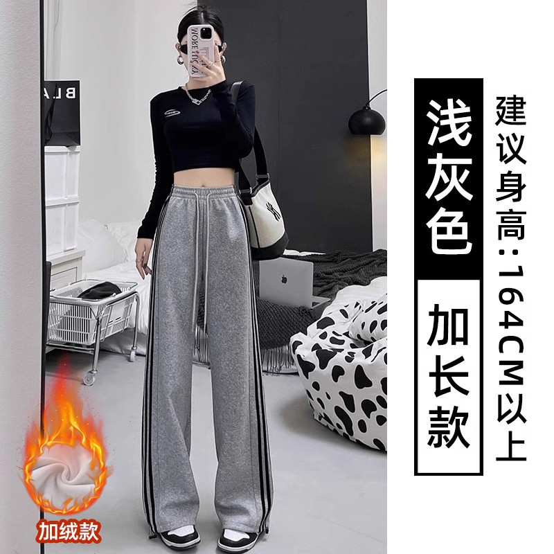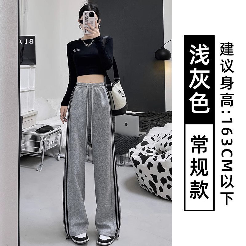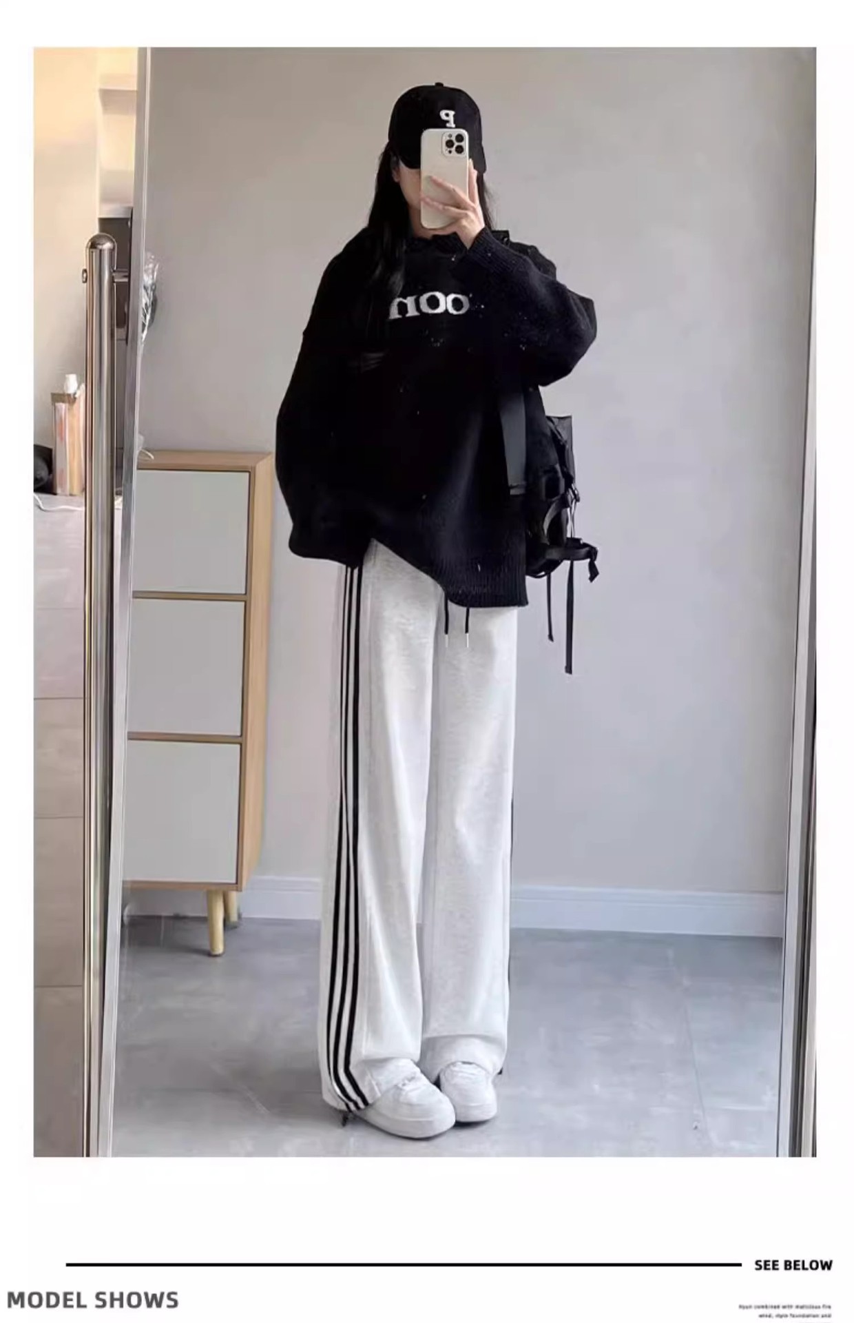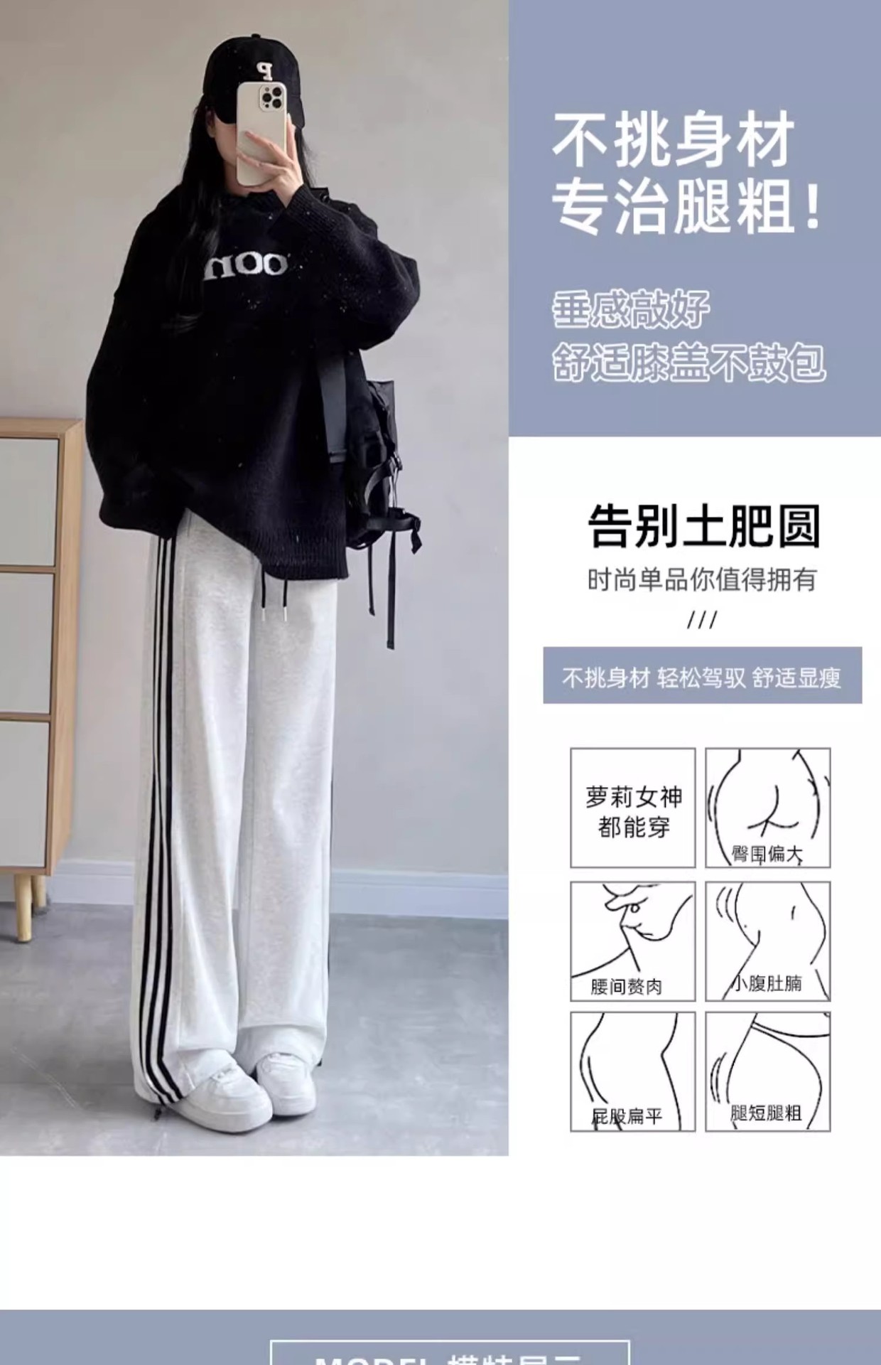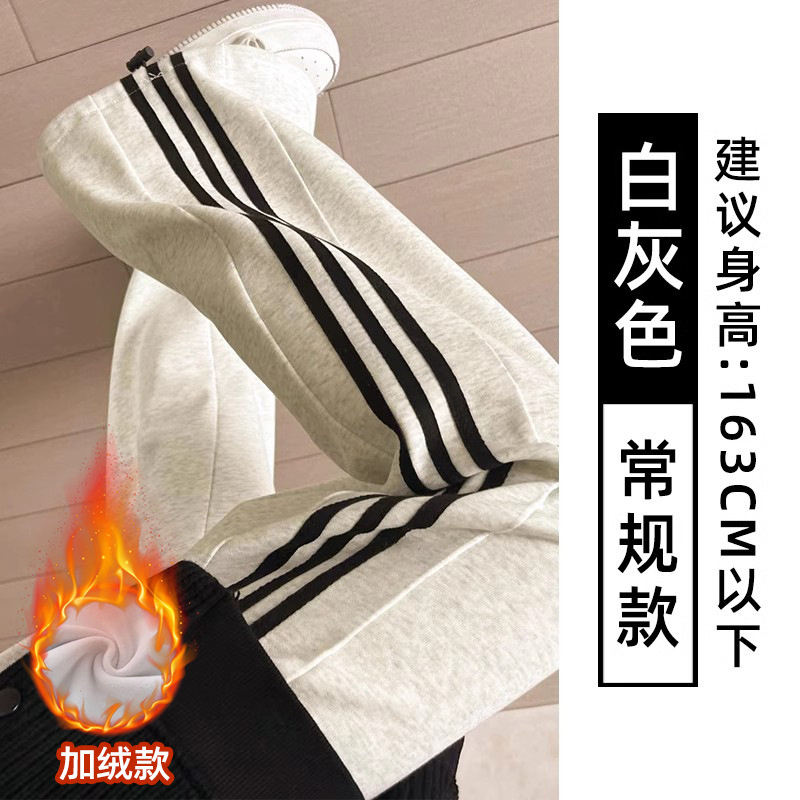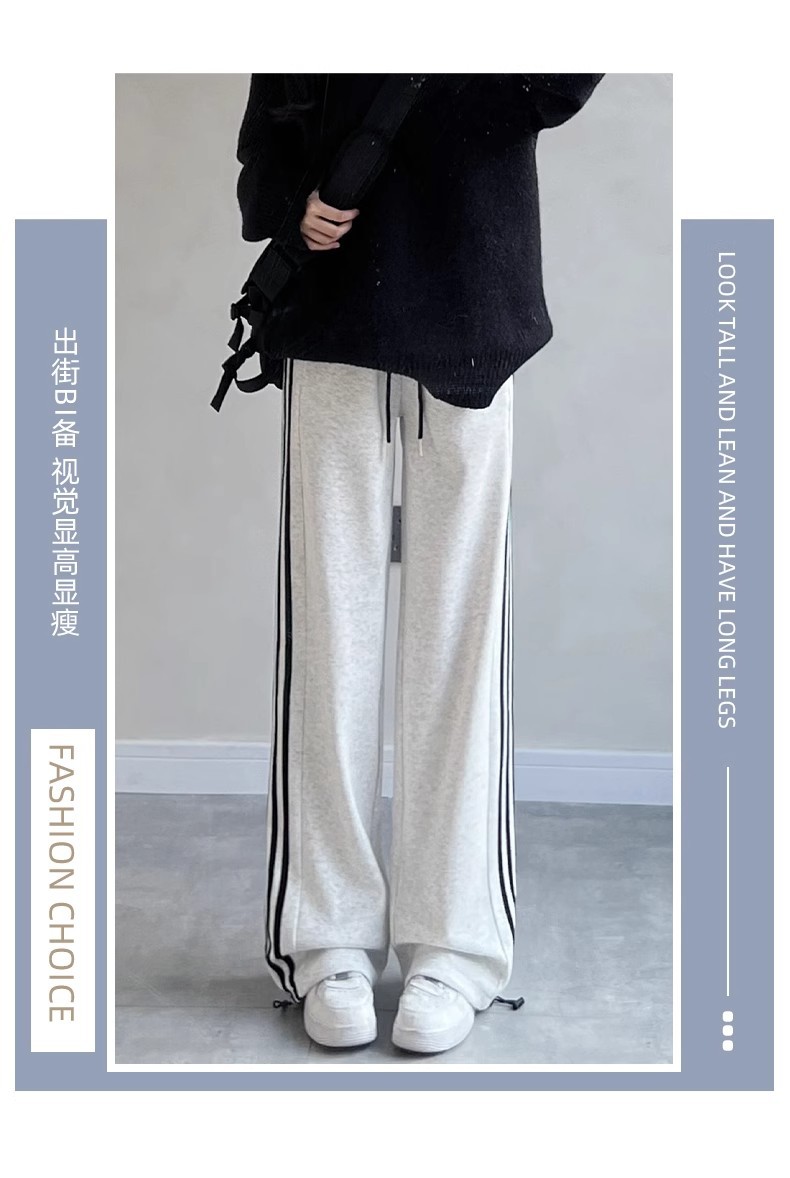 화이트 그레이 스트라이프 스포츠 팬츠 여성용 봄 가을 겨울 2024 신상 작은 사이즈 와이드 레그 스트레이트 팬츠 스웨트팬츠 와이드 레그 슬림핏스토어 가기