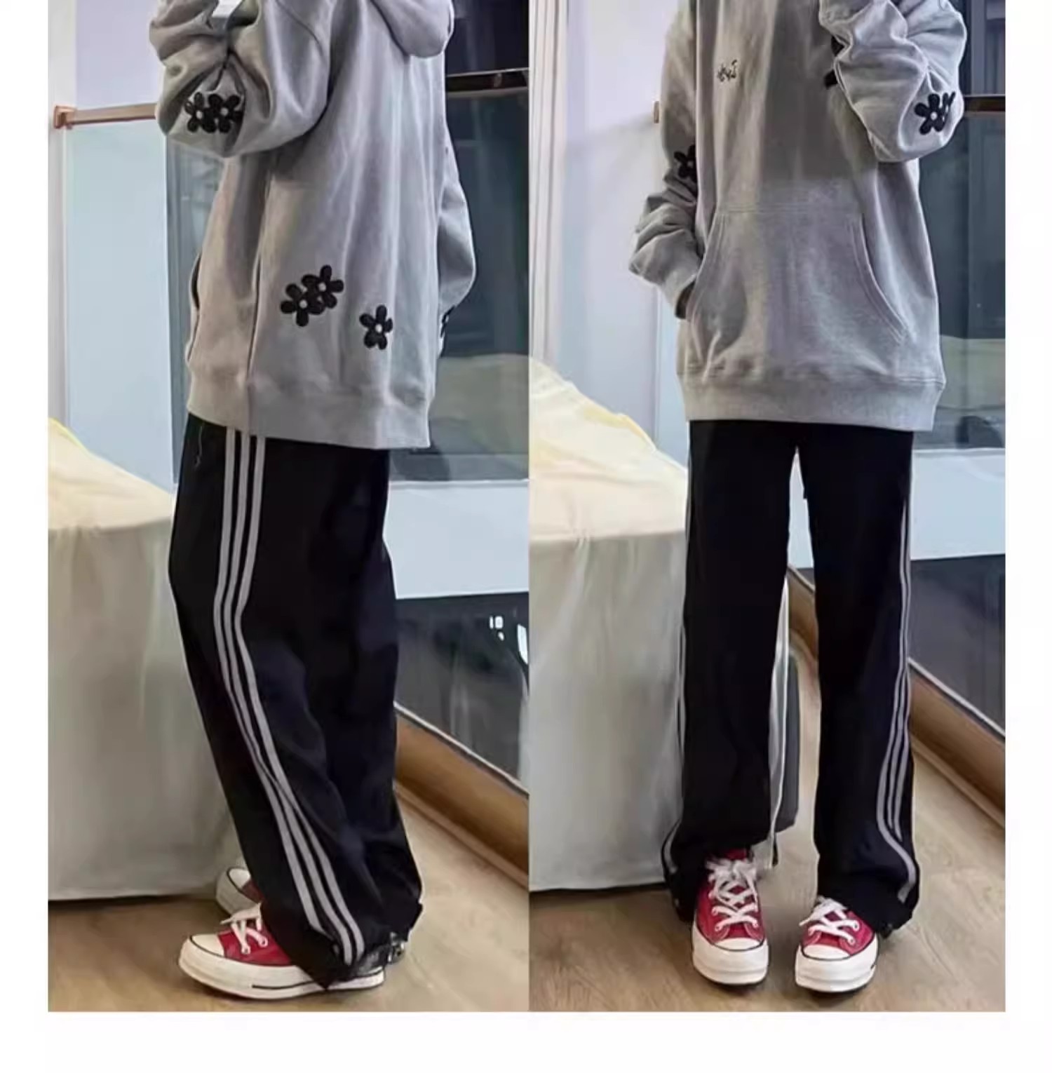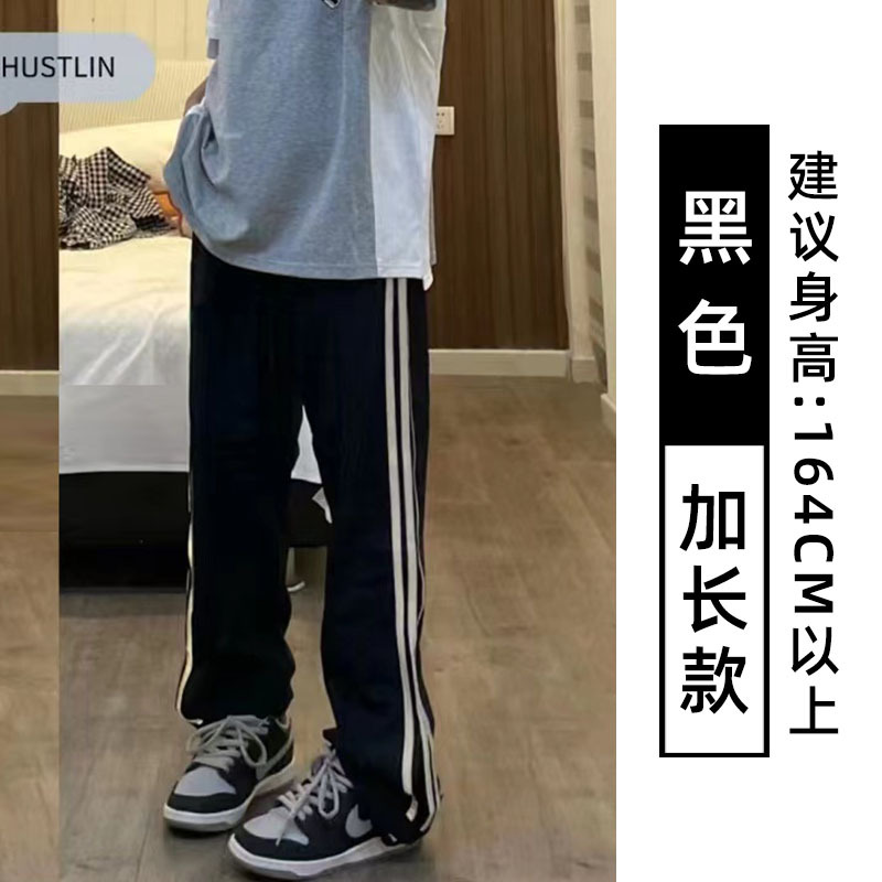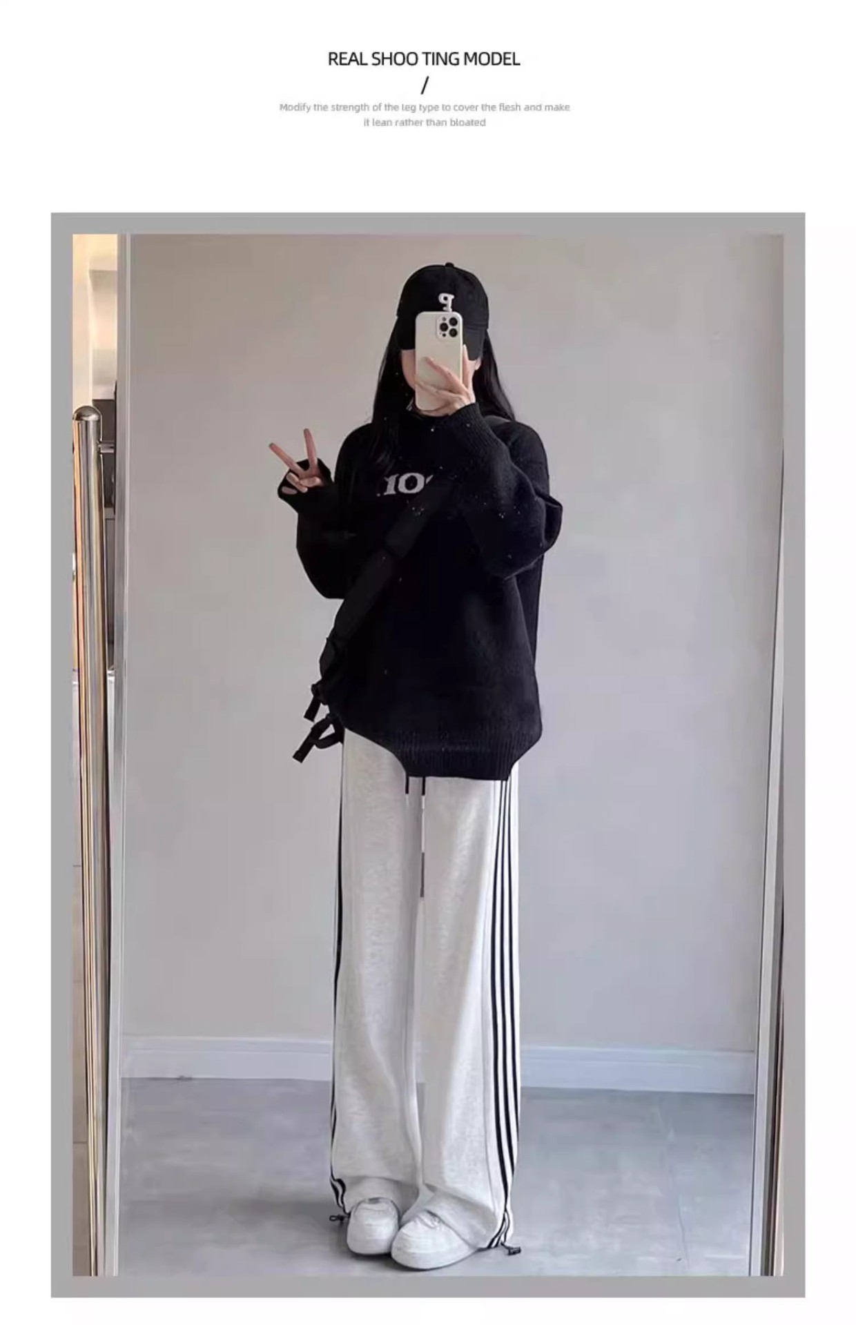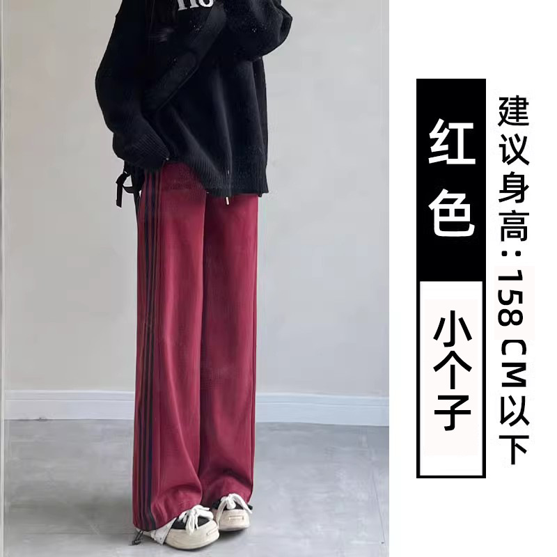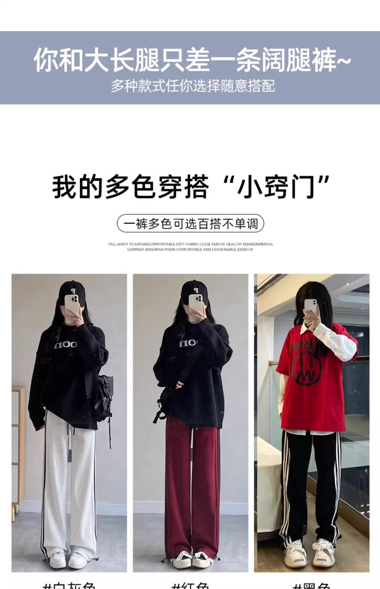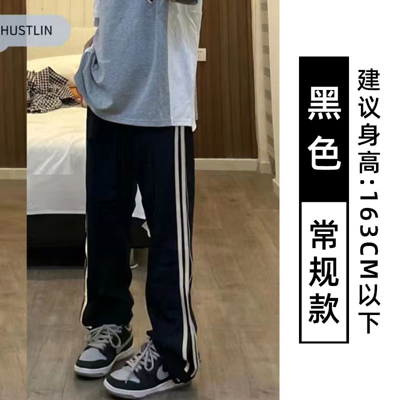 화이트 그레이 스트라이프 스포츠 팬츠 여성용 봄 가을 겨울 2024 신상 작은 사이즈 와이드 레그 스트레이트 팬츠 스웨트팬츠 와이드 레그 슬림핏스토어 가기
