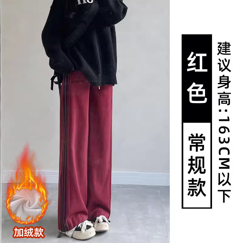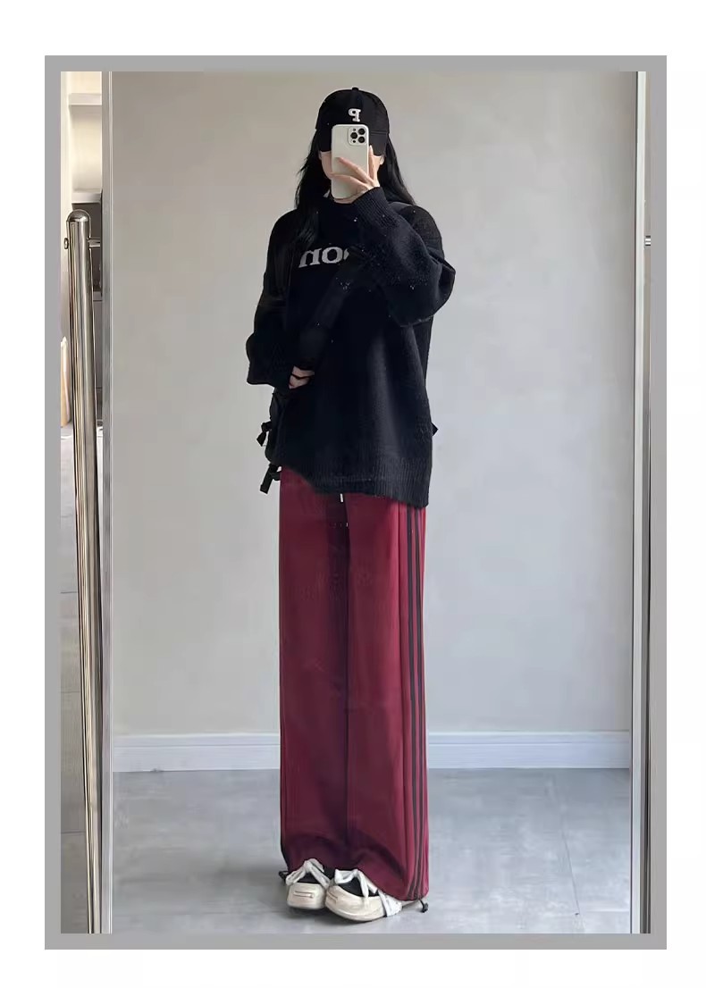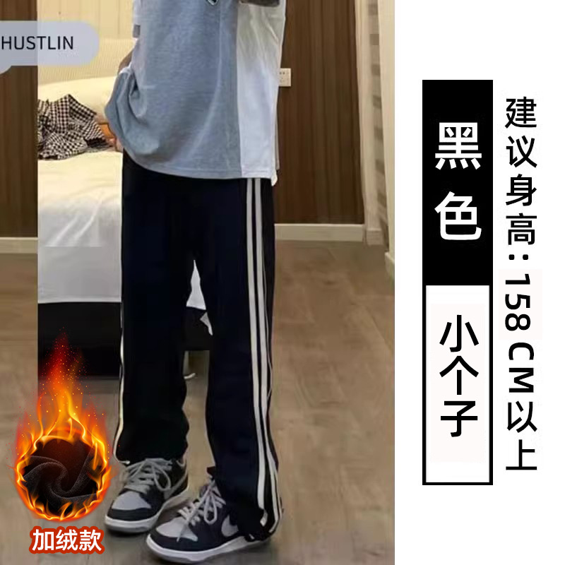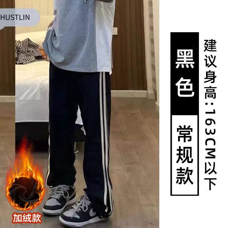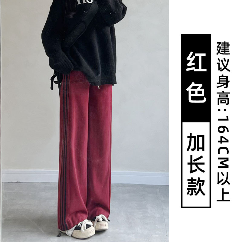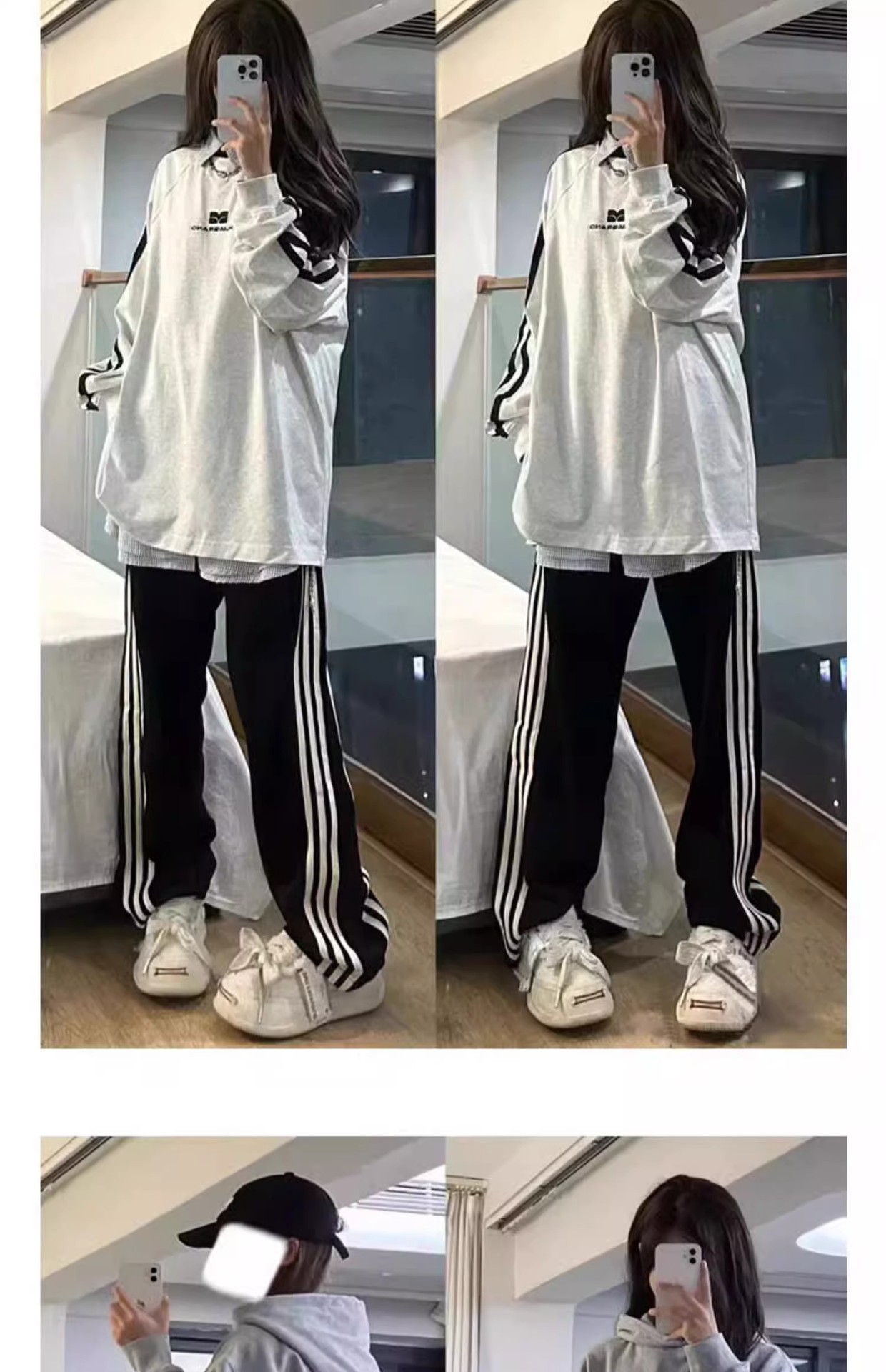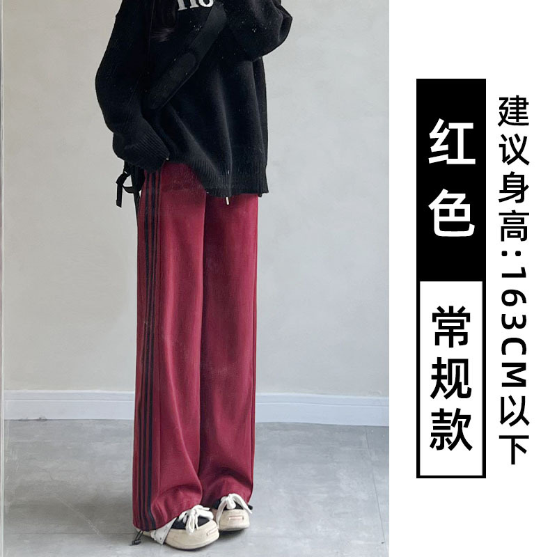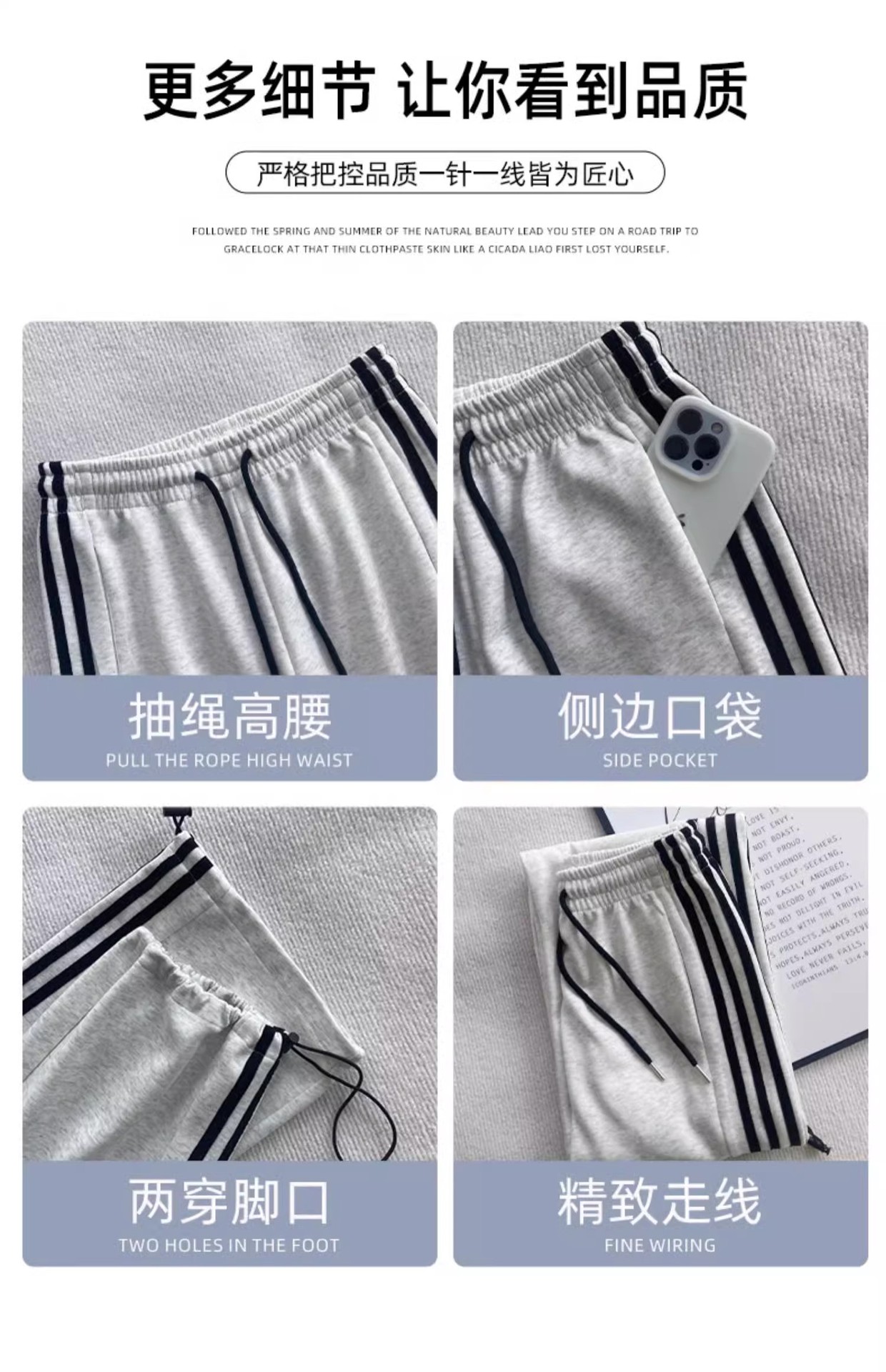 화이트 그레이 스트라이프 스포츠 팬츠 여성용 봄 가을 겨울 2024 신상 작은 사이즈 와이드 레그 스트레이트 팬츠 스웨트팬츠 와이드 레그 슬림핏스토어 가기