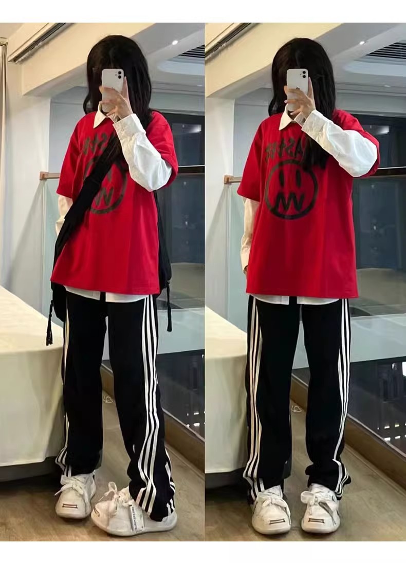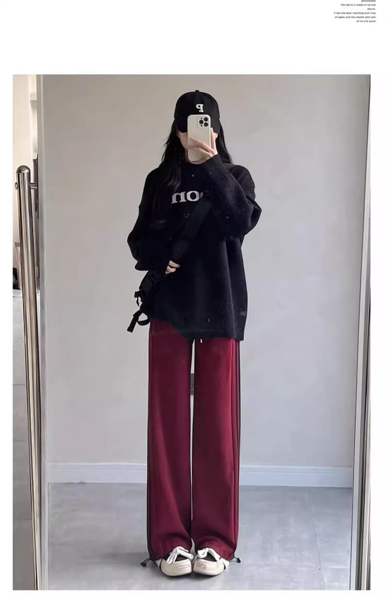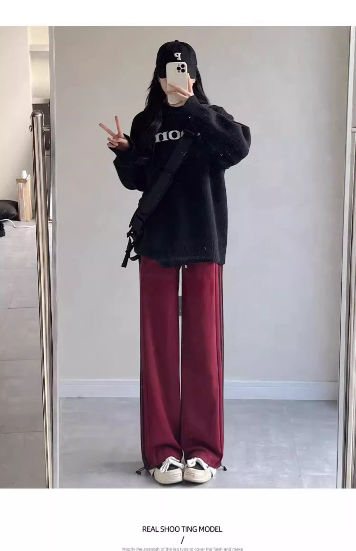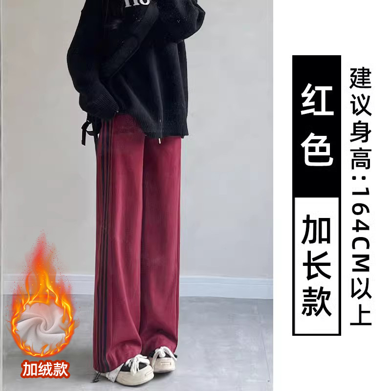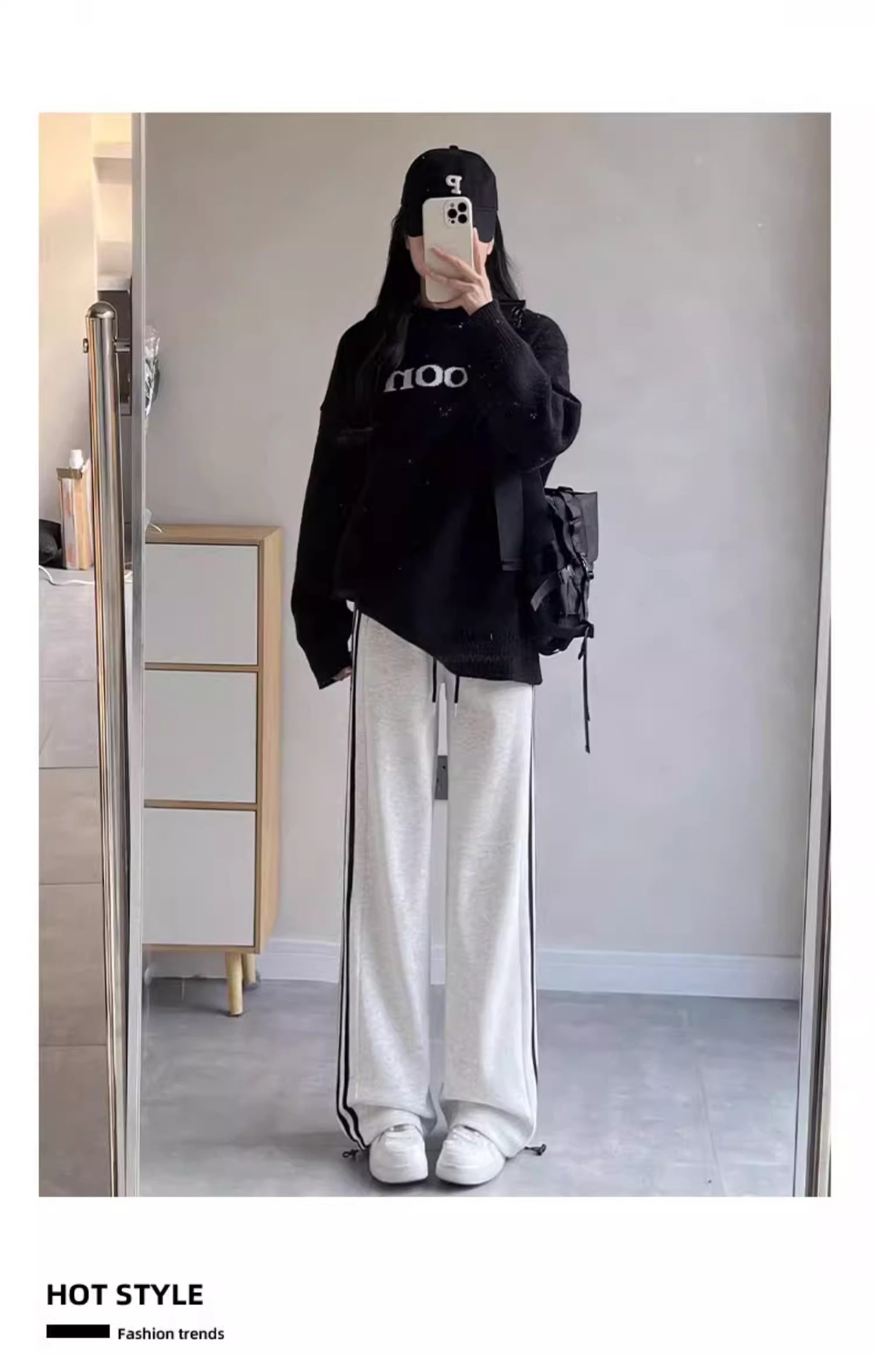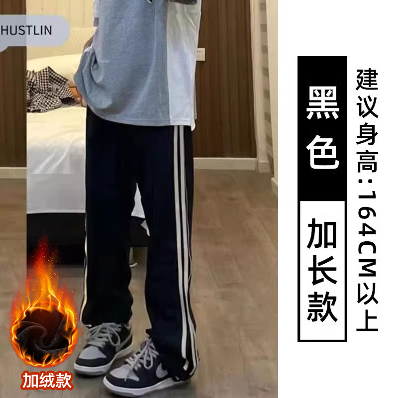 화이트 그레이 스트라이프 스포츠 팬츠 여성용 봄 가을 겨울 2024 신상 작은 사이즈 와이드 레그 스트레이트 팬츠 스웨트팬츠 와이드 레그 슬림핏스토어 가기
