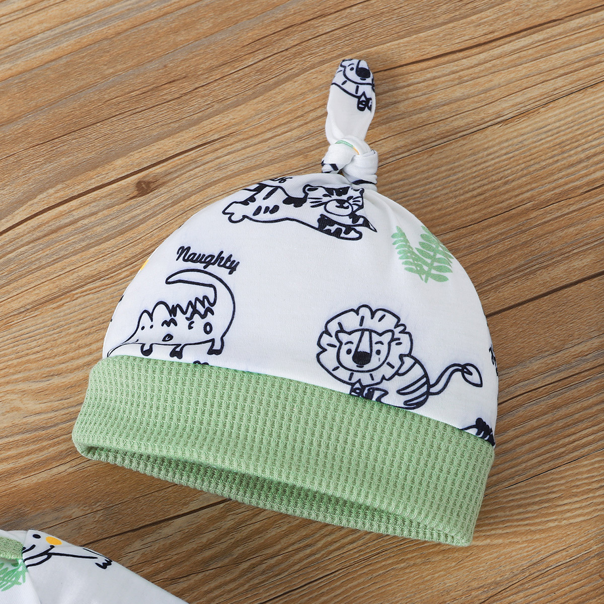 소년 아기 0 ~ 1 년 된 봄과 가을 긴 소매 모자 세트 만화 인쇄 캐주얼 모자 3 피스 세트 소년