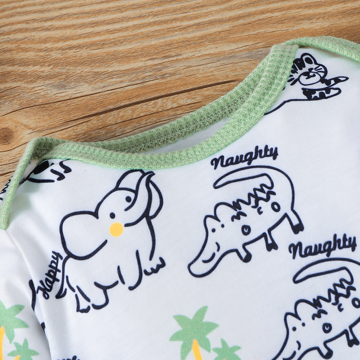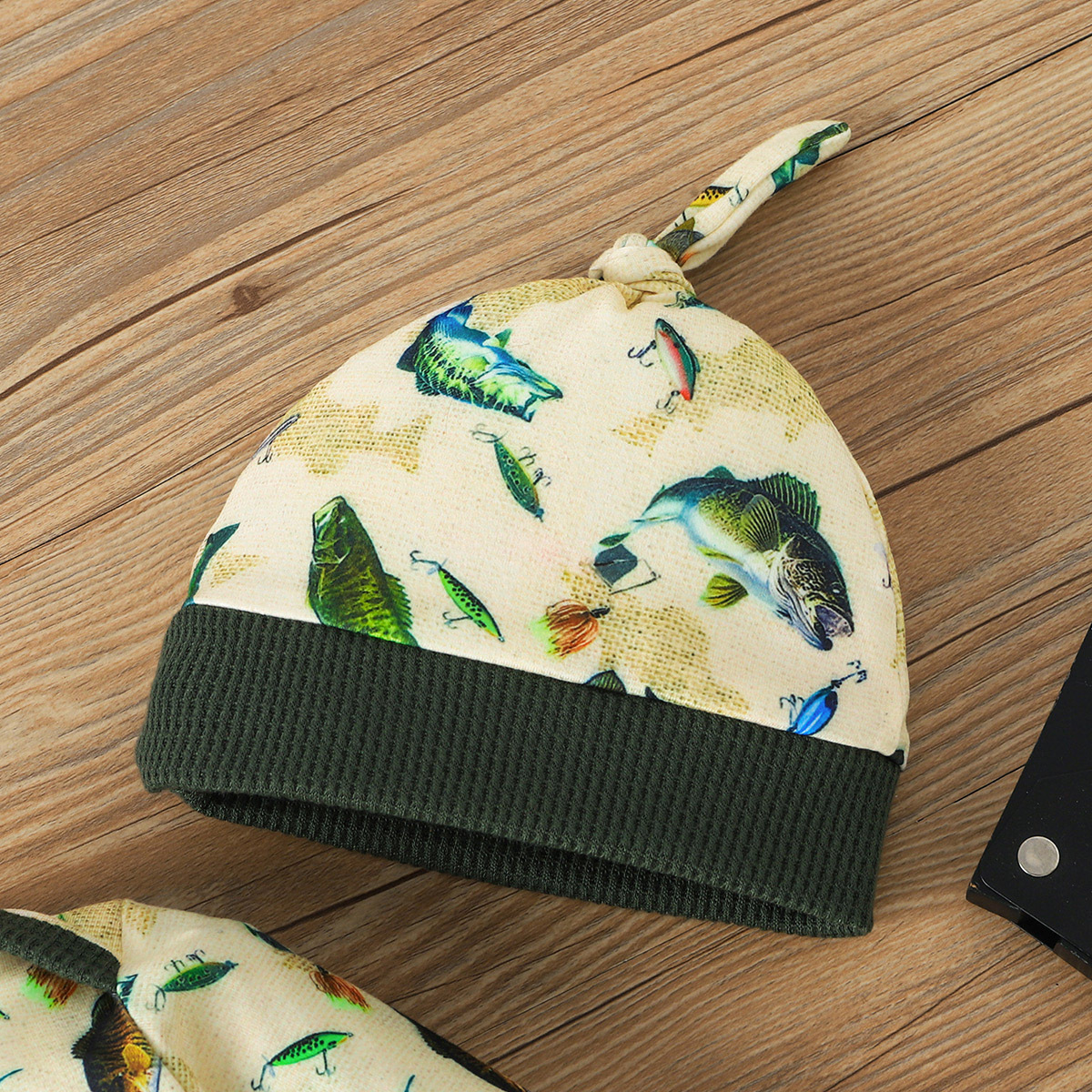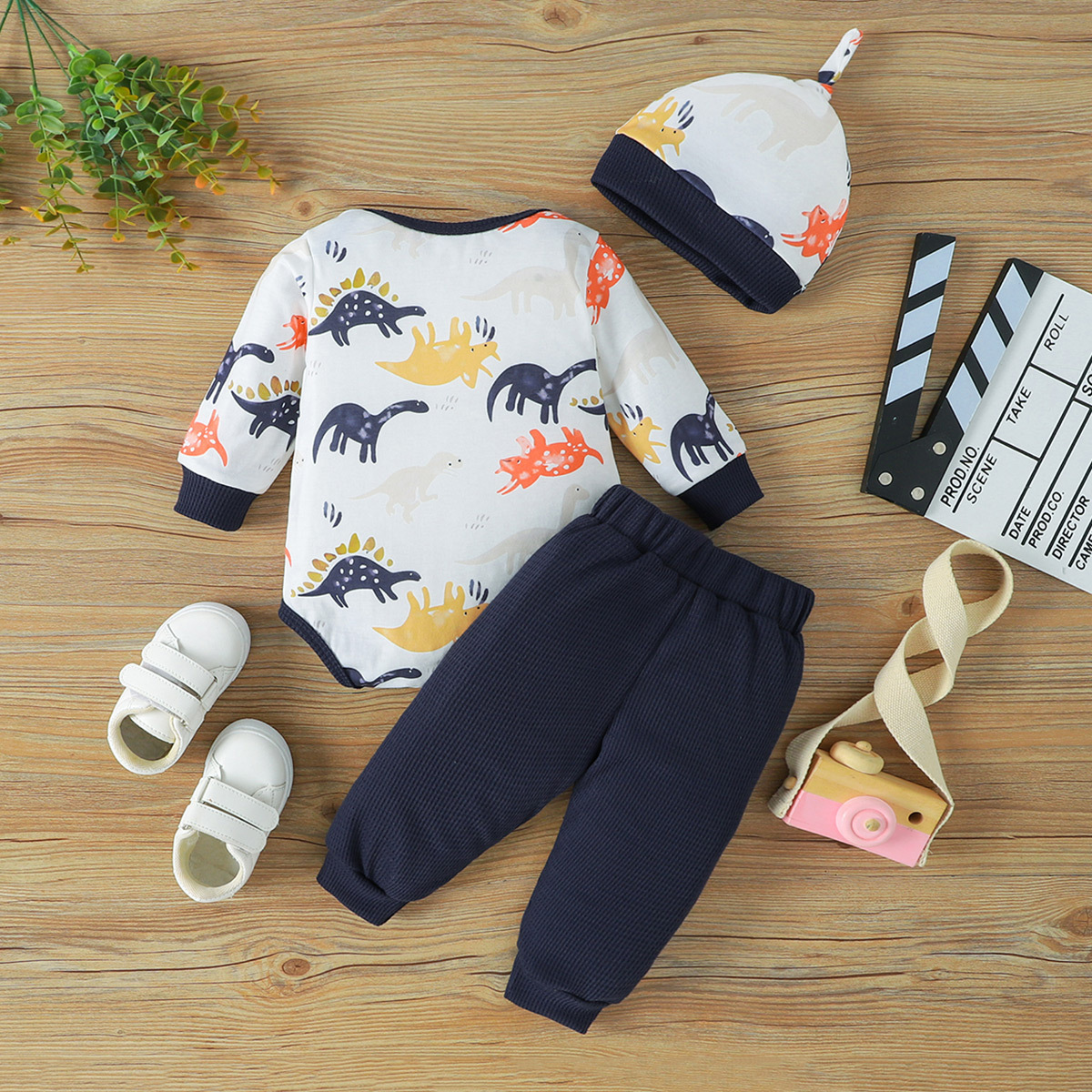 소년 아기 0 ~ 1 년 된 봄과 가을 긴 소매 모자 세트 만화 인쇄 캐주얼 모자 3 피스 세트 소년스토어 가기