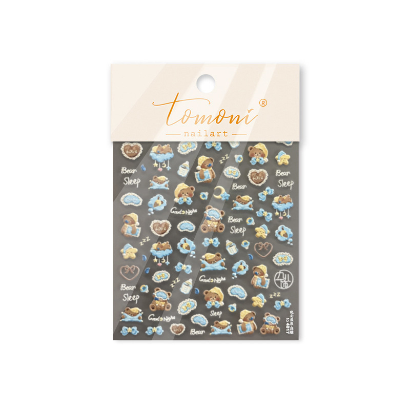 Tomoni 구호 네일 아트 스티커 폭발성 일본 문구 네일 스티커 귀여운 굿나잇 베어 네일 아트 스티커스토어 가기