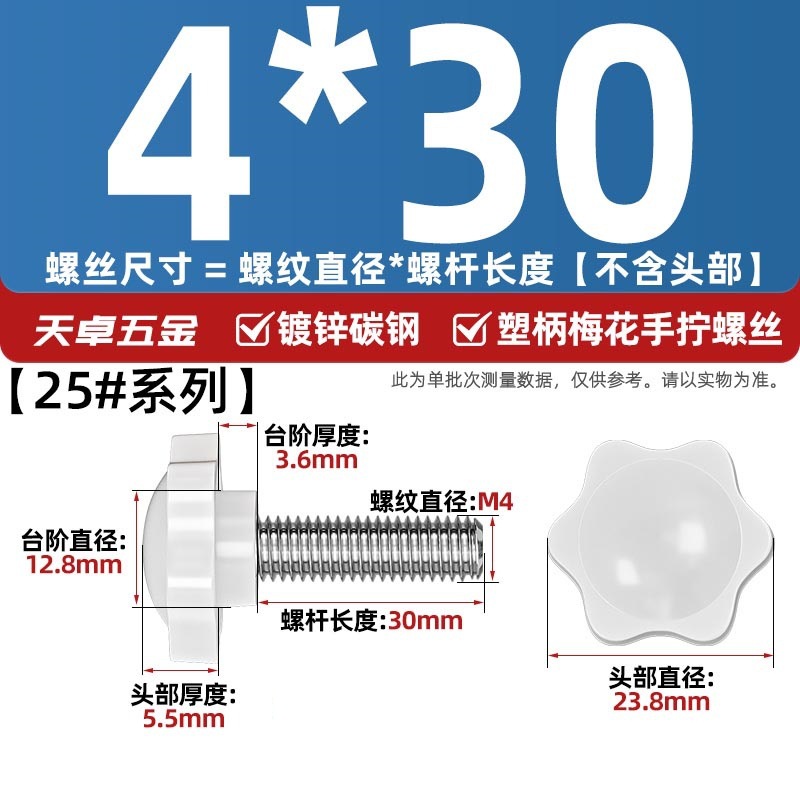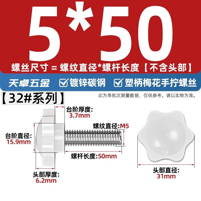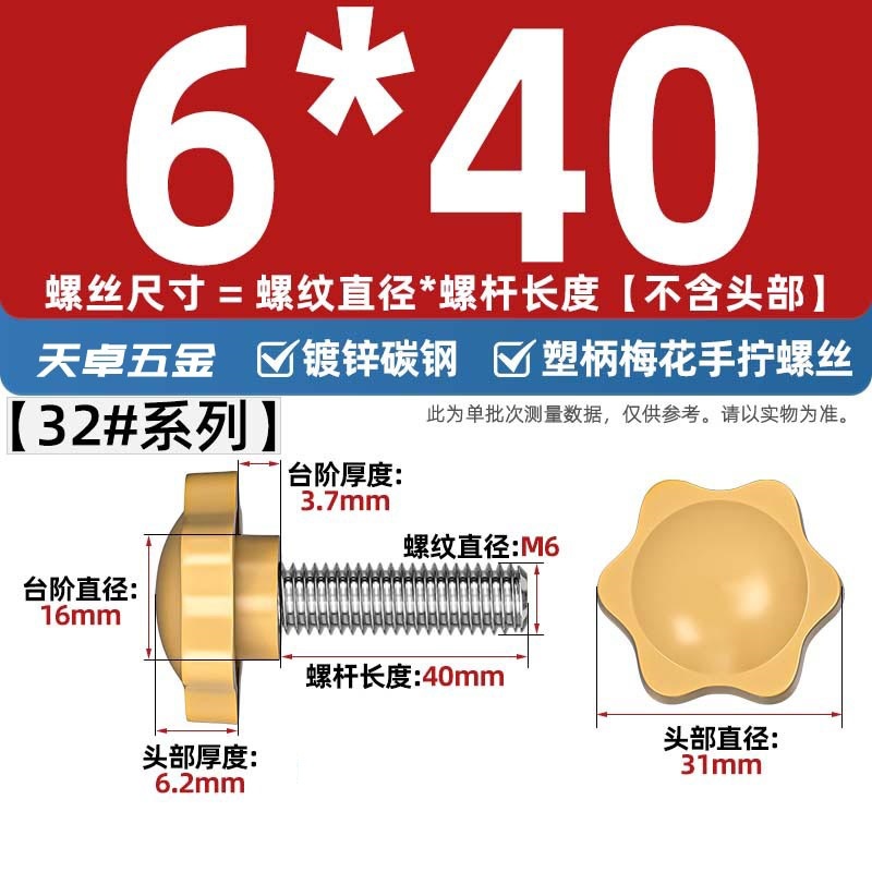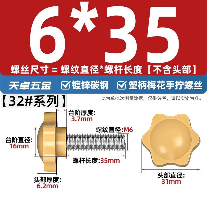 노란색/흰색 6 성급 고무 헤드 핸드 스크류 매실 핸들 bakelite 볼트 M4M5M6M8M10스토어 가기