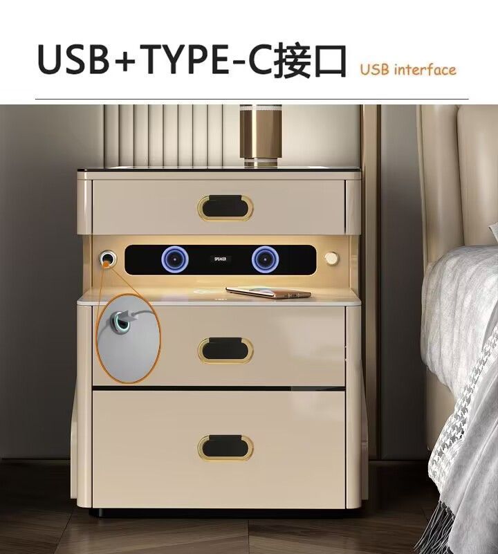 스마트 침대 옆 테이블 안전 통합 간단한 현대 무선 충전 지문 잠금 블루투스 침대 옆 캐비닛 안전스토어 가기