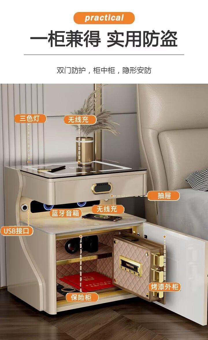 스마트 침대 옆 테이블 안전 통합 간단한 현대 무선 충전 지문 잠금 블루투스 침대 옆 캐비닛 안전