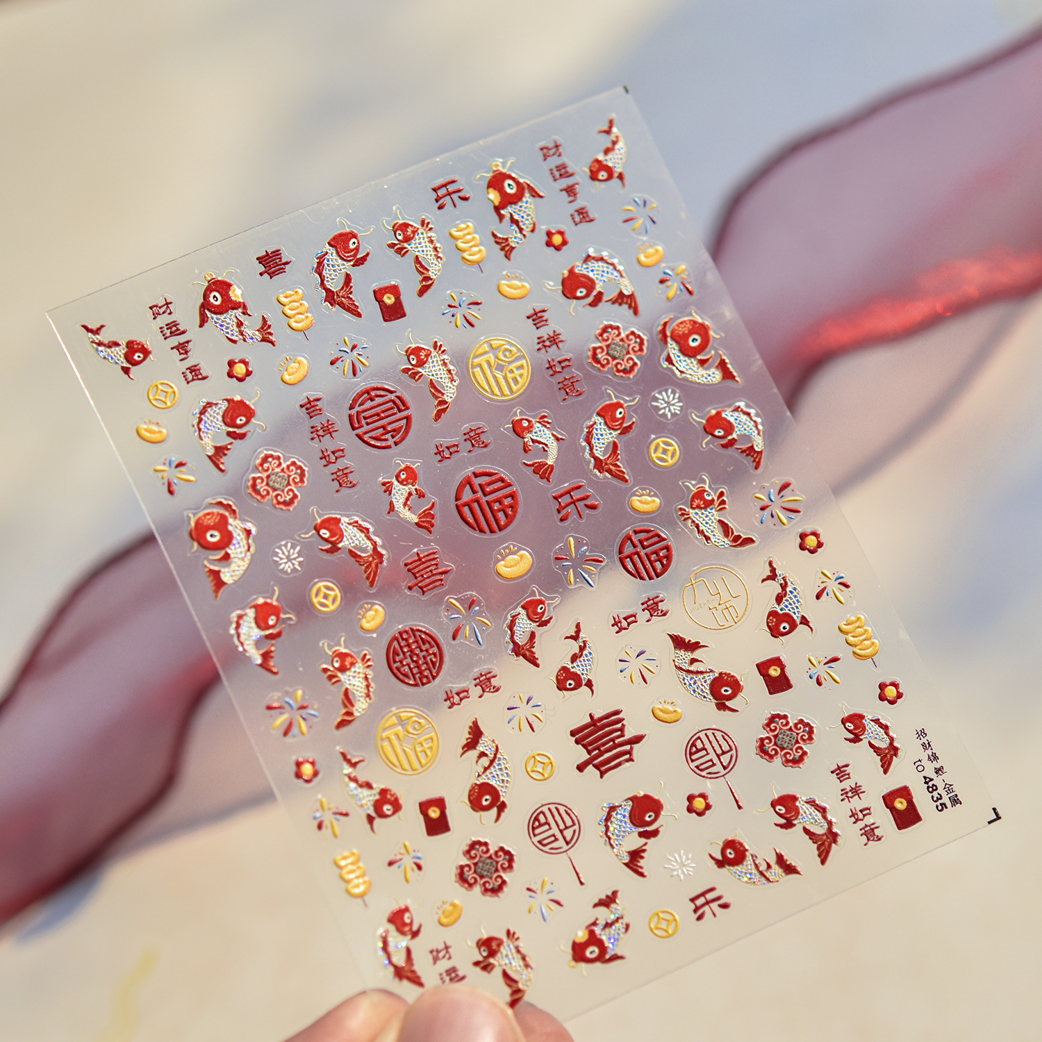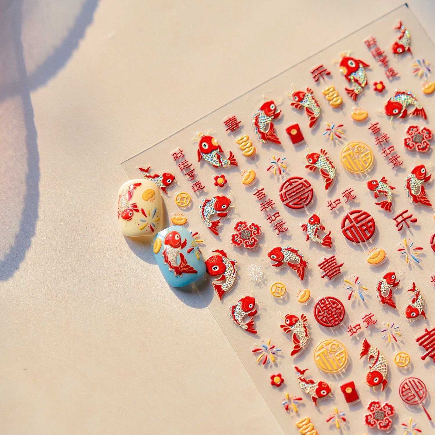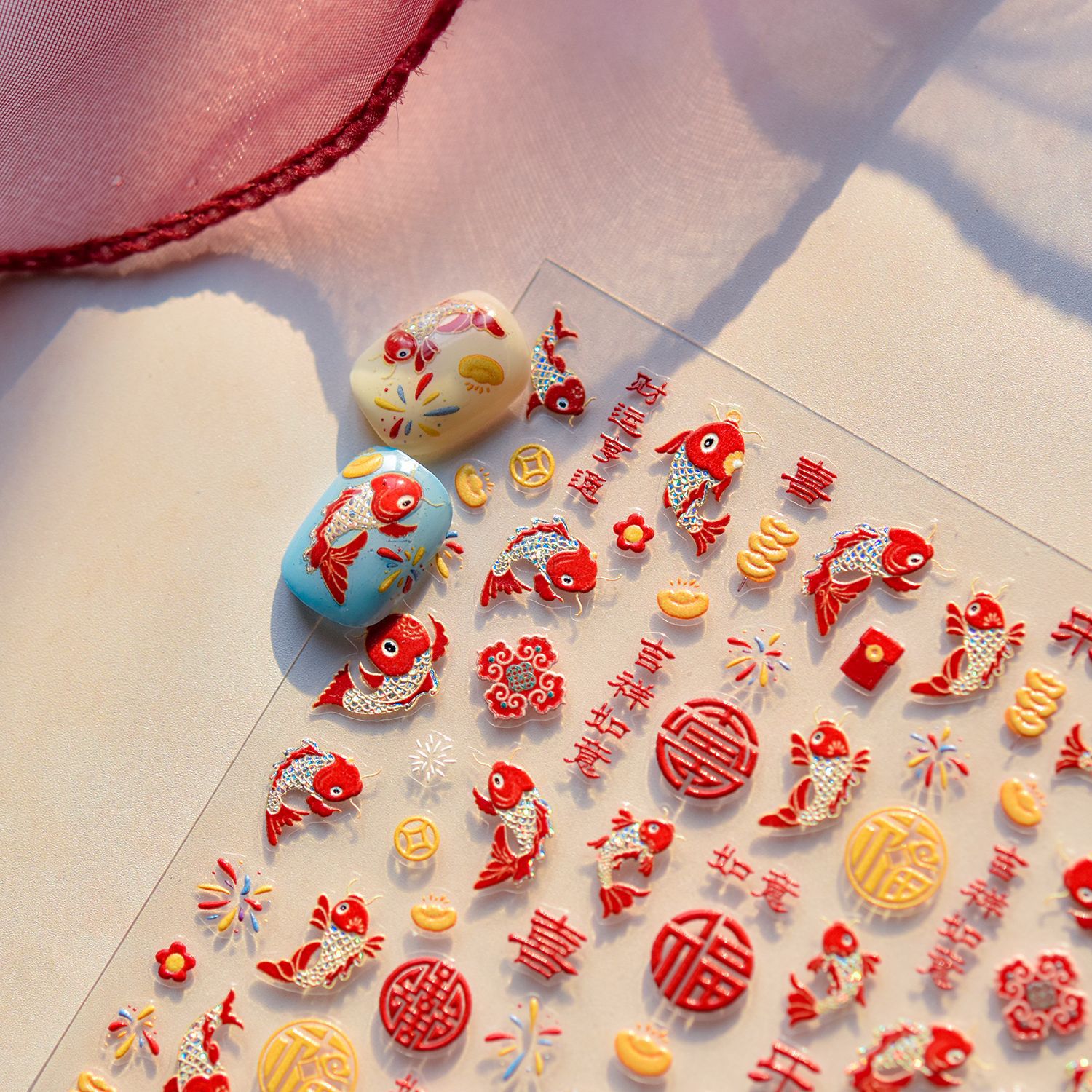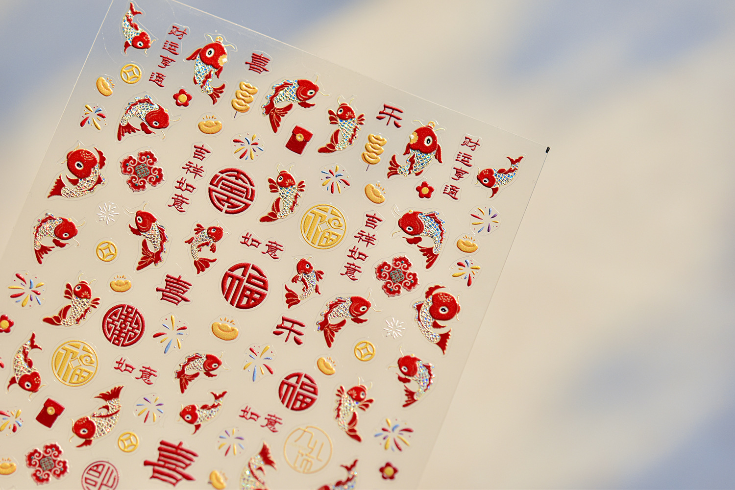 Tomoni 금속 네일 아트 스티커 폭발 Diy 일본 문구 네일 스티커 Lucky Koi 새해 네일 아트 스티커