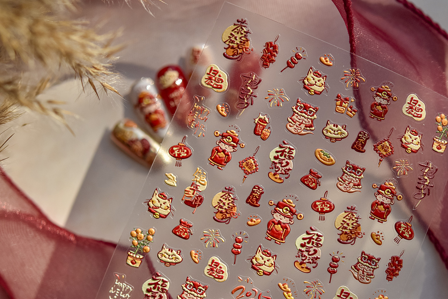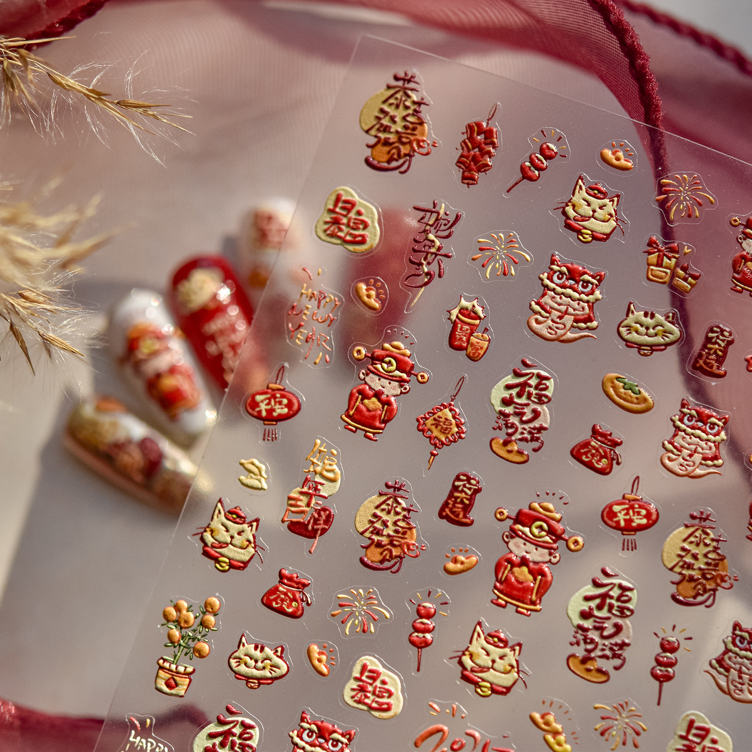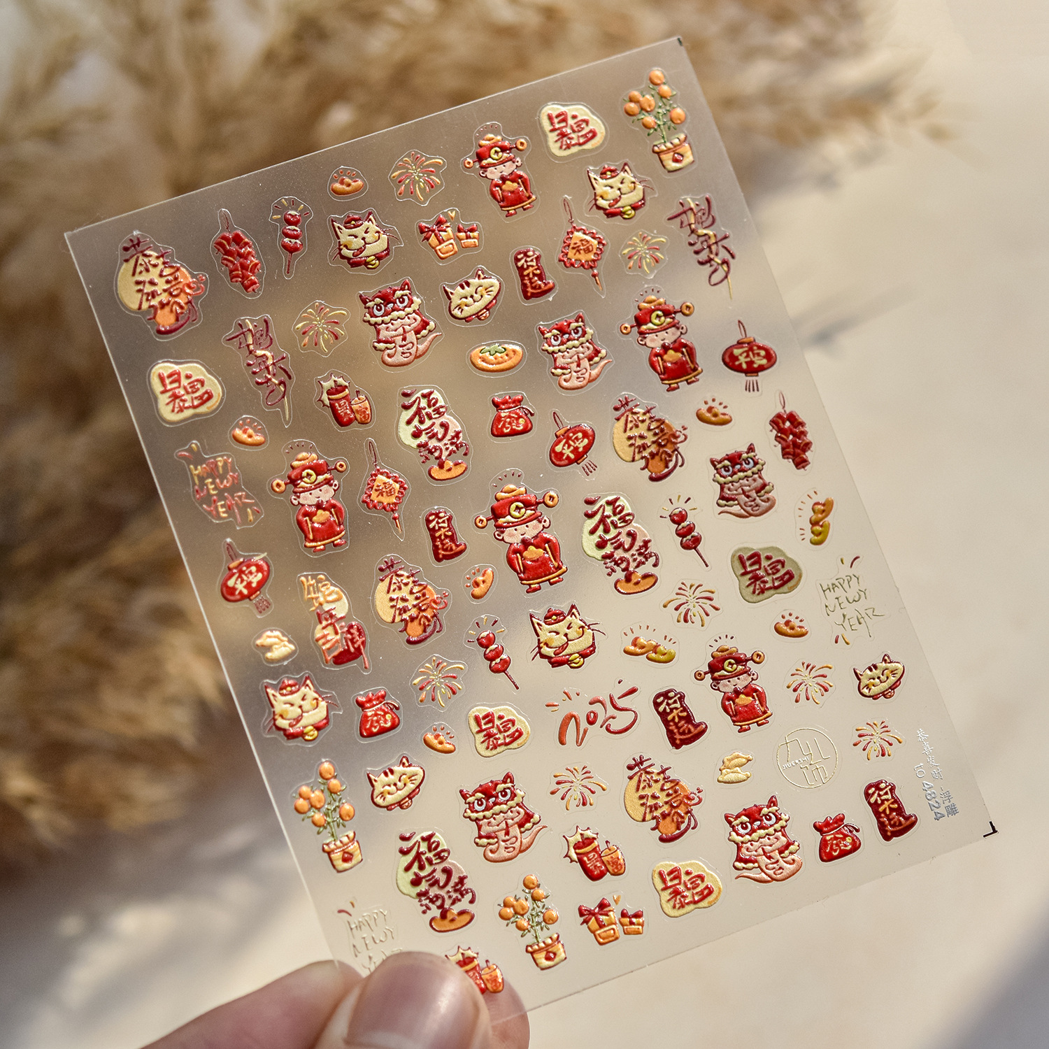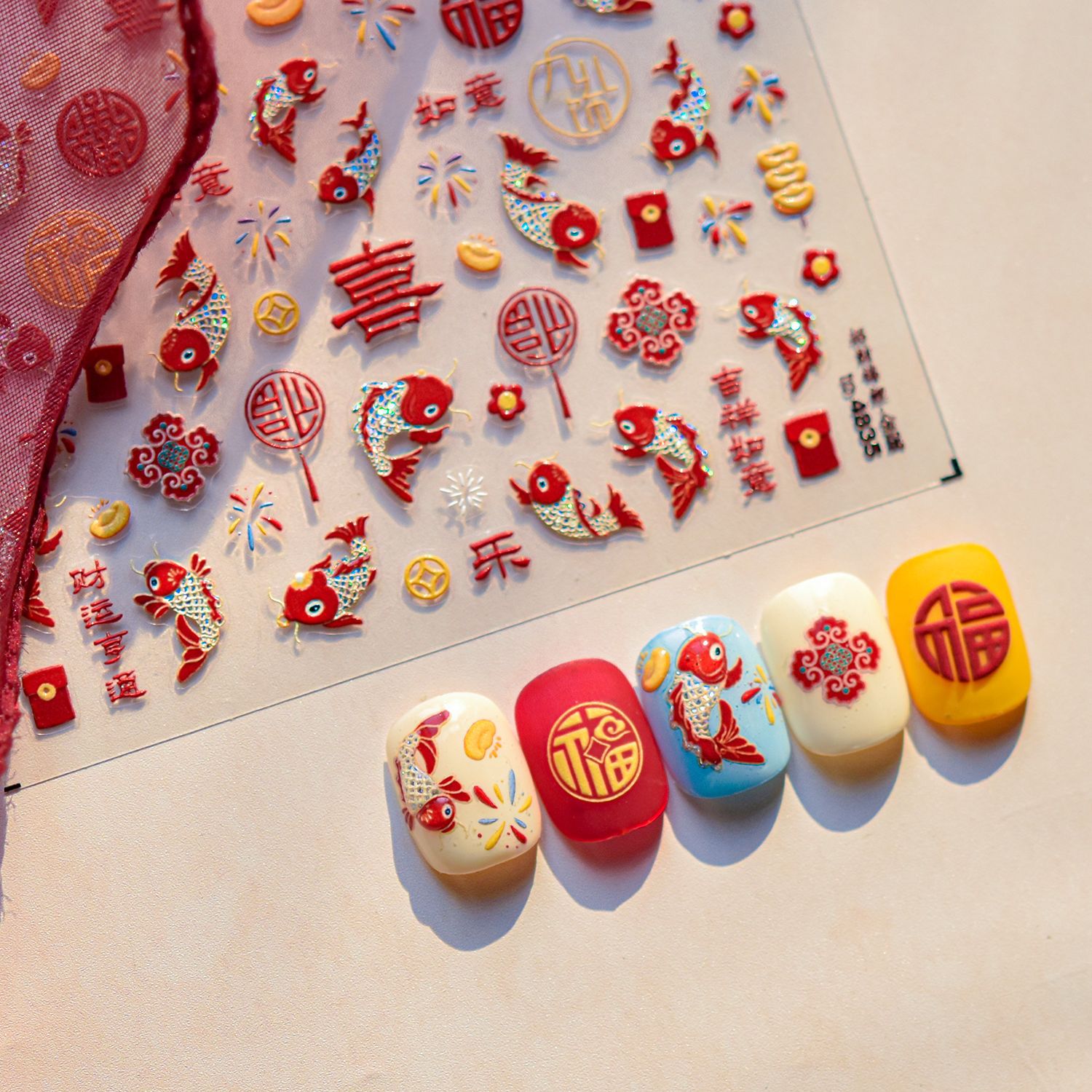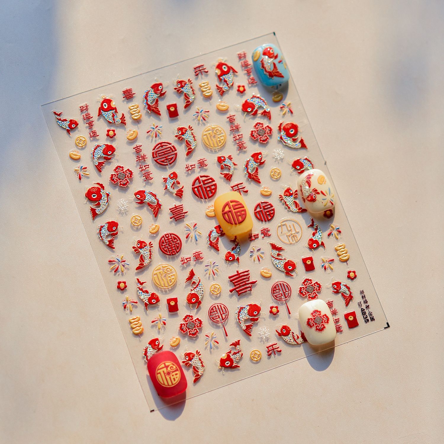 Tomoni 금속 네일 아트 스티커 폭발 Diy 일본 문구 네일 스티커 Lucky Koi 새해 네일 아트 스티커