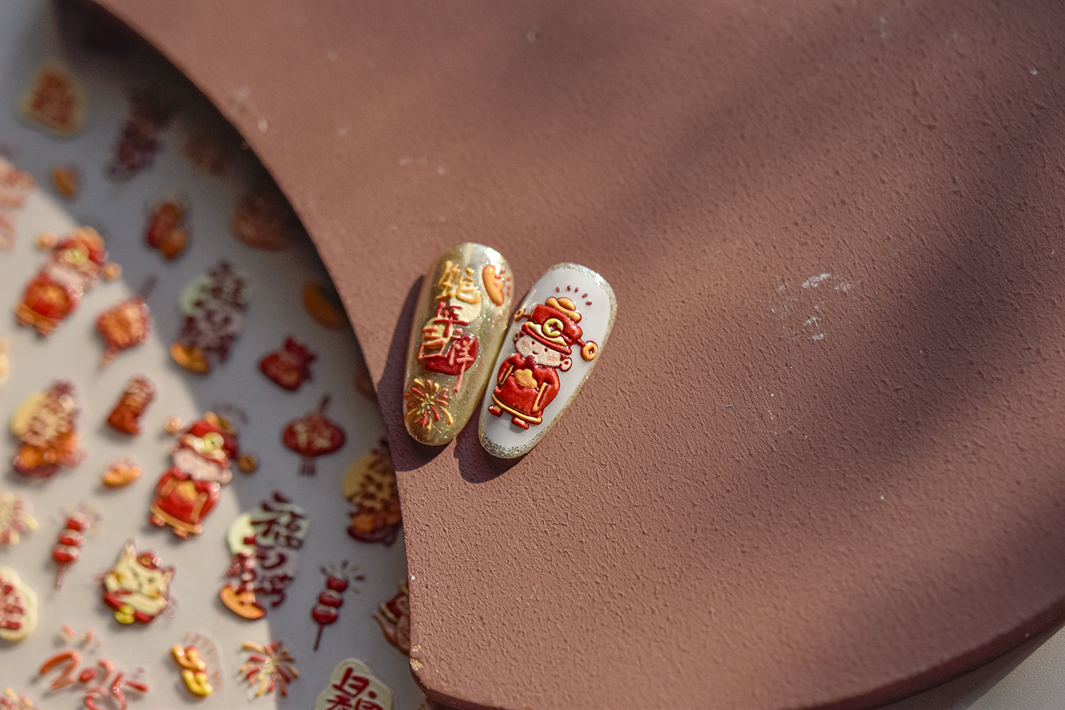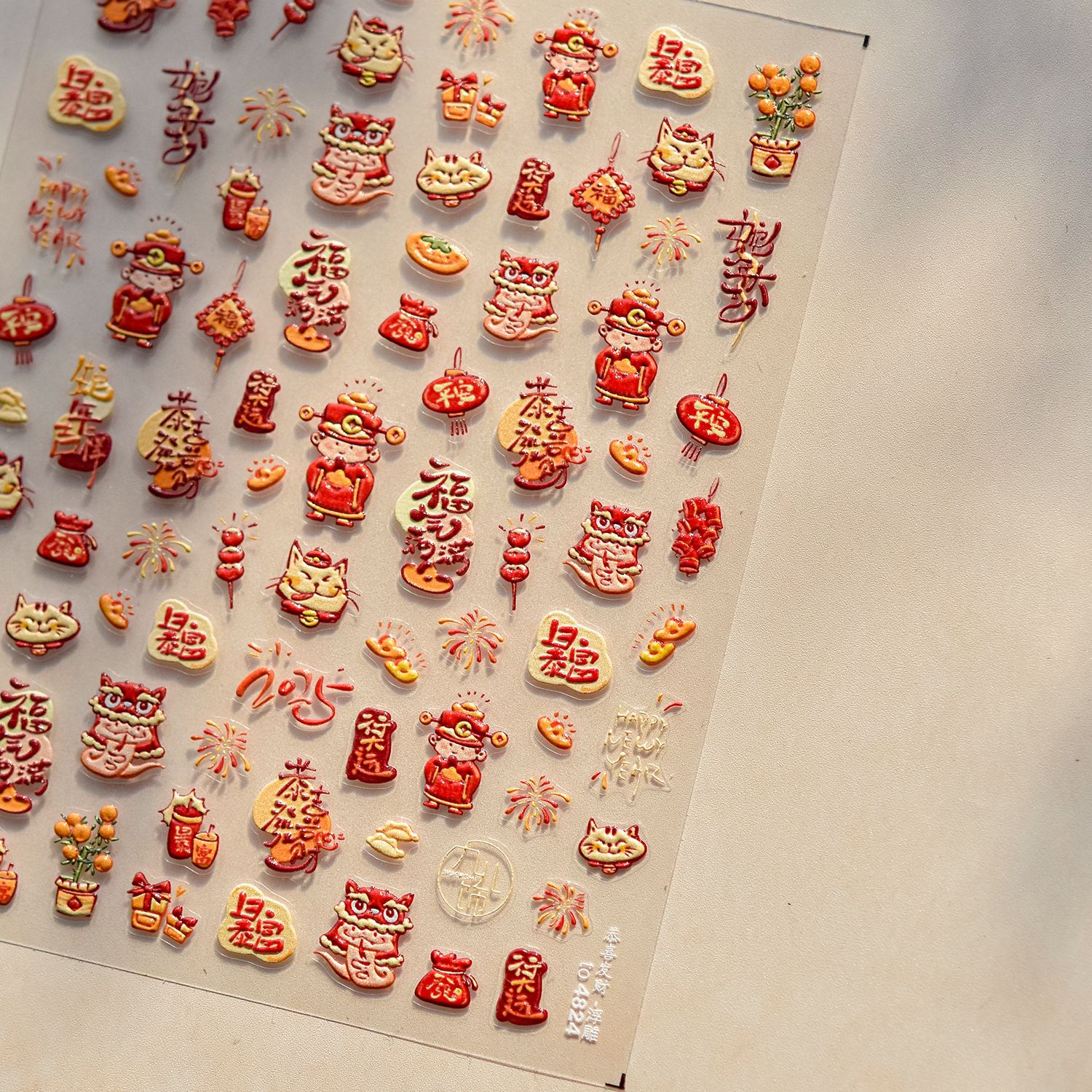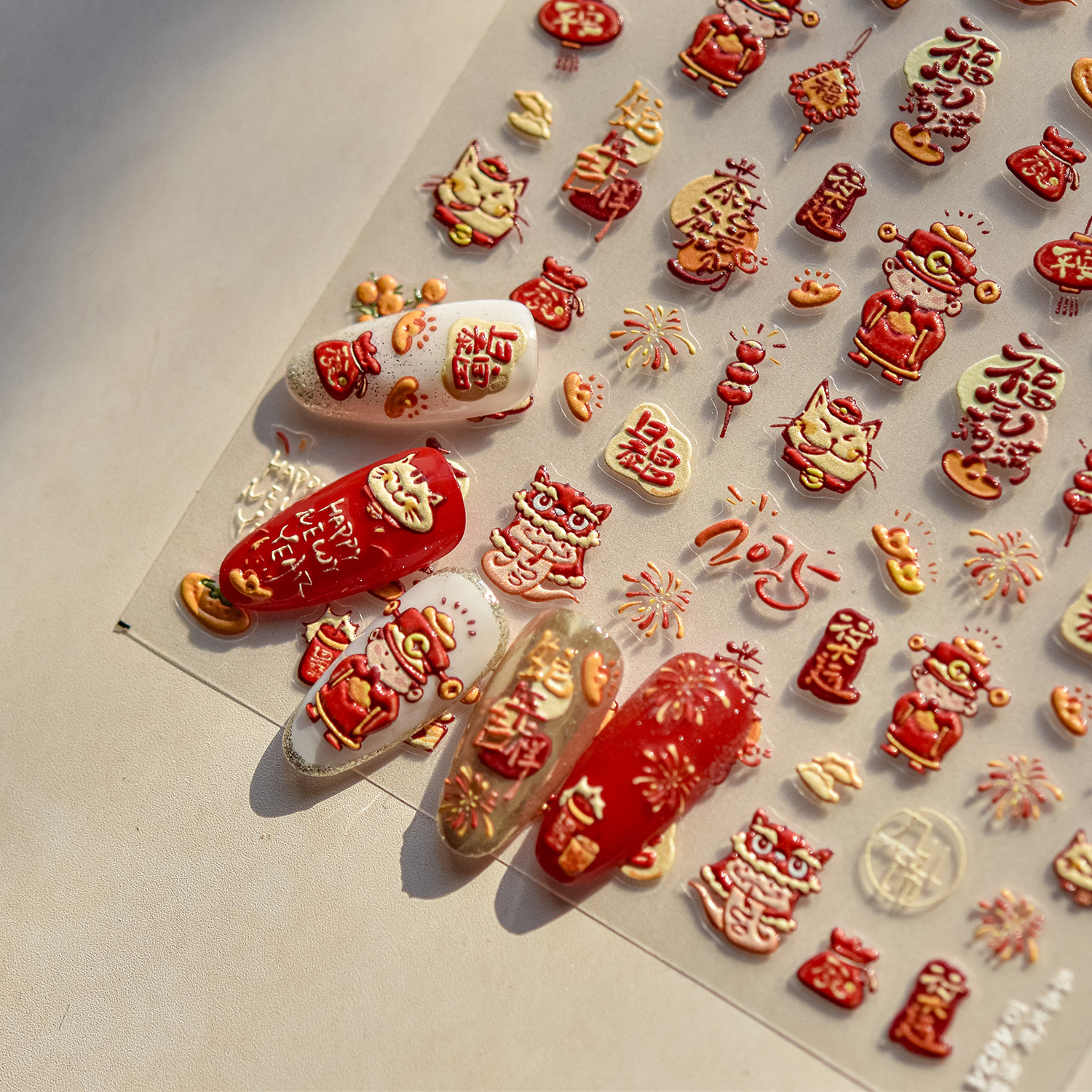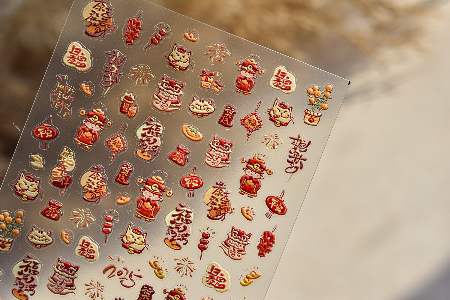 Tomoni 금속 네일 아트 스티커 폭발 Diy 일본 문구 네일 스티커 Lucky Koi 새해 네일 아트 스티커