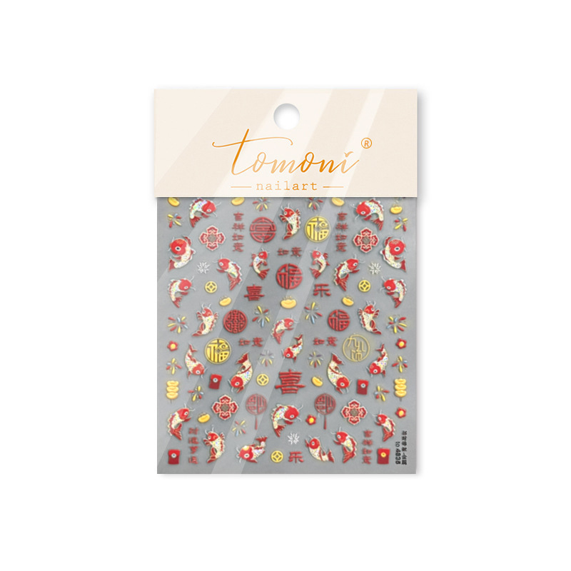 Tomoni 금속 네일 아트 스티커 폭발 Diy 일본 문구 네일 스티커 Lucky Koi 새해 네일 아트 스티커스토어 가기