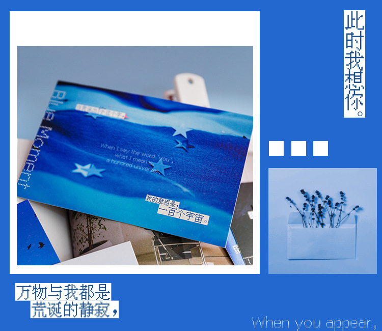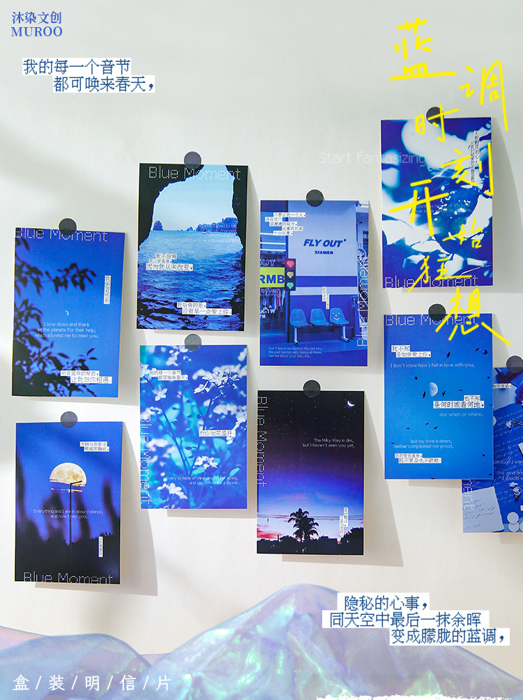 Mu 염료 엽서 블루스 순간 풍경 카드 학생 선물 축복 메시지 카드 바람 감사 카드스토어 가기
