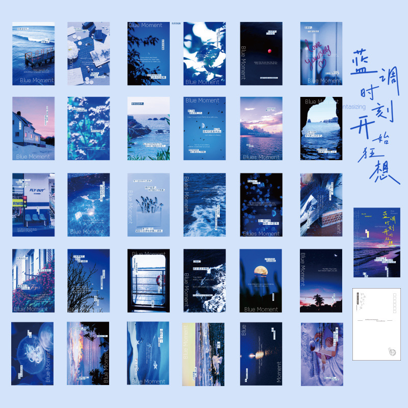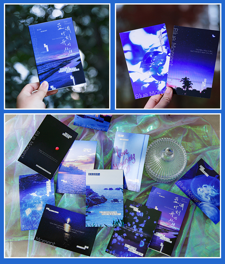 Mu 염료 엽서 블루스 순간 풍경 카드 학생 선물 축복 메시지 카드 바람 감사 카드