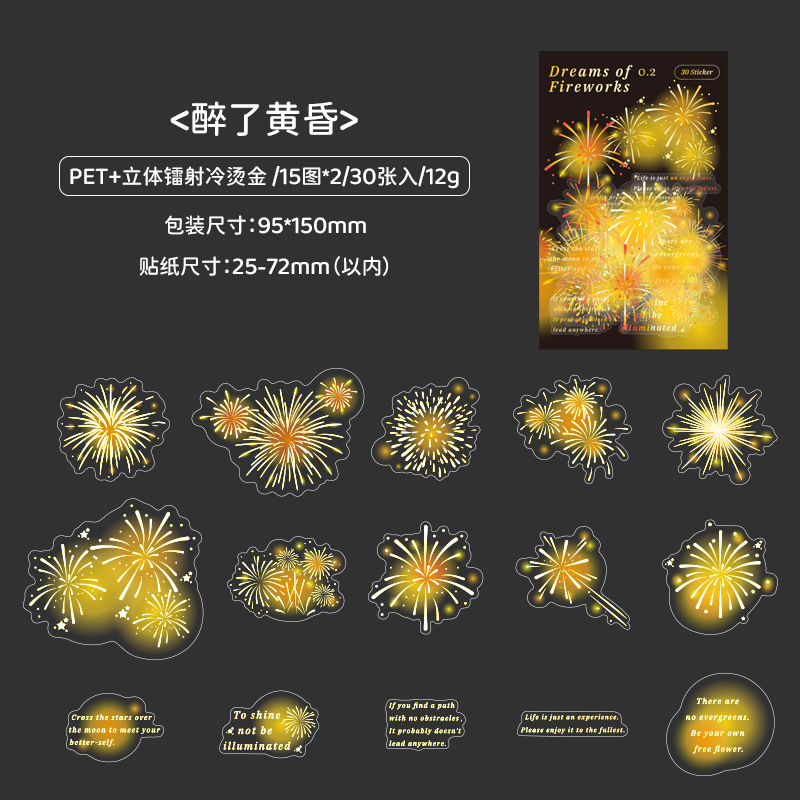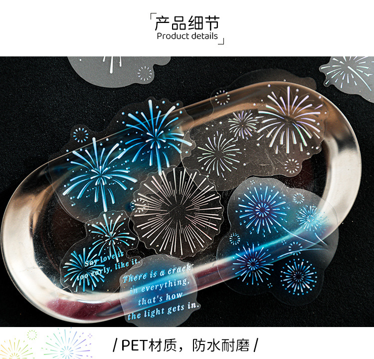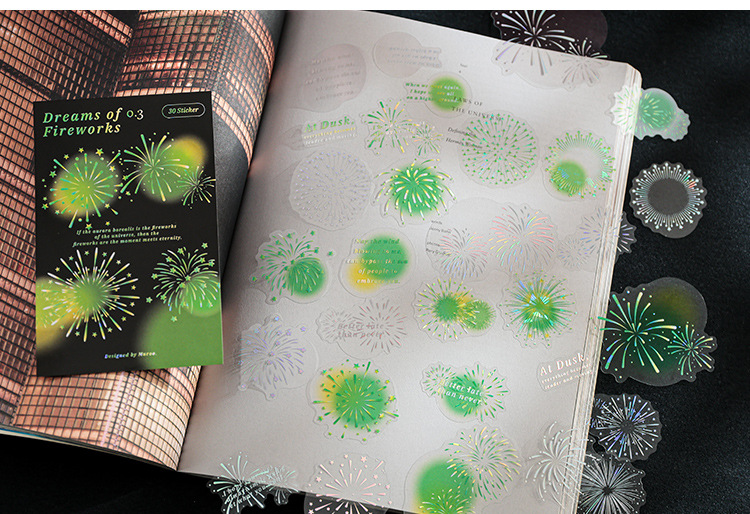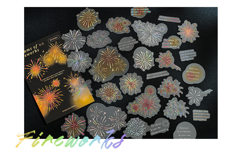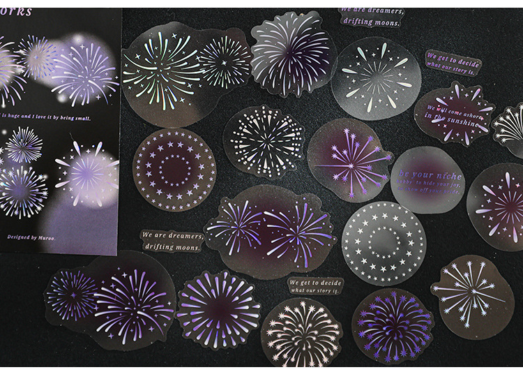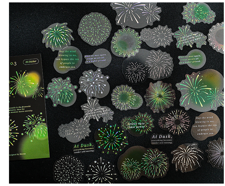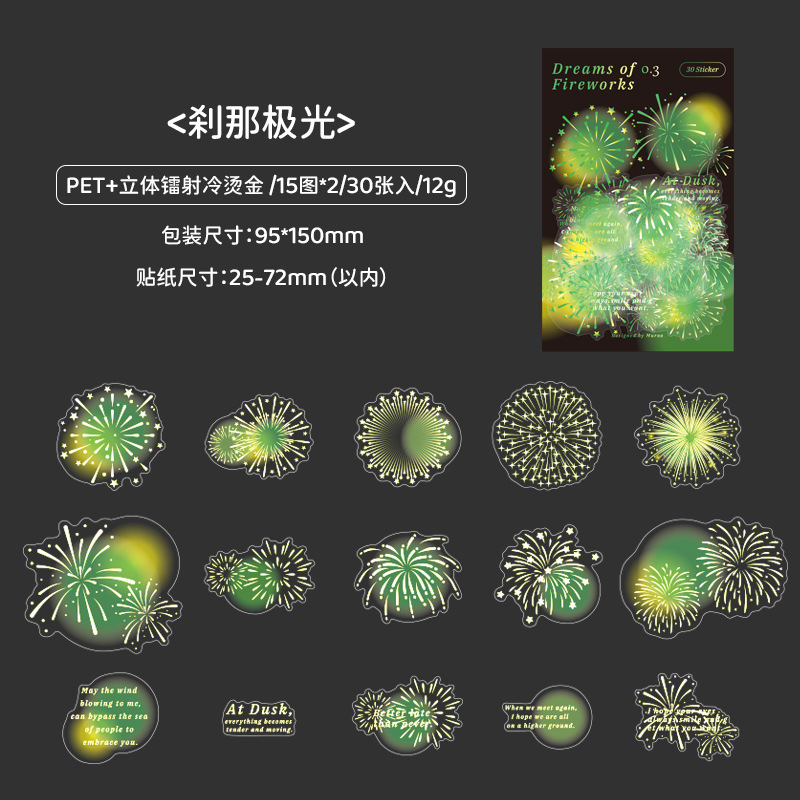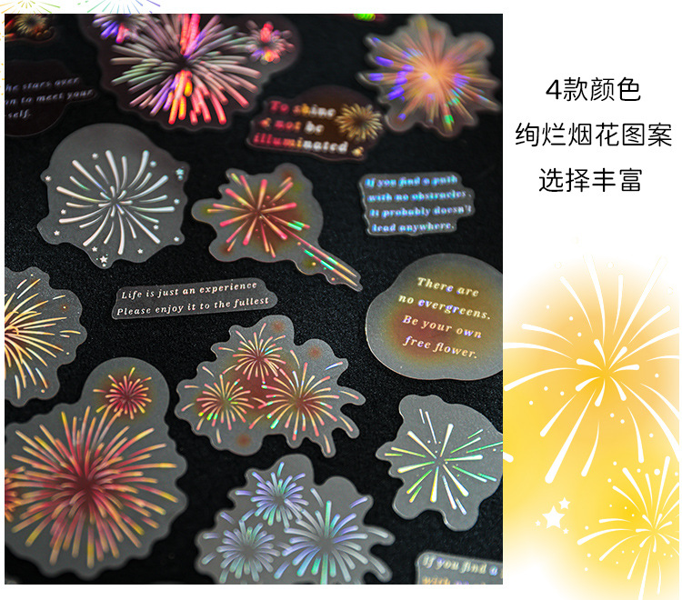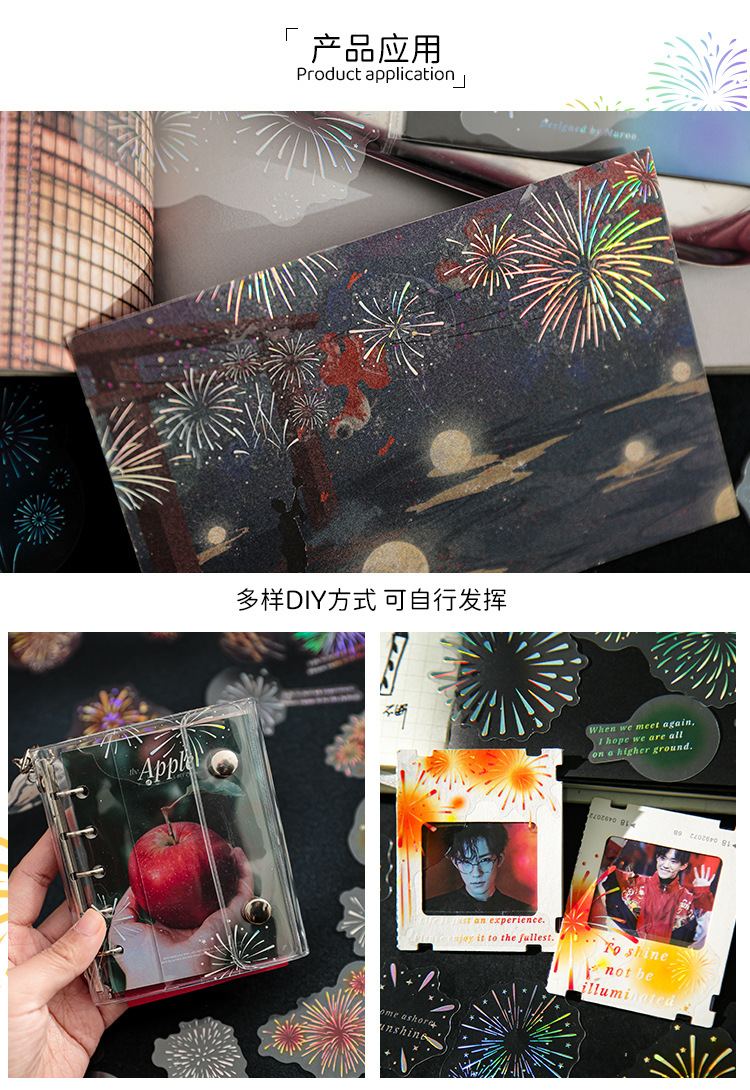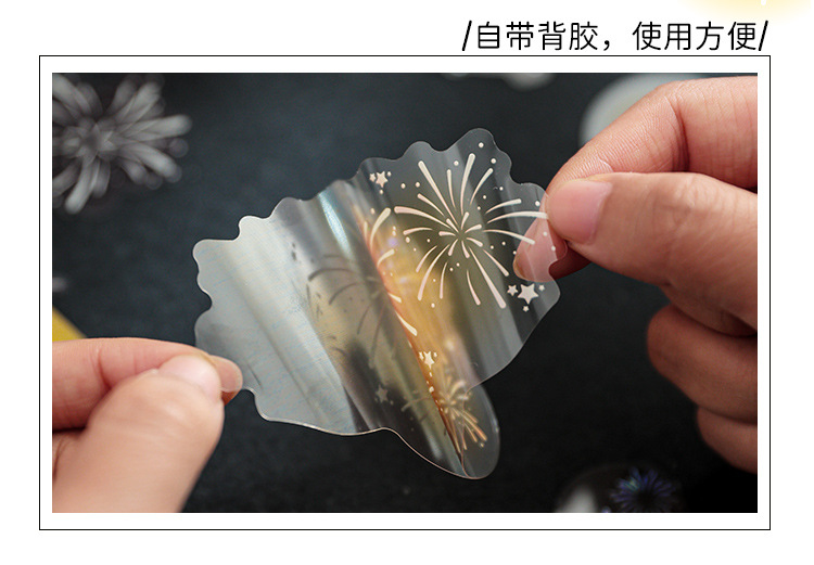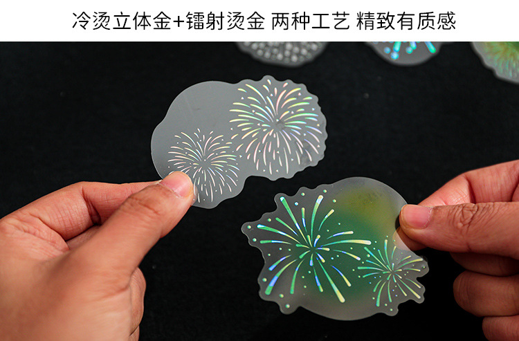 Mu 염료 스티커 패키지 흐름 무시 마이크로 꿈 손 계정 소재 장식 PET 스티커 로맨틱 불꽃 스테레오 브론징 스티커스토어 가기