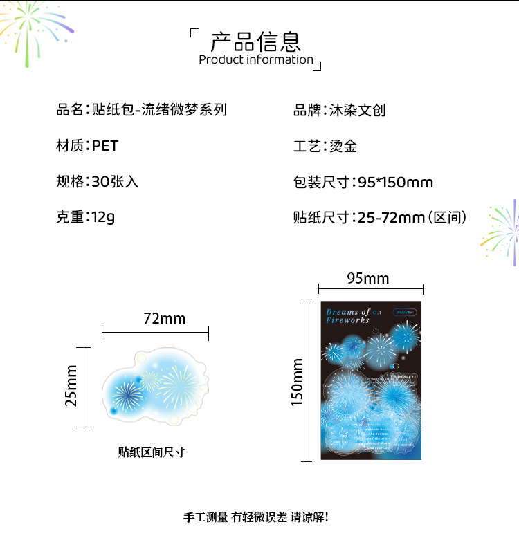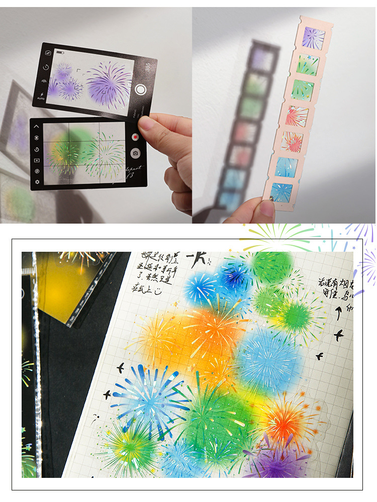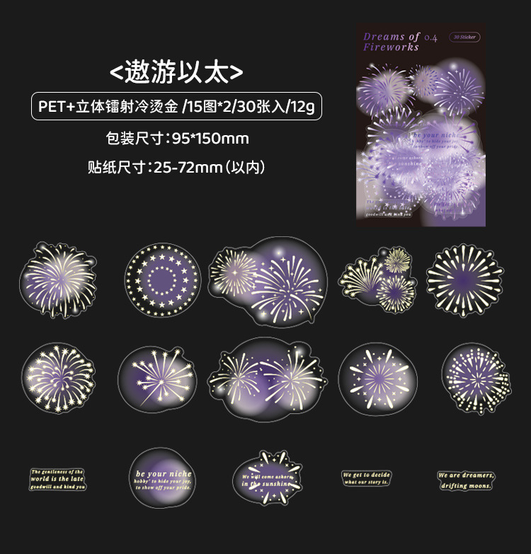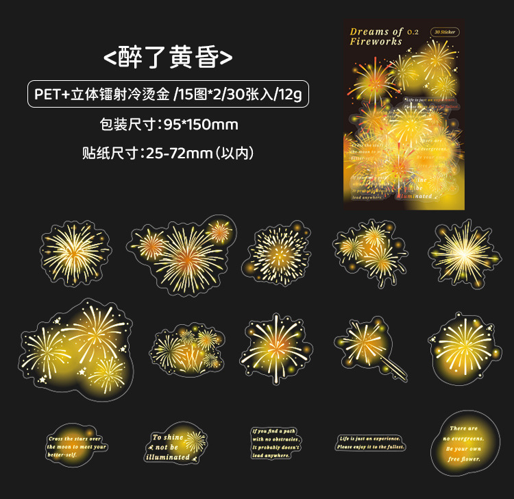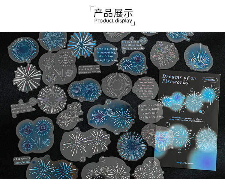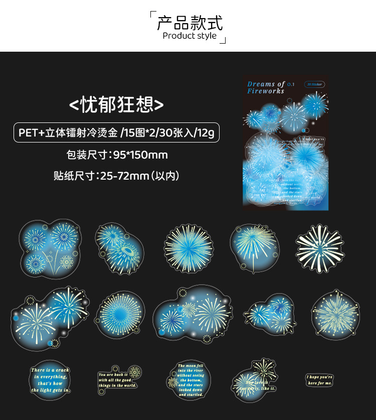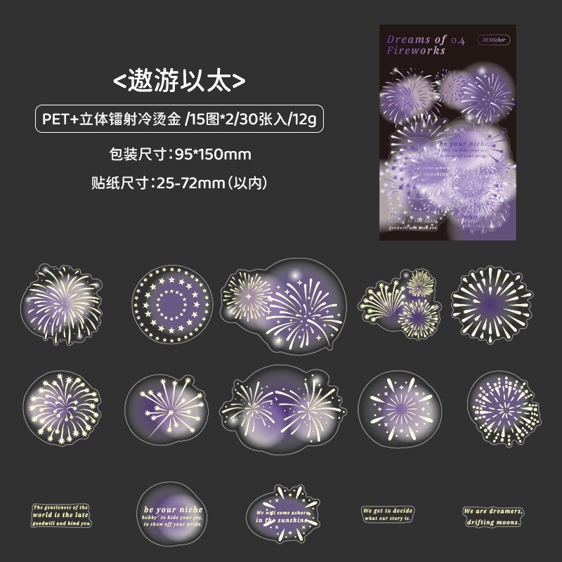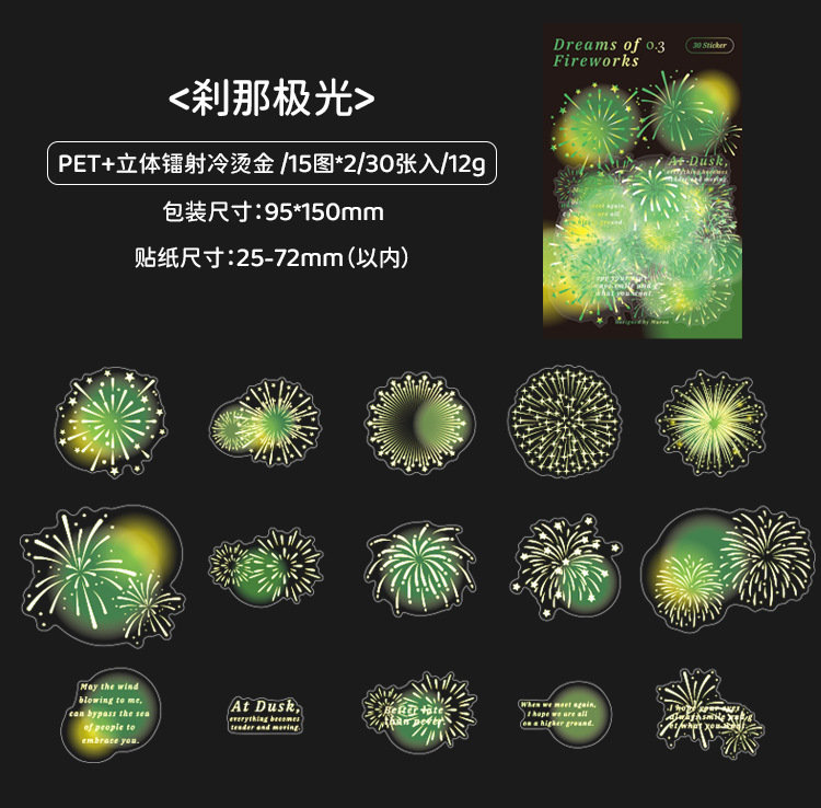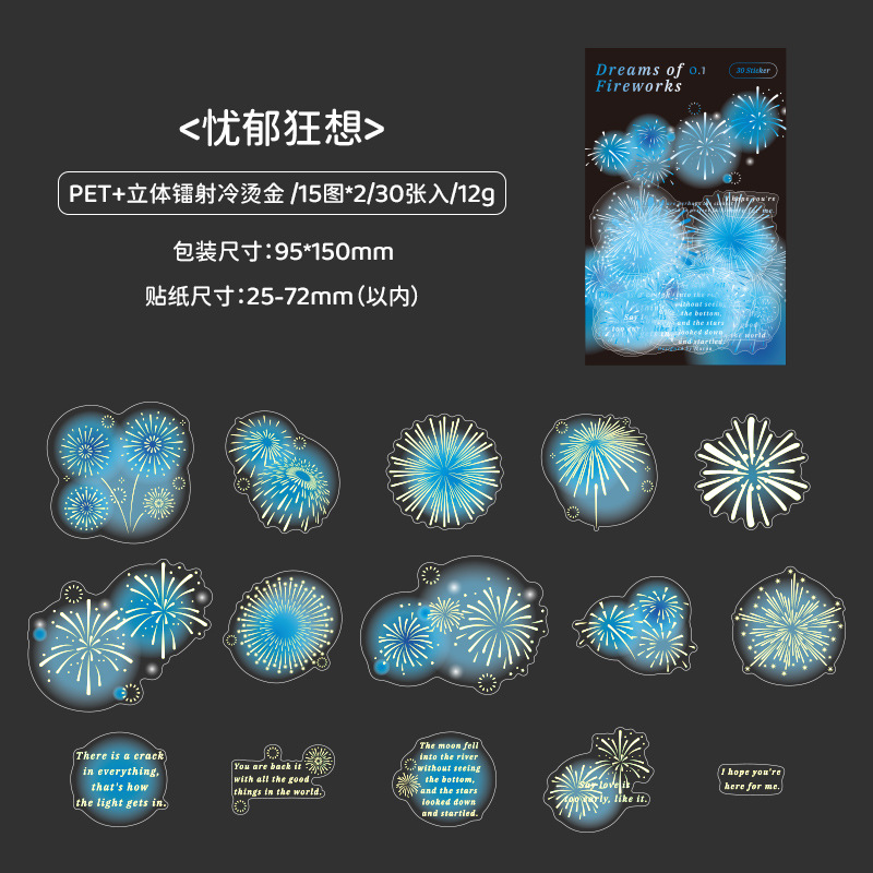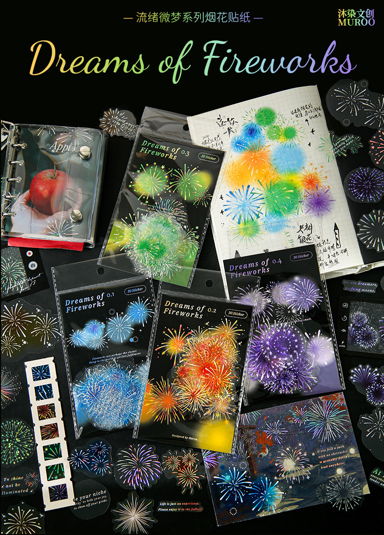 Mu 염료 스티커 패키지 흐름 무시 마이크로 꿈 손 계정 소재 장식 PET 스티커 로맨틱 불꽃 스테레오 브론징 스티커스토어 가기