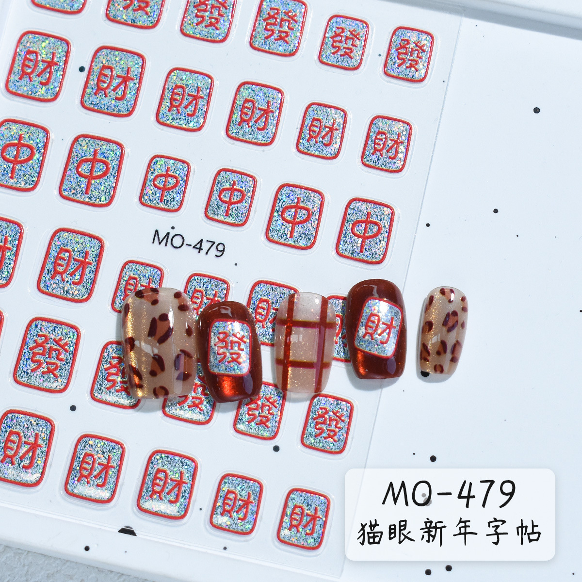 Gong Xi Fa Cai 네일 아트 스티커 2025 새해 빨간 좋은 단어 중국 스타일 새로운 공예 플래시 실버 네일 스티커스토어 가기