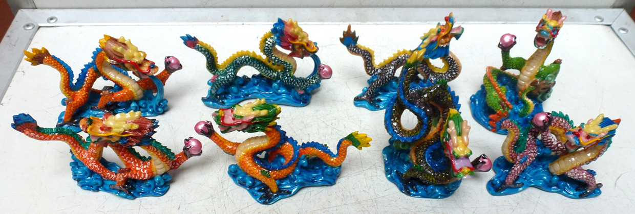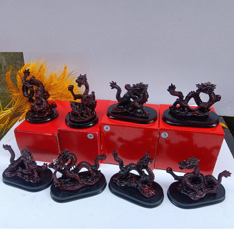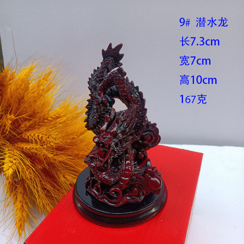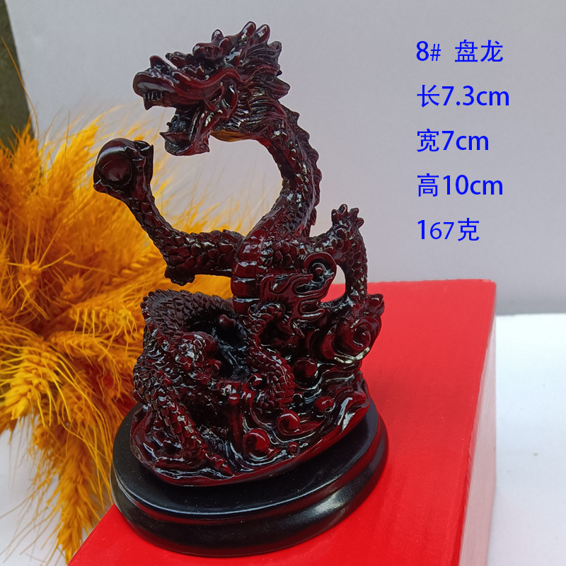 8 개의 붉은 모조 마호가니 용 용 용 물 드래곤 홈 거실 입구 데스크톱으로 구성된 8 개의 용 세트스토어 가기