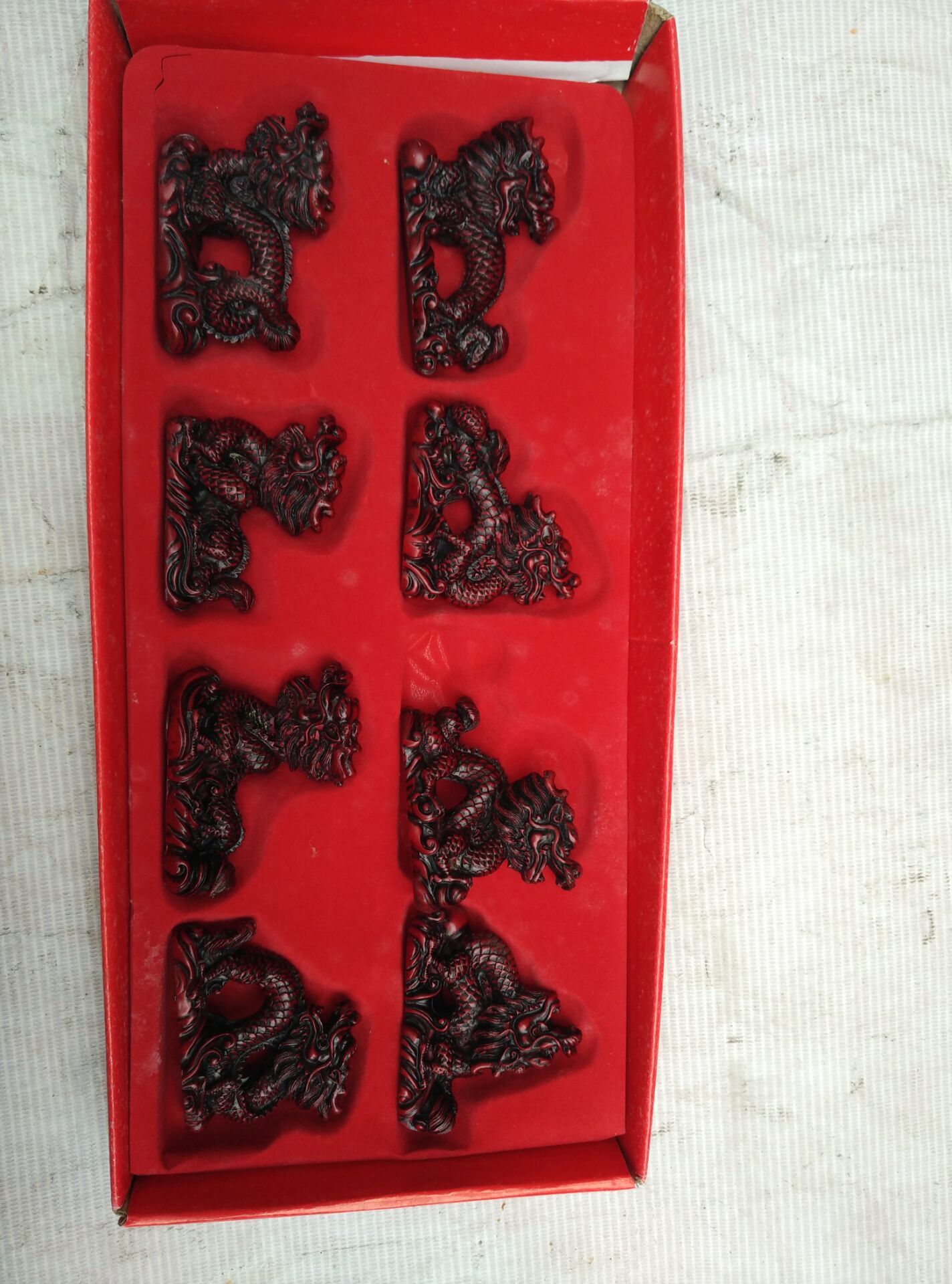 8 개의 붉은 모조 마호가니 용 용 용 물 드래곤 홈 거실 입구 데스크톱으로 구성된 8 개의 용 세트