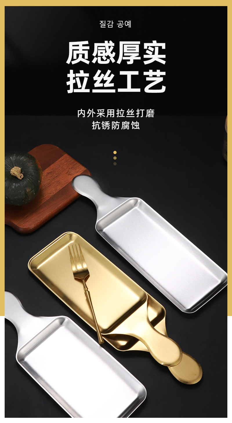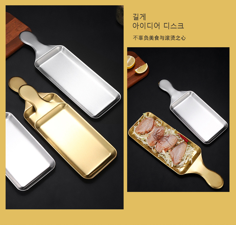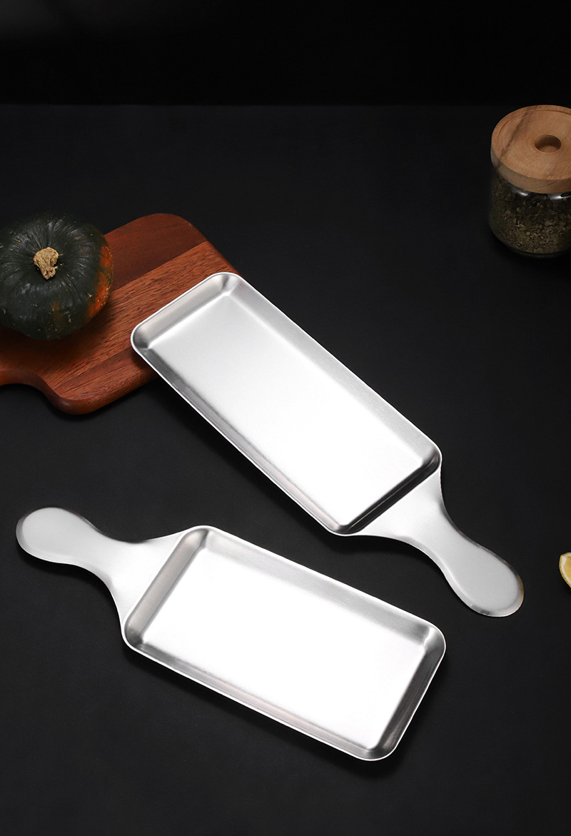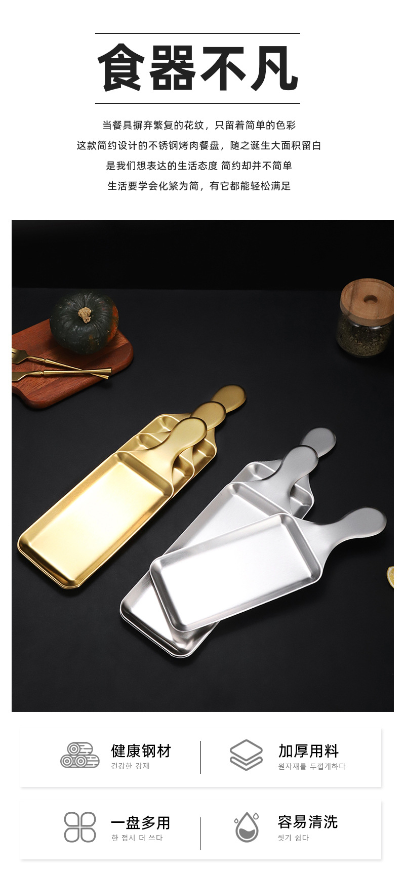 서양식 스테이크 접시, 직사각형 평평한 바닥, 손잡이가 있는 스테인리스 바베큐 접시, 스낵/바베큐 트레이, 럭셔리 스타일스토어 가기