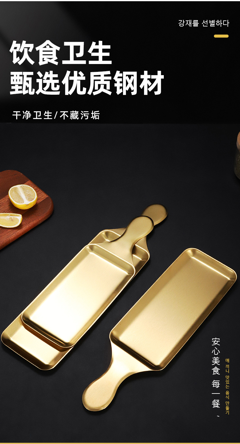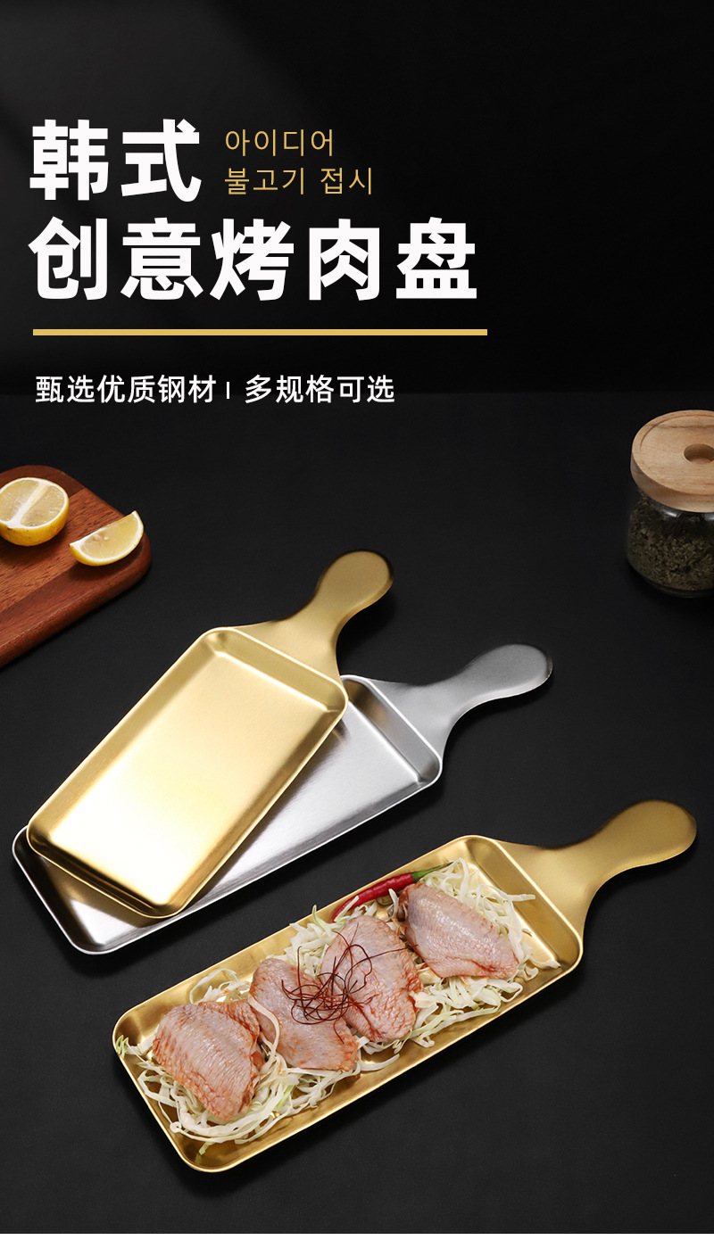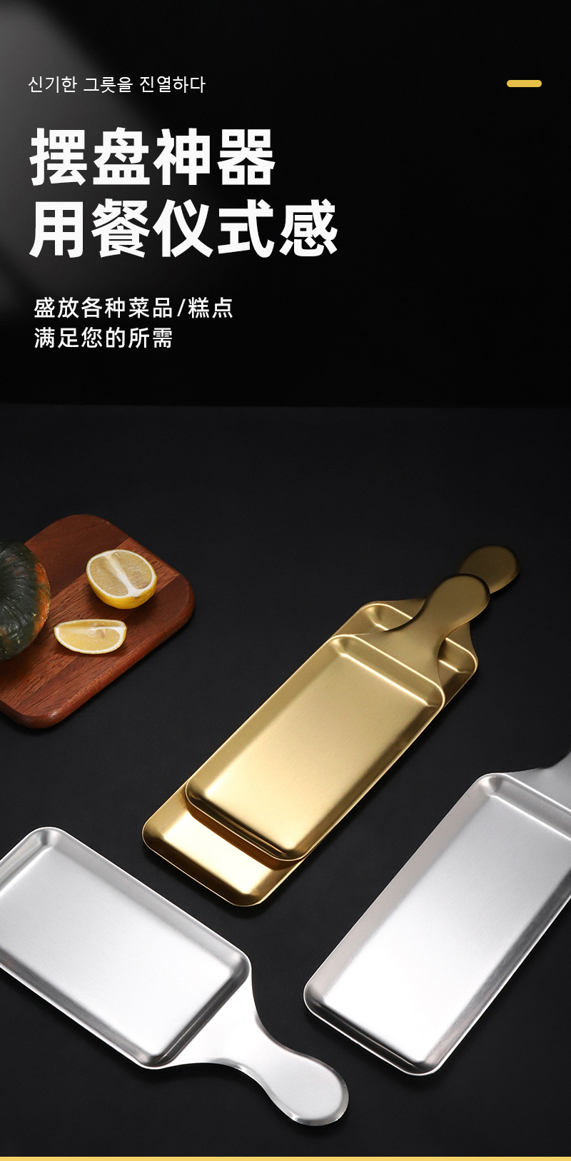 서양식 스테이크 접시, 직사각형 평평한 바닥, 손잡이가 있는 스테인리스 바베큐 접시, 스낵/바베큐 트레이, 럭셔리 스타일스토어 가기