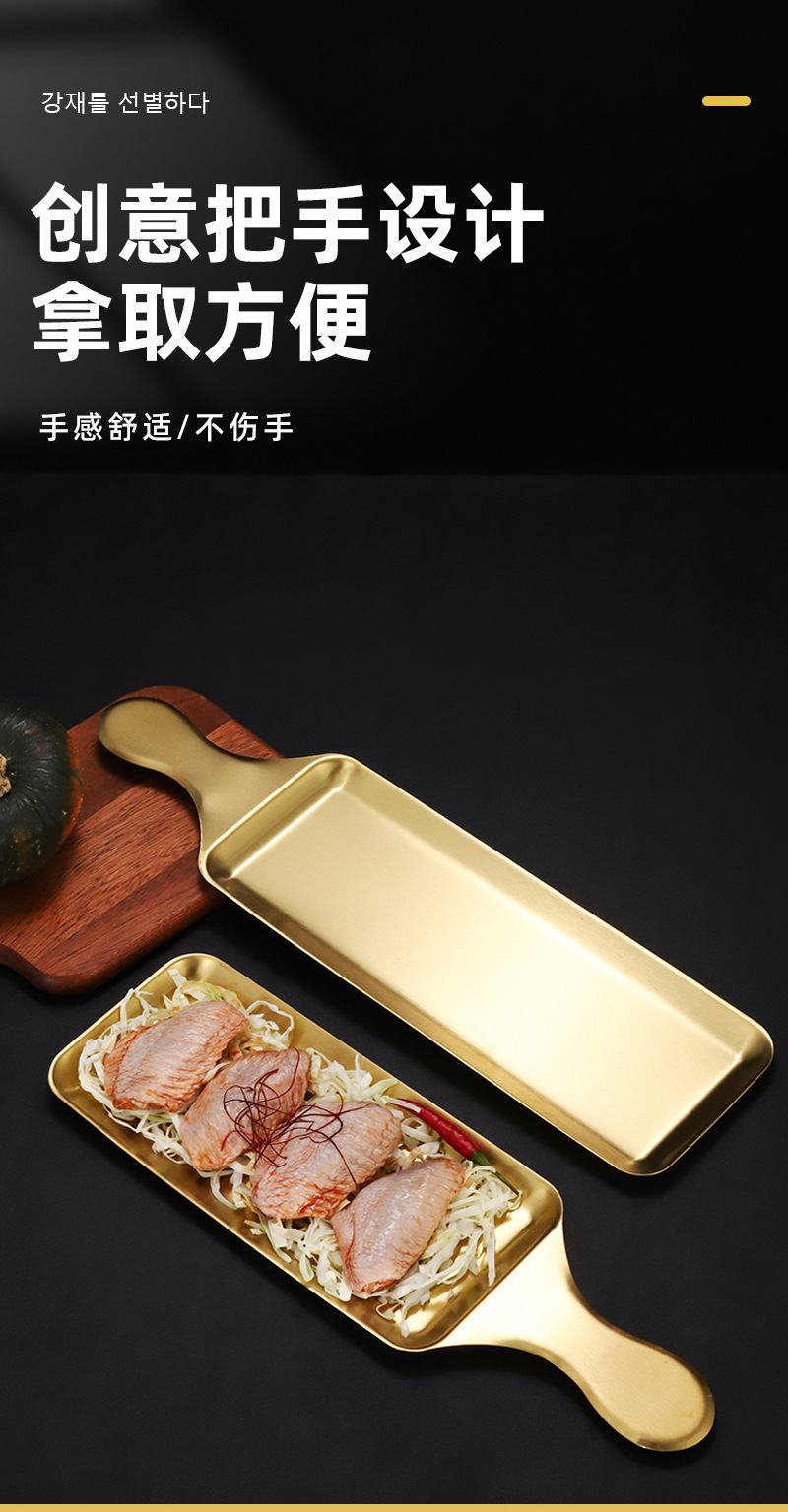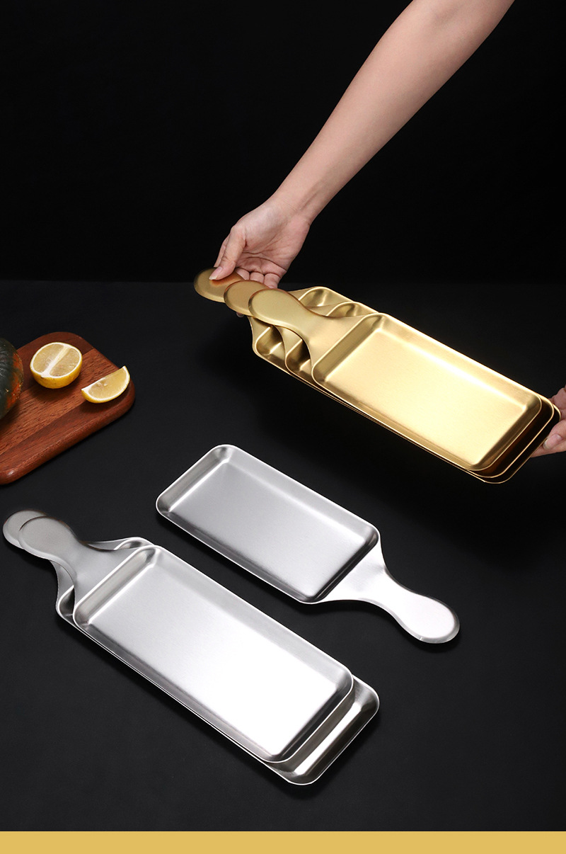 서양식 스테이크 접시, 직사각형 평평한 바닥, 손잡이가 있는 스테인리스 바베큐 접시, 스낵/바베큐 트레이, 럭셔리 스타일