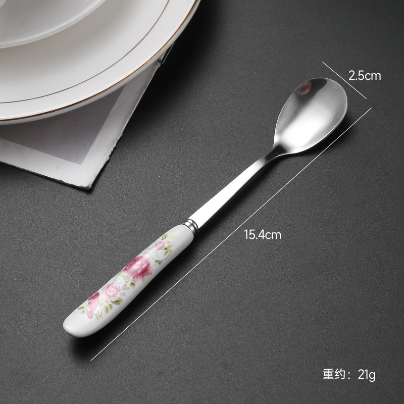 스테인레스 스틸 스푼, 맞춤형 가정용 식사용 스푼, 수프 스푼, 긴 손잡이 믹싱 스푼, 세라믹 패턴, 고급스러운 식기스토어 가기