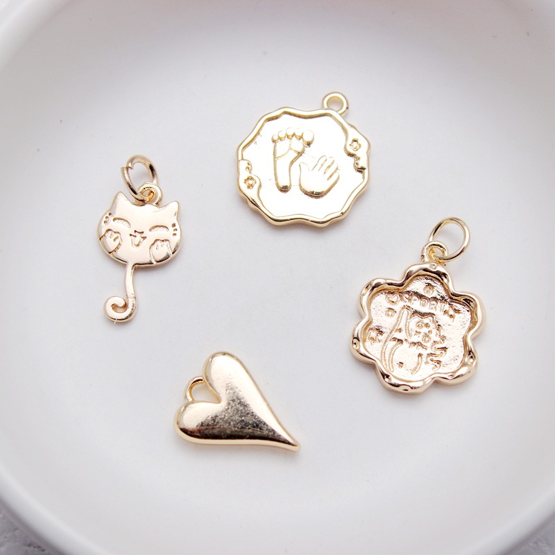14K 가방 골드 보호 컬러 고양이 긴 꼬리/일반 복숭아 심장/손과 발 펜던트 목걸이 팔찌 DIY 액세서리 펜던트스토어 가기