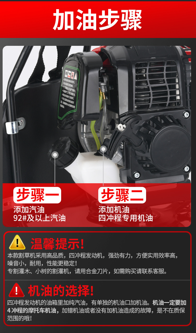 • 4행정 배낭 + 잔디깎이 + 선물 가방이 포함된 상단