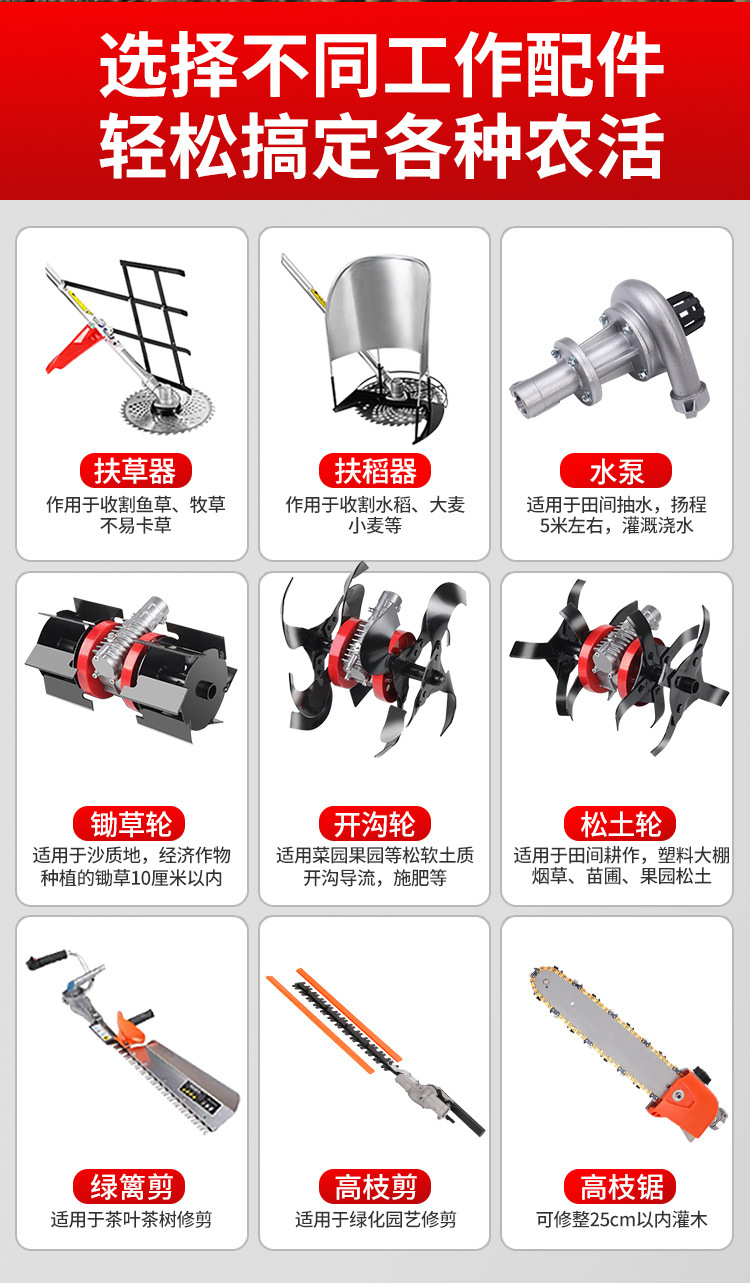 • 4행정 측면 걸이 + 잡초 및 쌀 지지대 + 선물 가방이 장착된 상단