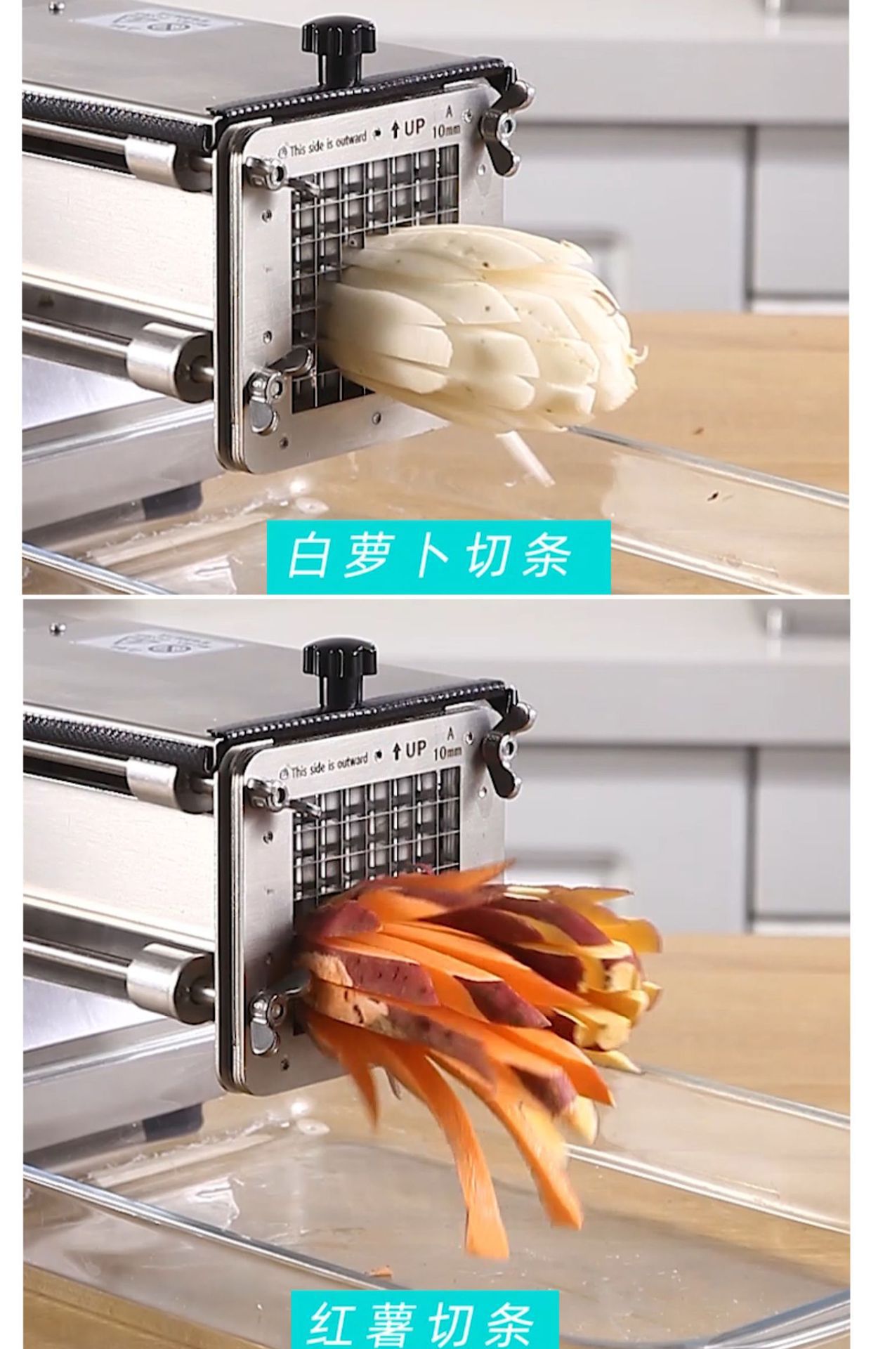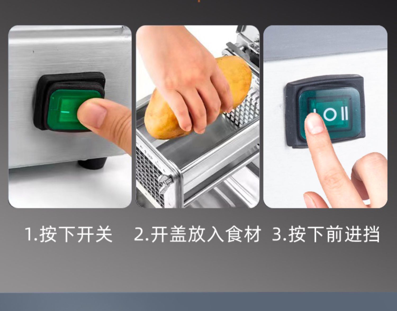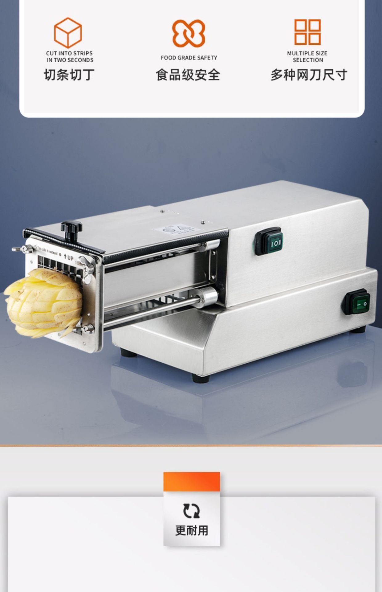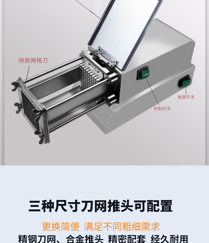 전기 감자 절단 기계 상업 자동 감자 칩 기계 오이 무 상추 고구마 절단 스트립 밀어 기계 유물스토어 가기