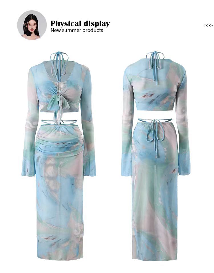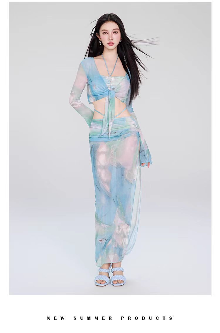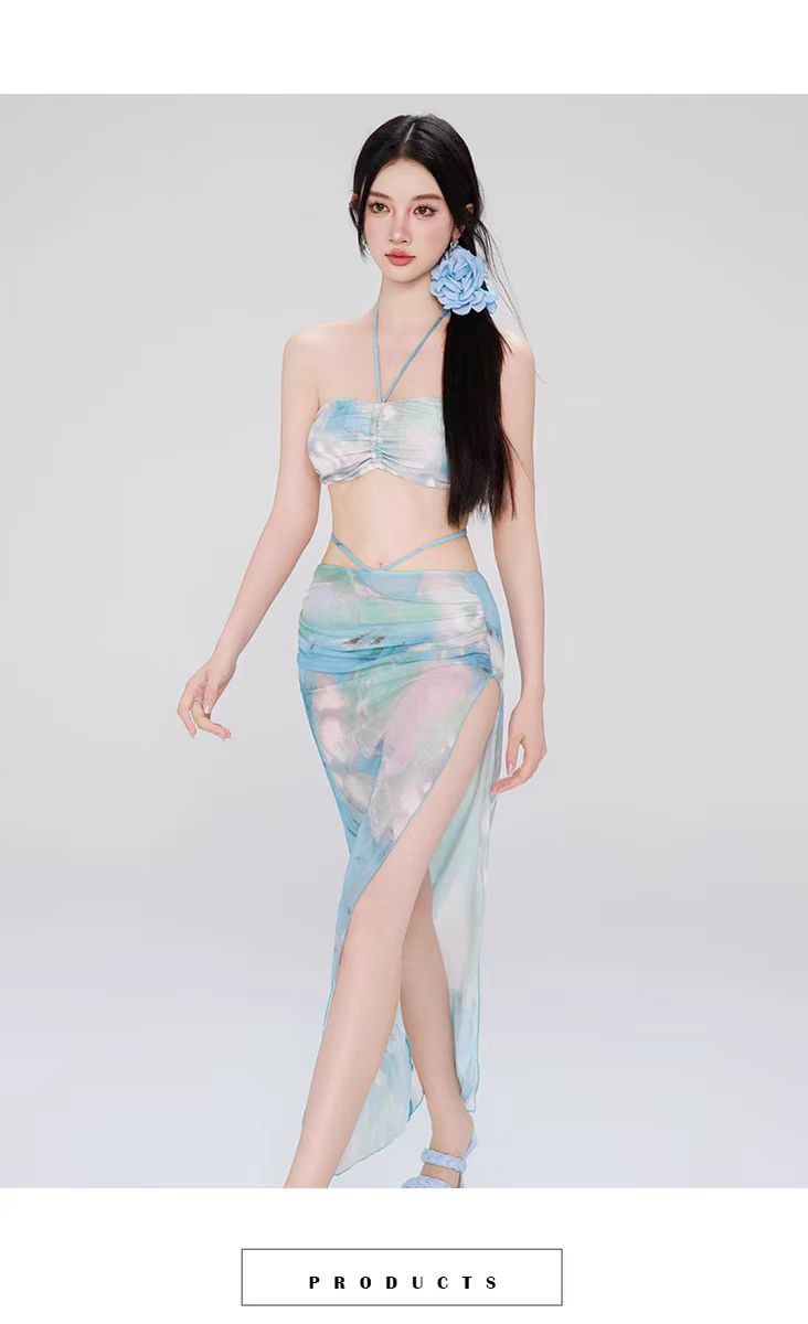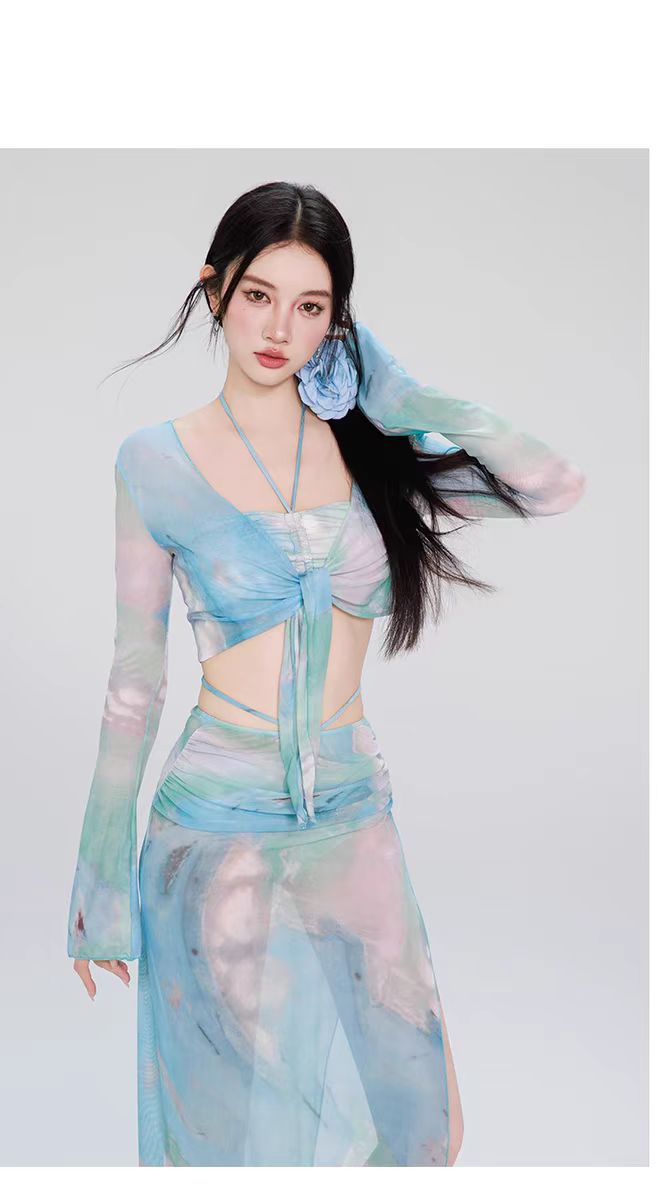 수영복 여성 스플릿 비키니 4 피스 긴 소매 긴 원피스 선 스크린 새로운 유럽과 미국 수영복 홀리데이 스파