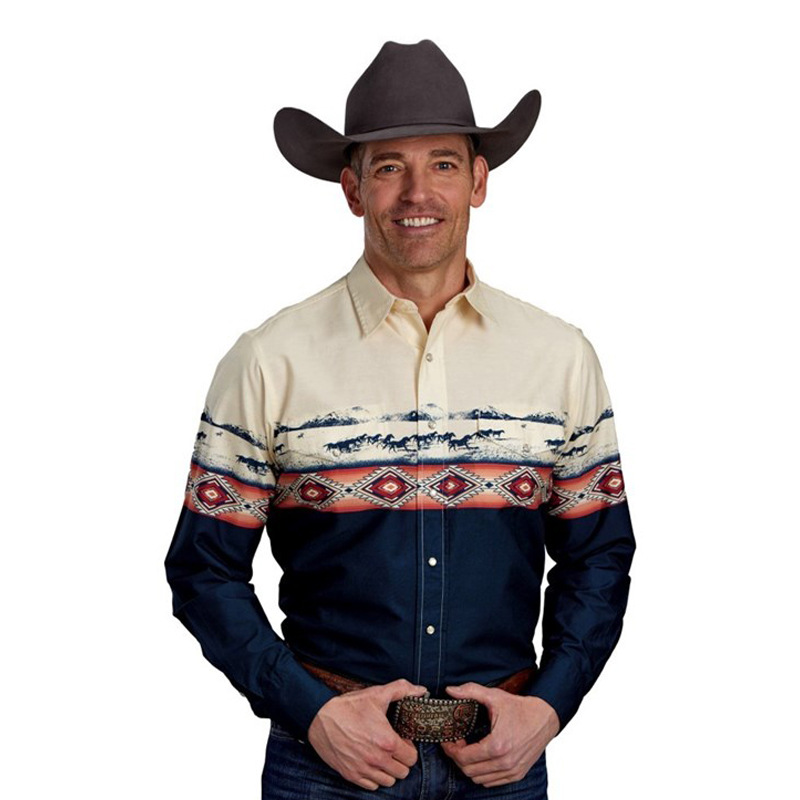 국경 간 서부 데님 트렌디 한 레트로 청소년 남성 펑크 디지털 인쇄 더블 워치 백 남성 셔츠스토어 가기