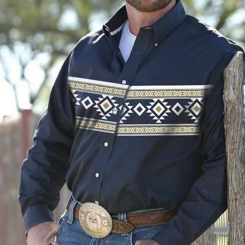 국경 간 서부 데님 트렌디 한 레트로 청소년 남성 펑크 디지털 인쇄 더블 워치 백 남성 셔츠