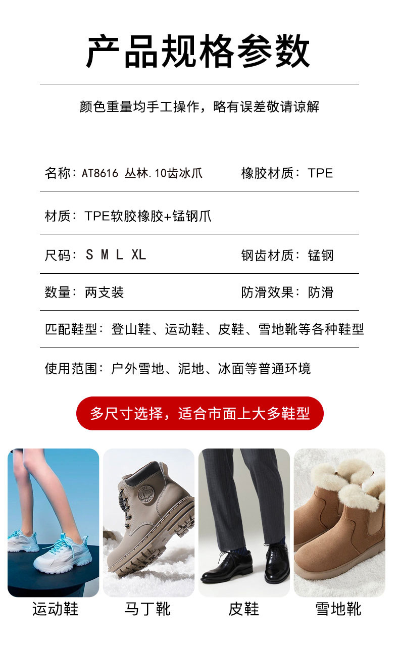 아이스 클로 미끄럼 방지 신발 커버 야외 얼음과 눈 도로 겨울 가을 유물 암벽 등반 신발 전문 등반 눈 발톱